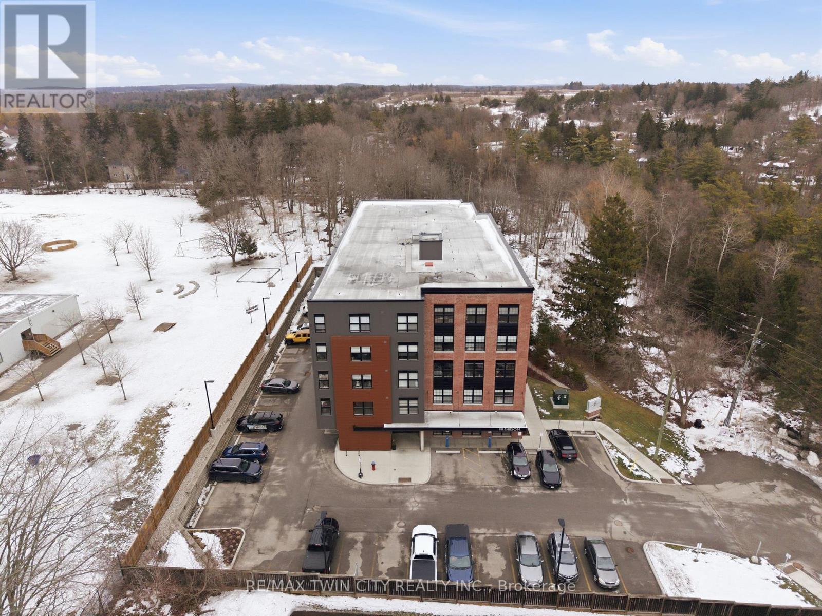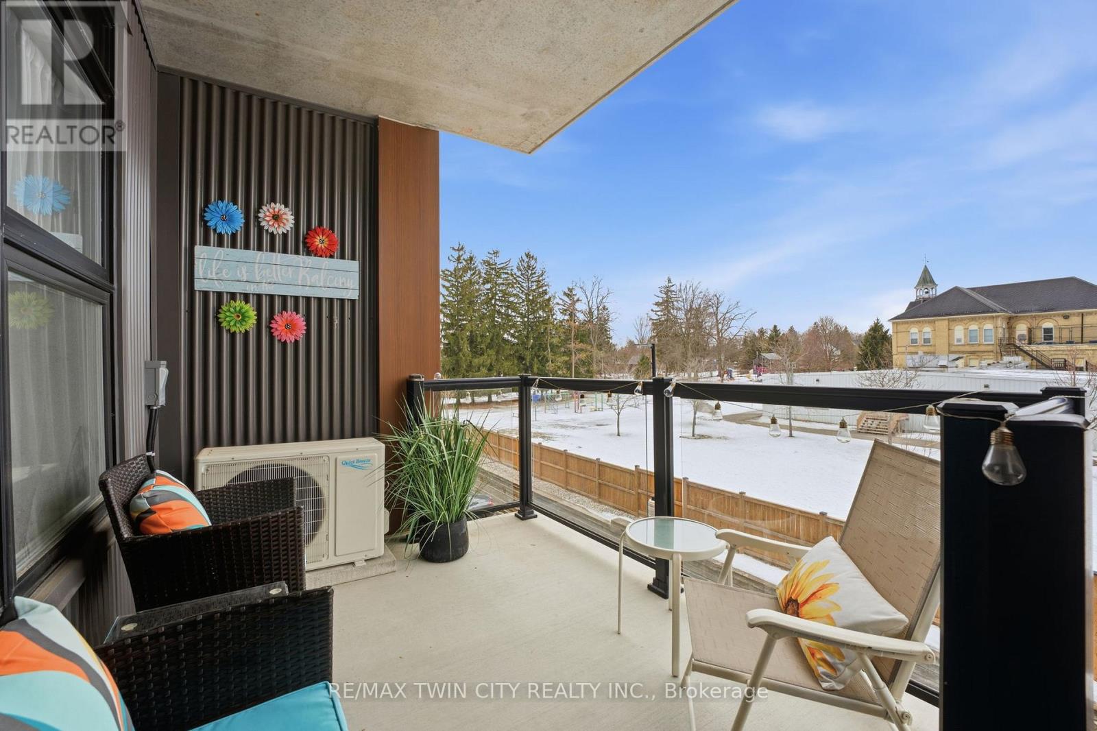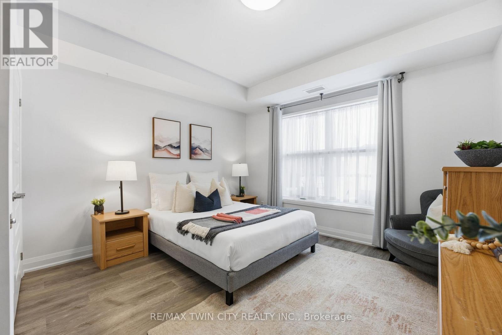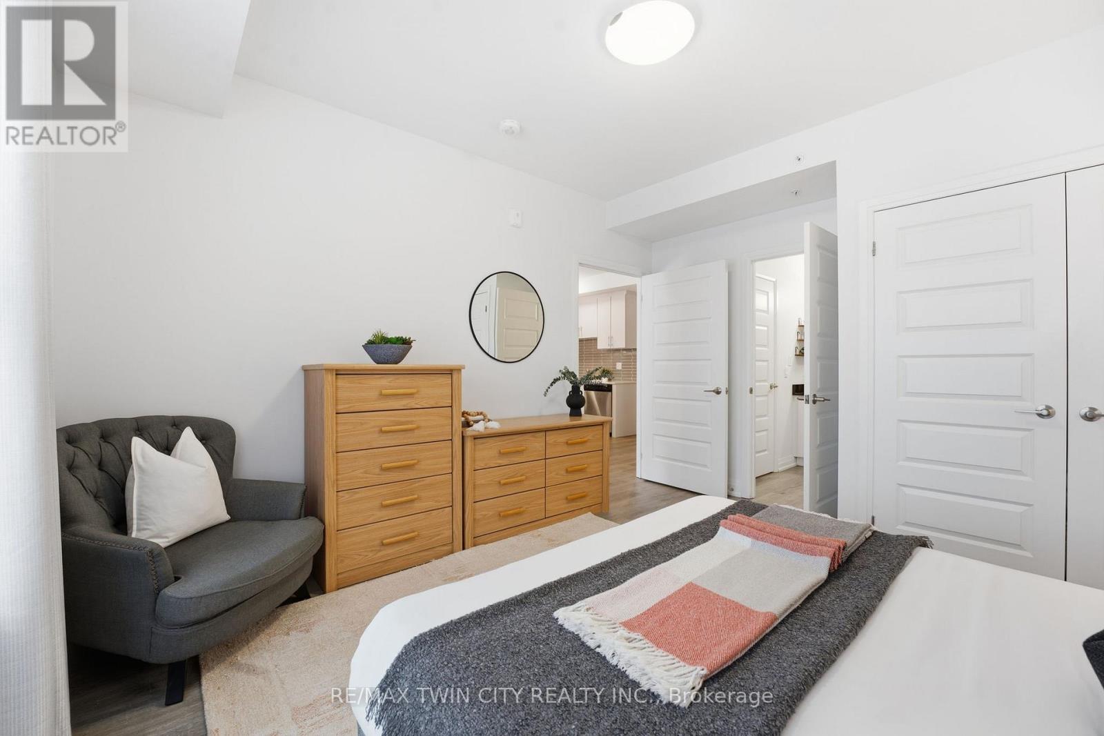 Welcome to condo living in Ayr at Piper's Grove! This modern mid-rise community offers an ideal opportunity for first-time buyers, downsizers, or savvy investors looking for a low-maintenance lifestyle in a growing, well-connected town. This bright and spacious suite features 1 bedroom plus a versatile den, 1 bathroom, and 885 sq ft of thoughtfully designed living space, along with a private 84 sq ft balcony - perfect for enjoying your morning coffee or unwinding at the end of the day. The open-concept kitchen, dining, and living area is flooded with natural light and showcases contemporary finishes throughout. The kitchen is both stylish and functional, featuring sleek white cabinetry extending to the ceiling, a neutral backsplash, quartz countertops and a striking designer lighting over the dining area. The primary bedroom offers convenient access to the 4-piece bathroom, creating a comfortable and efficient layout. Additional highlights include luxury vinyl plank flooring throughout and in-suite laundry for everyday convenience. Residents enjoy a secure building entrance with intercom system, as well as a welcoming main-level amenity room complete with a kitchenette and washroom - ideal for gatherings or entertaining. One parking space is included. Located at the end of Gibson Street in downtown Ayr, Piper's Grove is just steps from parks and walking trails and offers easy access to Cambridge, Kitchener, Paris, Brantford, and Woodstock. Combining modern finishes, smart design, and a friendly community atmosphere, this is condo living at its best. (id:51300)