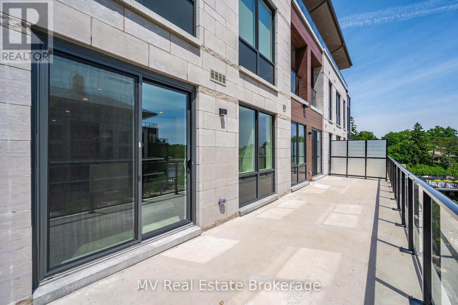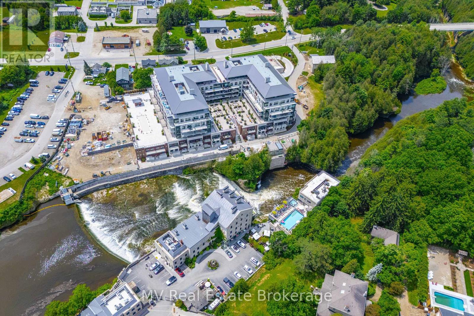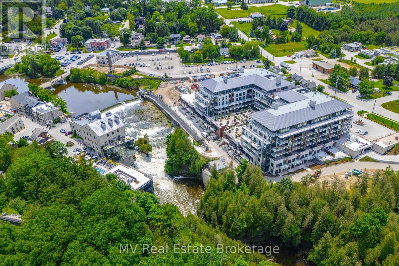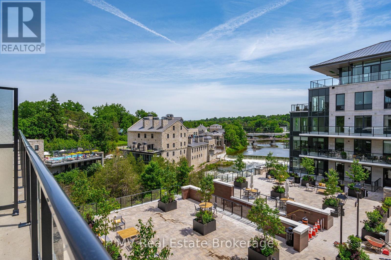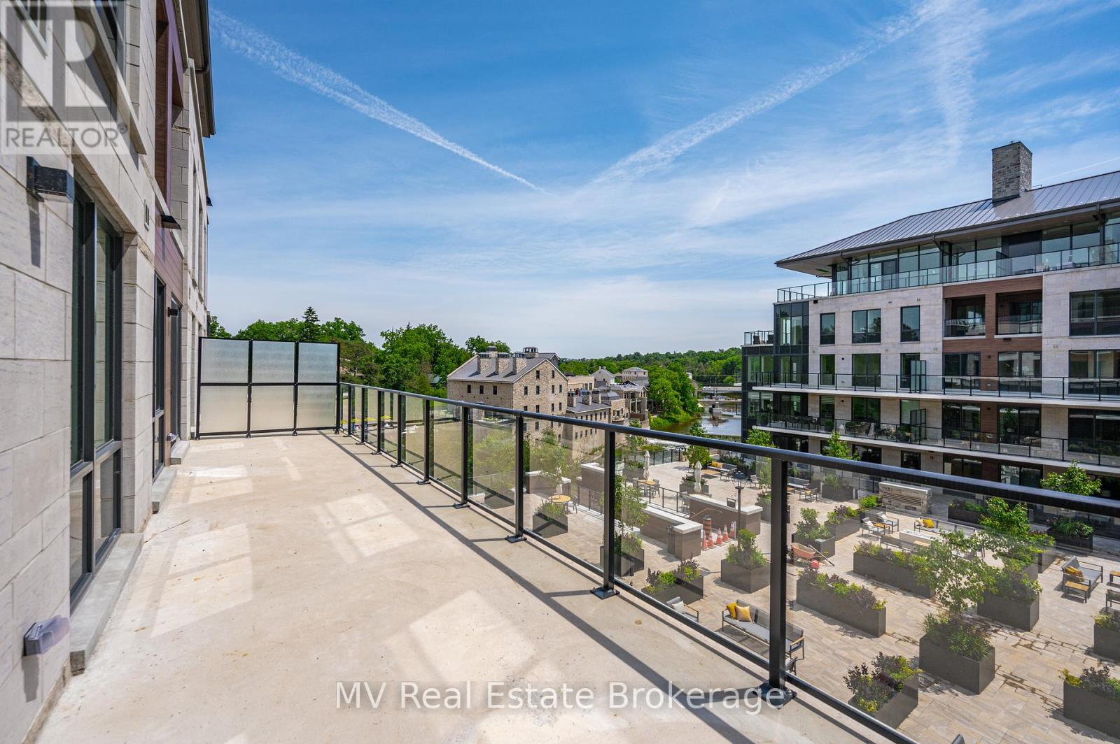 If you have been waiting for the right unit to come along in the Elora Mill Residences, look no further! This 2 bedroom, 2 bathroom unit with a massive terrace overlooking the town of Elora and the stunning Grand River is now available. This unit offers high end finishes from top to bottom, year-round indoor parking and your own private storage locker on the 3rd floor just down the hall from your luxury suite. No doubt the massive quartz waterfall kitchen island, hardwood floors and built-in appliances will impress but just wait until you step foot on the balcony which boasts one of the premiere views in the entire building. At close to 400 square feet and blue-sky views of the historic Elora Mill and Grand River, this outdoor space is an entertainer's dream. Other building amenities include multiple luxurious common areas indoor and outdoor, a small cafe bistro in the main lobby, workout facilities and private outdoor pool. As if that wasn't enough, the convenient access to the Elora Mill Inn and the many shops and restaurants of beautiful downtown Elora is incredible. A quick stroll down the portage trailway that runs through the property, and you will find yourself on the walking bridge which lands you right into the downtown core of Elora. Come see this unit today and make this hallmark movie lifestyle your reality! (id:51300)