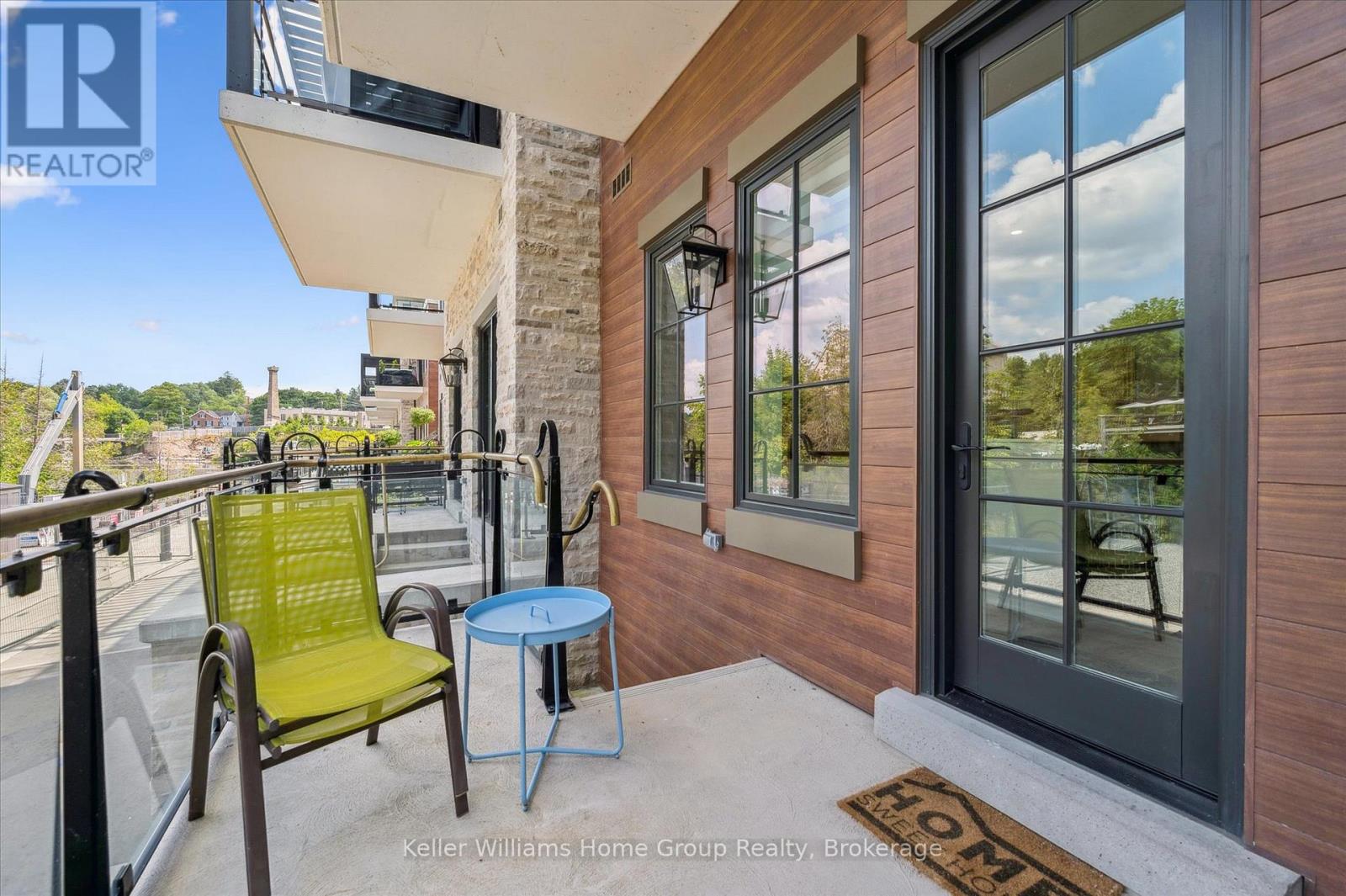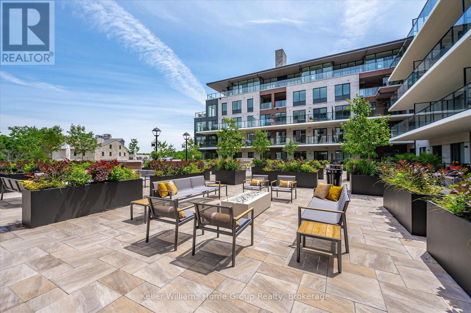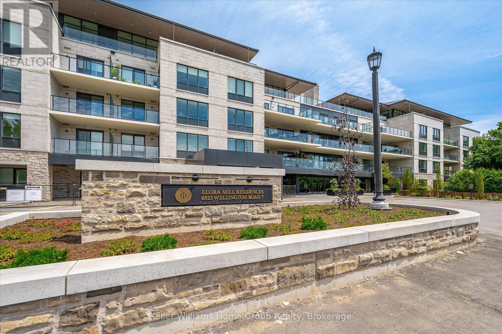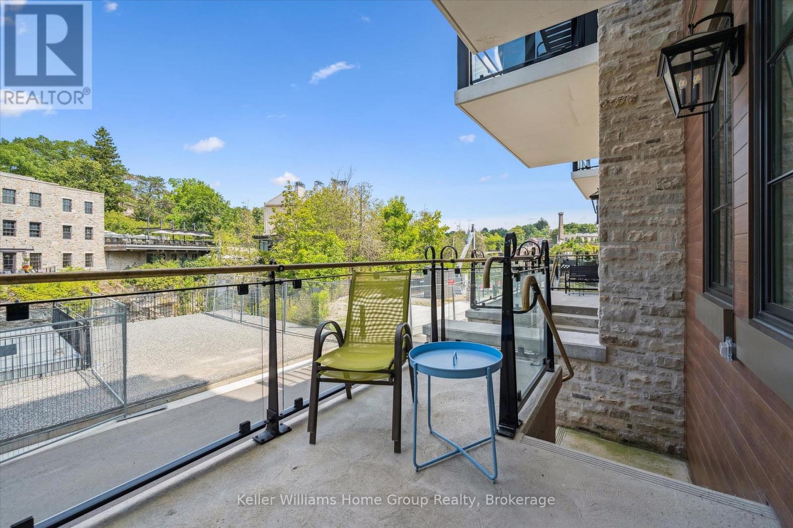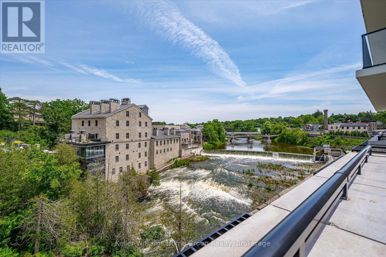 Experience refined executive living at the iconic Elora Mill Residences. This beautifully appointed Penstock Suite offers 721 sq ft of sophisticated interior space complemented by a 98 sq ft private terrace with unobstructed riverfront views. Perfectly positioned along the riverwalk and just steps from Elora's acclaimed boutiques, dining, and pubs, this residence delivers an unparalleled blend of tranquility and village charm. The open-concept design showcases a sleek, contemporary kitchen flowing into a sun-filled living and sleeping area, all framed by stunning water views. Fully furnished and available immediately, this is an ideal weekend retreat, home base for traveler or urban professionals seeking a small town escape. Residents enjoy premium amenities including underground parking, elegant common spaces, a state-of-the-art fitness and yoga studio, and a resort-style outdoor pool. With exceptional finishes, breathtaking surroundings, and effortless luxury, Elora Mill Residences sets the standard for upscale living. (id:51300)