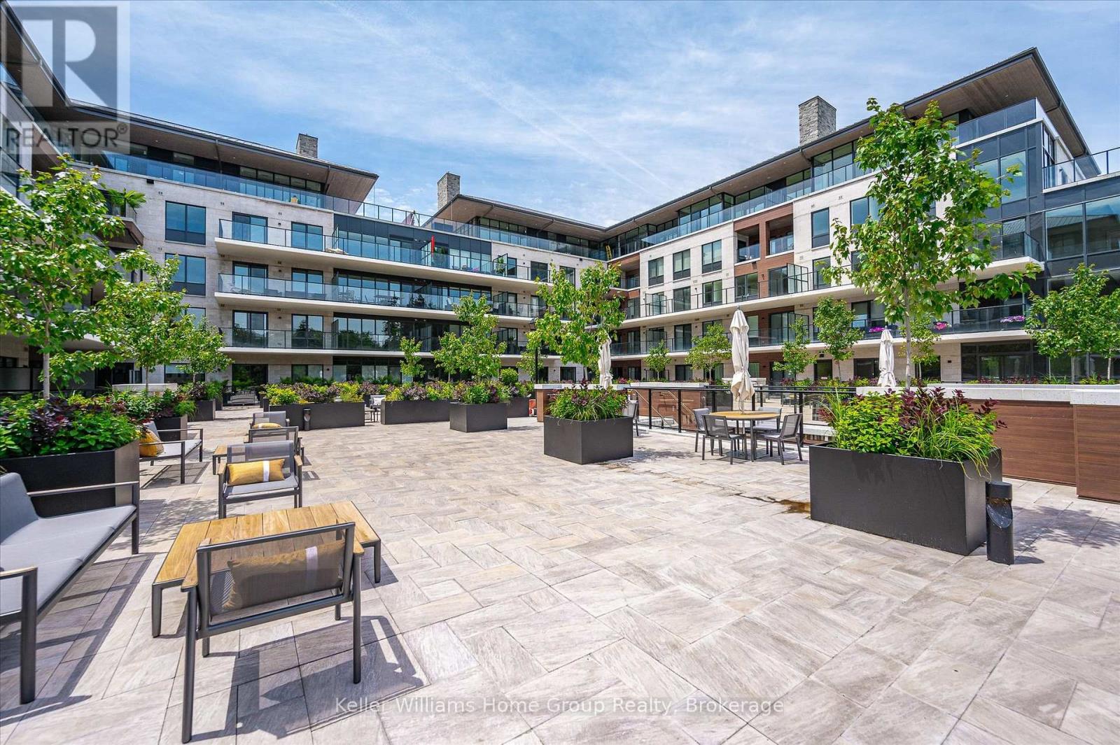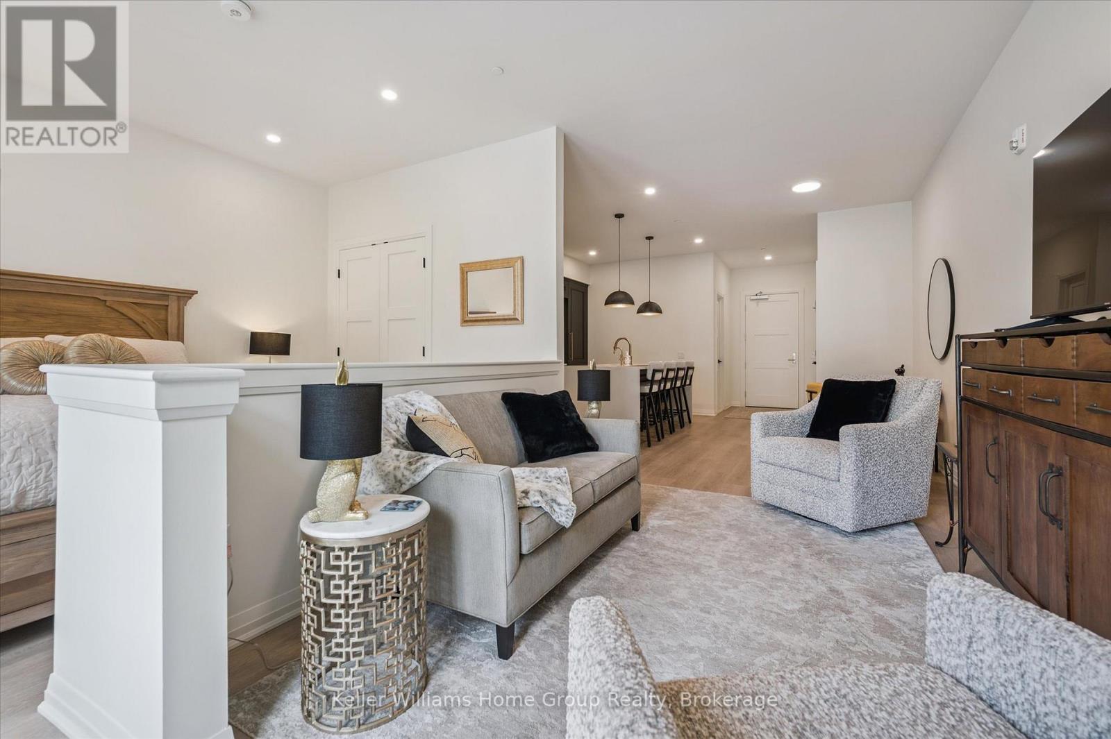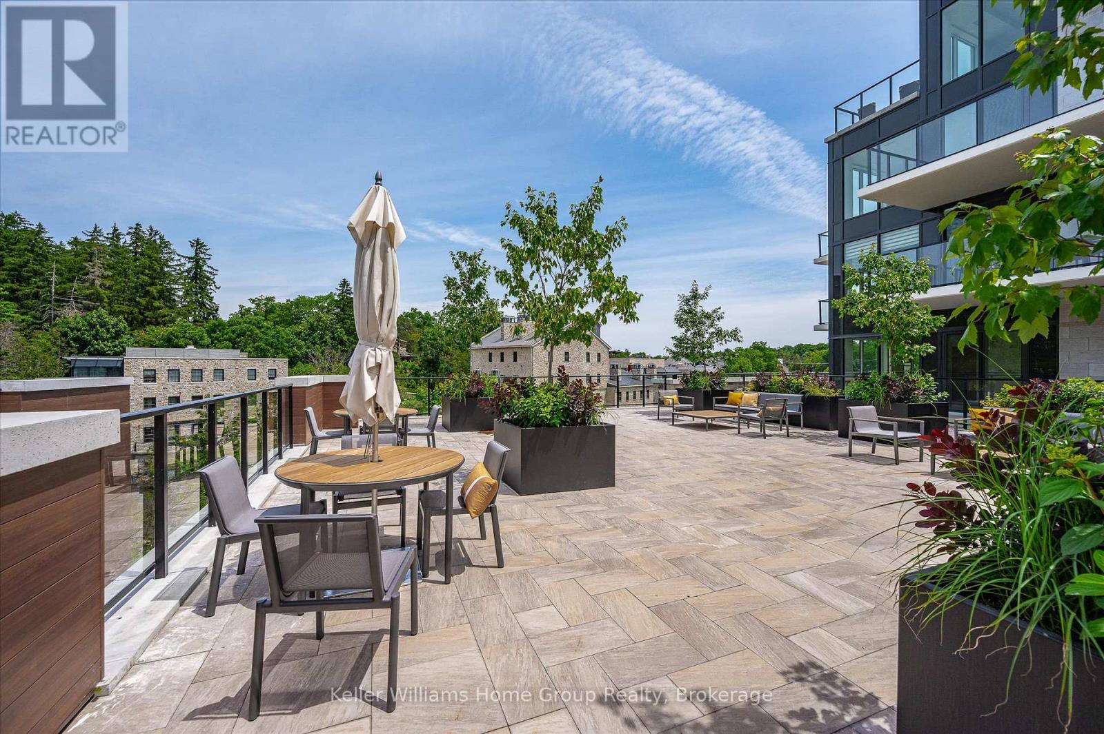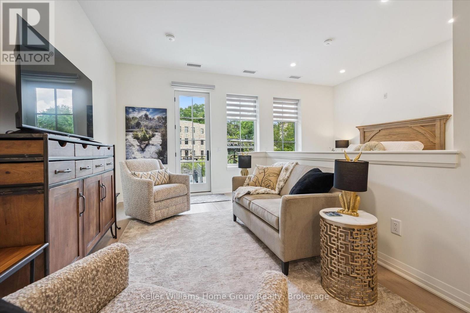 Experience refined executive living at the iconic Elora Mill Residences. This beautifully appointed Penstock Suite offers 721 sq ft of sophisticated interior space complemented by a 98 sq ft private terrace with unobstructed riverfront views. Perfectly positioned along the riverwalk and just steps from Elora's acclaimed boutiques, dining, and pubs, this residence delivers an unparalleled blend of tranquility and village charm. The open-concept design showcases a sleek, contemporary kitchen flowing into a sun-filled living and sleeping area, all framed by stunning water views. Fully furnished and available immediately, this is an ideal weekend retreat, home base for traveler or urban professionals seeking a small town escape. Residents enjoy premium amenities including underground parking, elegant common spaces, a state-of-the-art fitness and yoga studio, and a resort-style outdoor pool. With exceptional finishes, breathtaking surroundings, and effortless luxury, Elora Mill Residences sets the standard for upscale living. (id:51300)