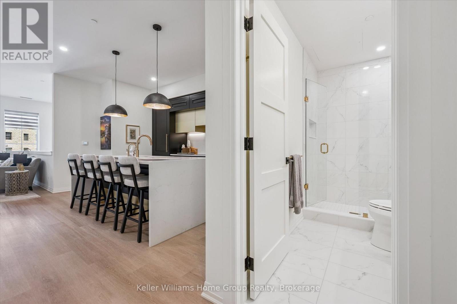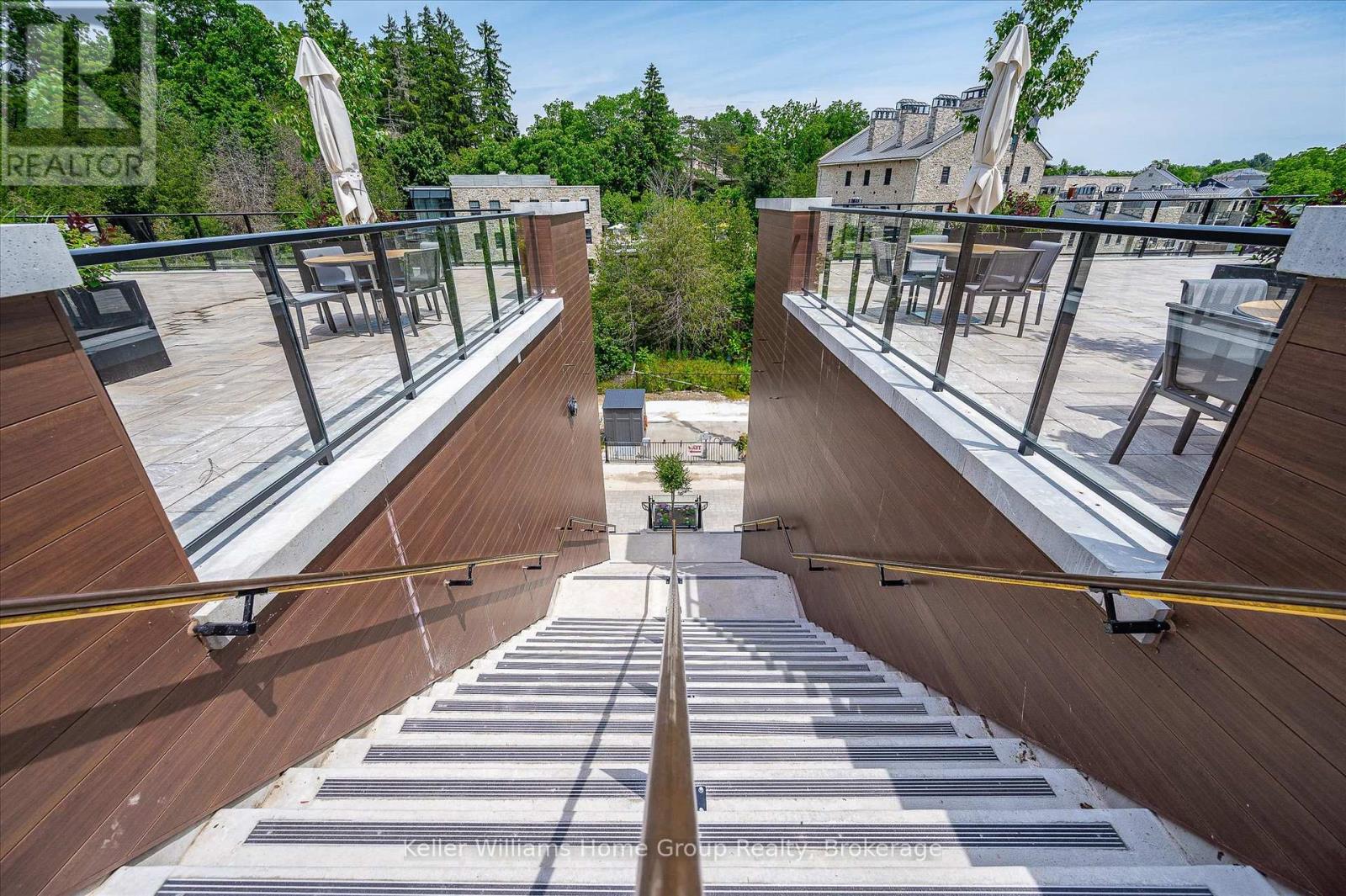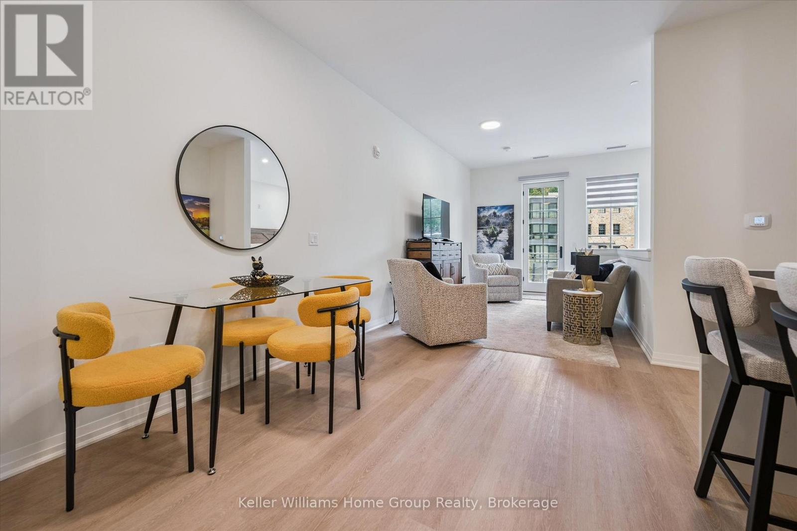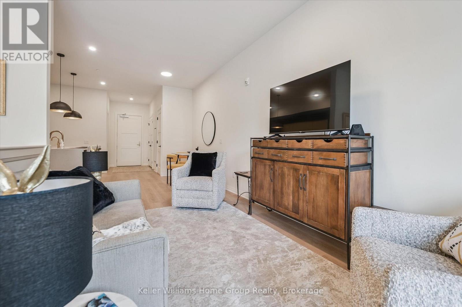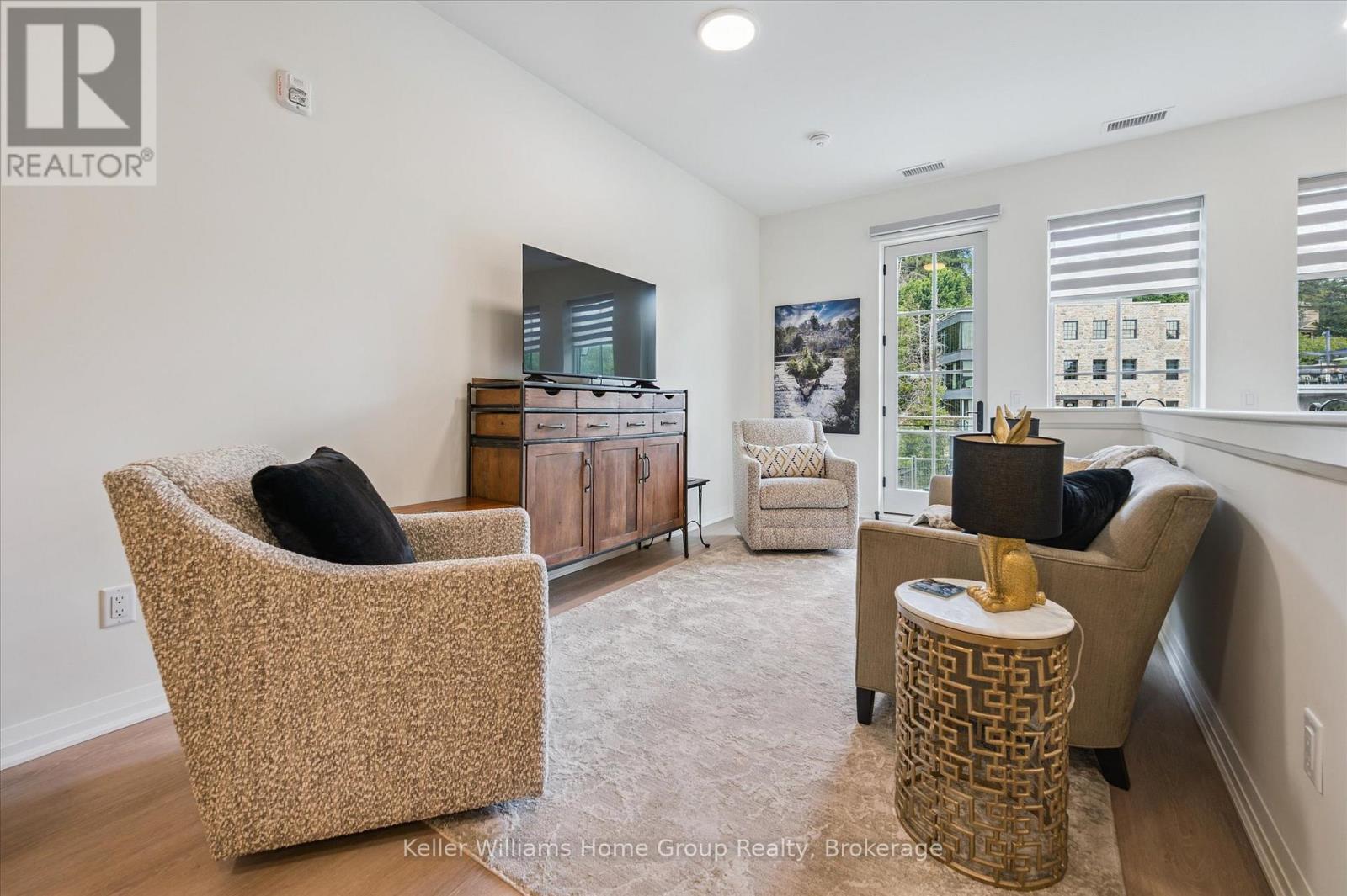 Experience refined executive living at the iconic Elora Mill Residences. This beautifully appointed Penstock Suite offers 721 sq ft of sophisticated interior space complemented by a 98 sq ft private terrace with unobstructed riverfront views. Perfectly positioned along the riverwalk and just steps from Elora's acclaimed boutiques, dining, and pubs, this residence delivers an unparalleled blend of tranquility and village charm. The open-concept design showcases a sleek, contemporary kitchen flowing into a sun-filled living and sleeping area, all framed by stunning water views. Fully furnished and available immediately, this is an ideal weekend retreat, home base for traveler or urban professionals seeking a small town escape. Residents enjoy premium amenities including underground parking, elegant common spaces, a state-of-the-art fitness and yoga studio, and a resort-style outdoor pool. With exceptional finishes, breathtaking surroundings, and effortless luxury, Elora Mill Residences sets the standard for upscale living. (id:51300)