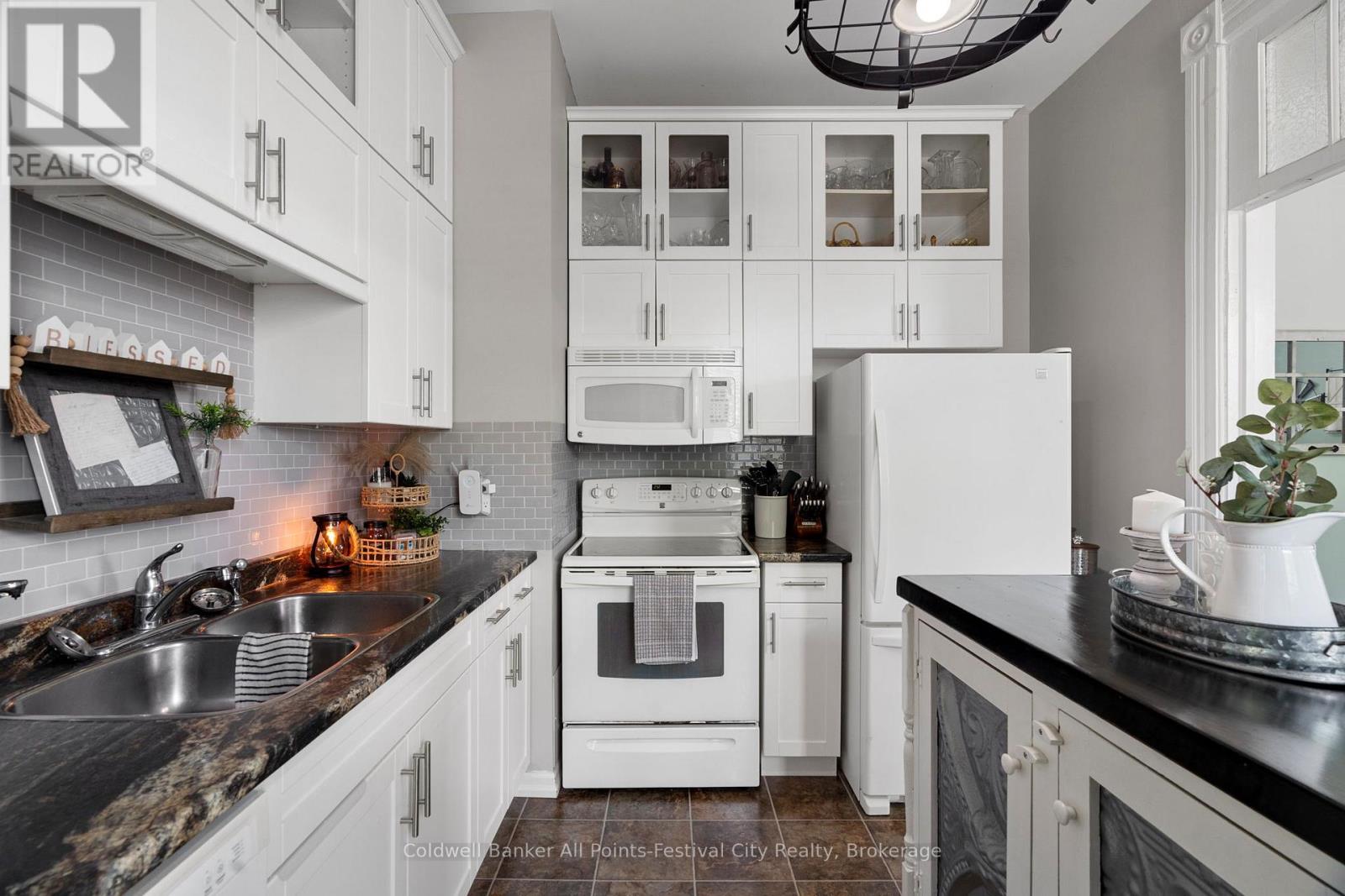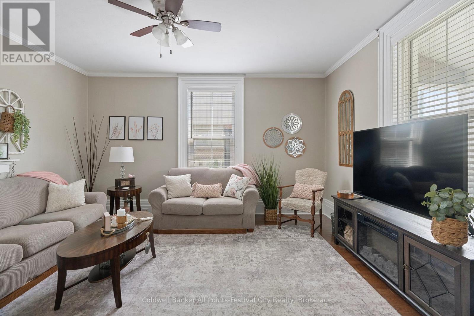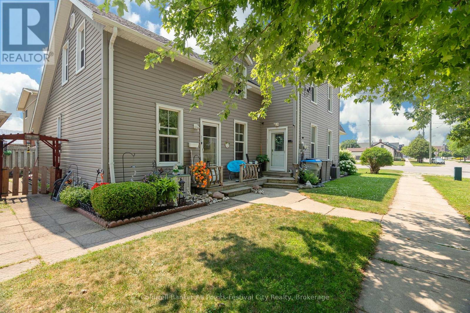 Charming Victorian Duplex with Income Potential Just Steps from Downtown! This beautifully updated Victorian home blends timeless character with modern upgrades, offering exceptional versatility and investment potential. Ideally situated on a desirable corner lot just one block from downtown, this legal duplex features a welcoming front verandah, a 1.5 car detached garage, and a layout perfectly suited for multi-generational living, rental income or portfolio expansion. Each unit has its own private entrance, separate hydro and gas meters, individual furnaces, central air, water heaters, laundry and even separate basements - making for truly independent living spaces. The spacious front unit retains its historic charm with original woodwork and hardwood flooring, complemented by an impressive large front porch. The layout includes a large living room, formal dining room, and vintage-style kitchen with island and pantry and 2 piece bathroom. Upstairs, you'll find three bedrooms, a 4 piece bathroom, and access to a private deck and yard. The bright rear unit (84 St. David St.) features two upper bedrooms, an updated eat-in kitchen, and a sunken living room with a walkout to a private deck. In-suite laundry and a full basement complete this self-contained space. With so many thoughtful updates already done, including replacement windows, this move-in ready property offers peace of mind and incredible value. Whether you're a homeowner looking to offset your mortgage or an investor searching for a turn-key rental in a prime location, this property checks all the boxes. (id:51300)