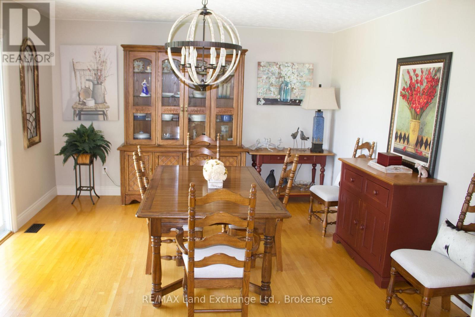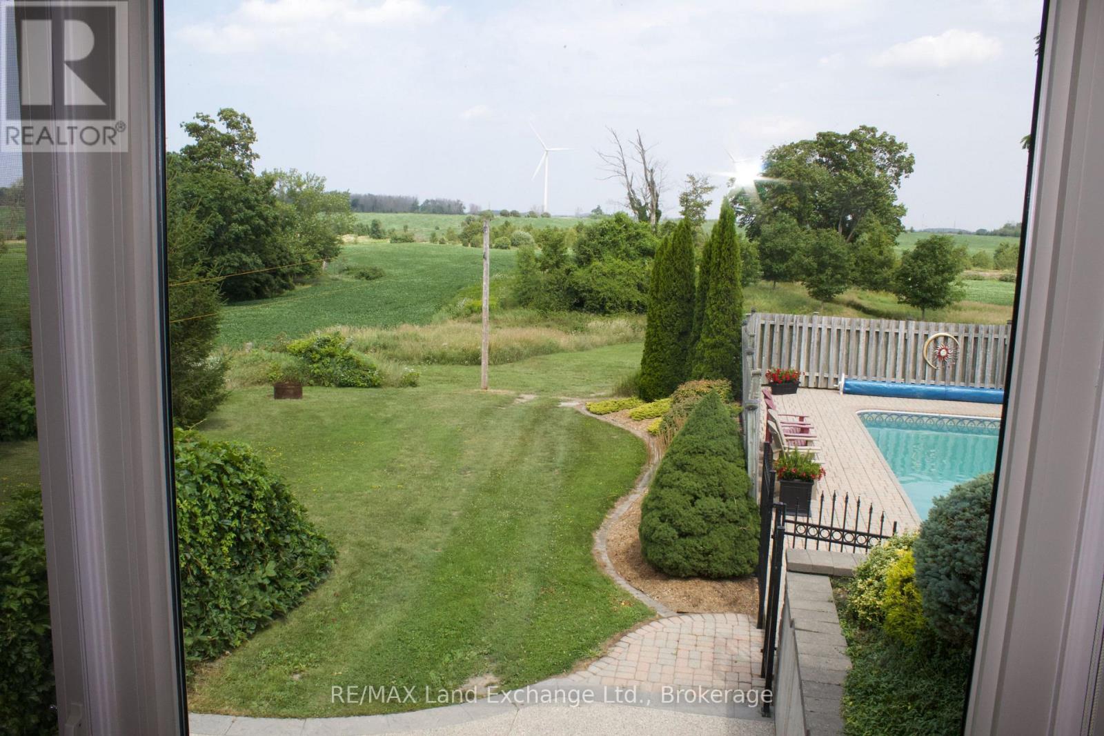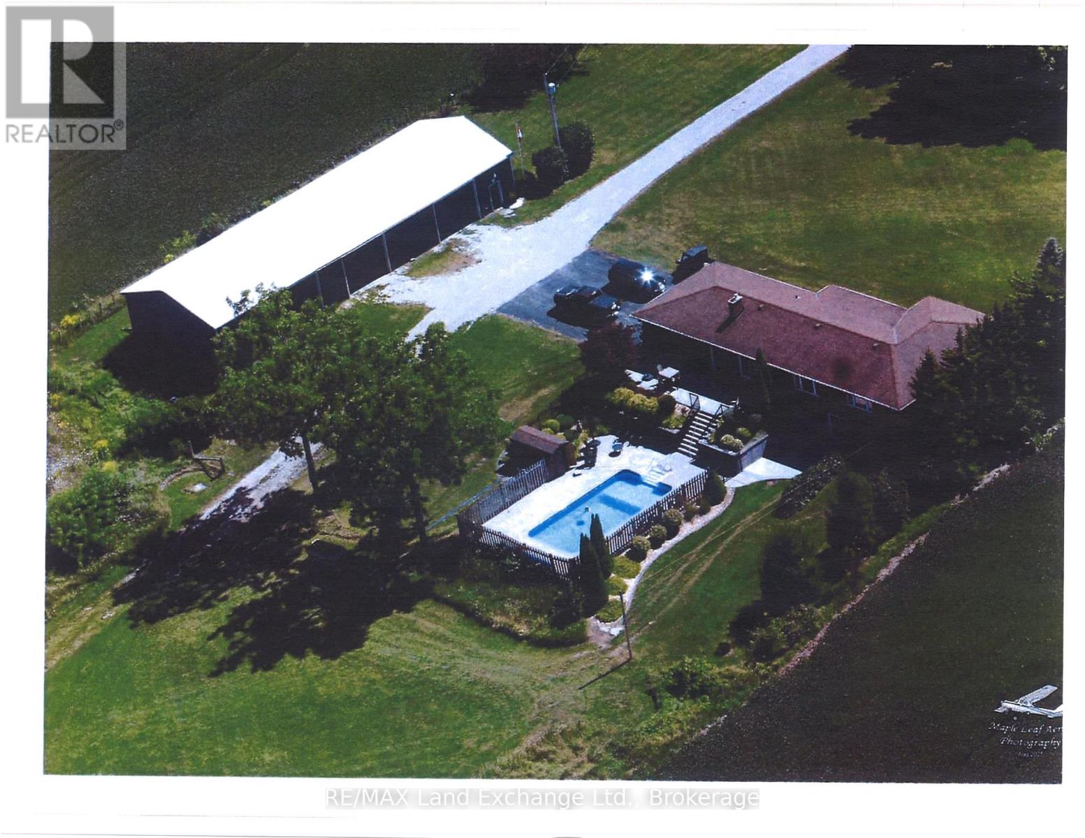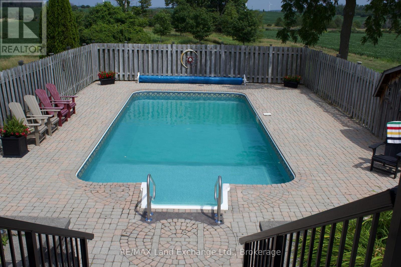Very well-cared-for modern bungalow designed for entertaining and enjoying the outdoors. It is situated on 99 acres and includes a 32' X 96' implement shed. All located between Bruce Power and #21 Highway on Bruce Rd 20, a short drive to either Port Elgin or Kincardine. The home features walkout lower level to 16' X 32' inground pool on gorgeous grounds and with superb views of the Bruce Township countryside. Home has a large eat-in kitchen plus formal dining room, three full baths including ensuite. Finished lower level with huge games and family room; laundry and ample storage space. There is a 4th Bath listed, but it is a one-piece, with sink and vanity, near the rear entry. Kitchen was re-done in 2010, kitchen flooring is engineered wood plank installed in '23. All bathrooms have been refurbished since the home was new. Acreage is gently rolling and rented for the 2026 crop season - about 85 acres workable, silty clay-loam, random drainage. Acreage was in beans in 2025. (id:51300)