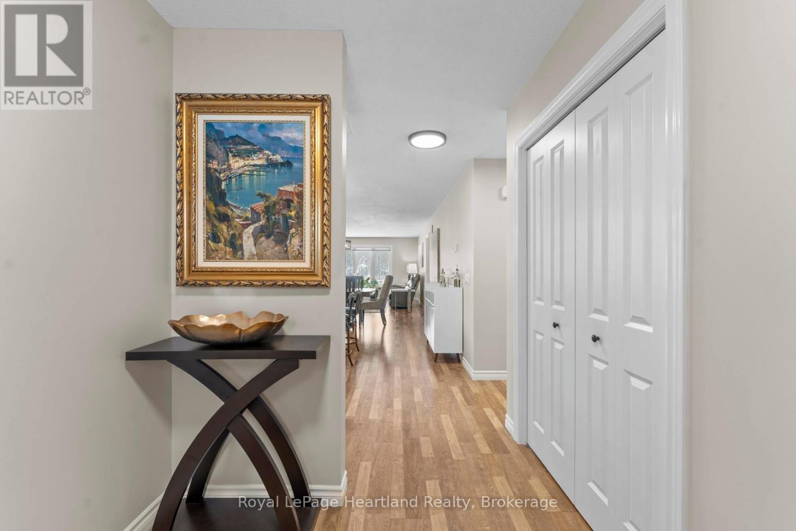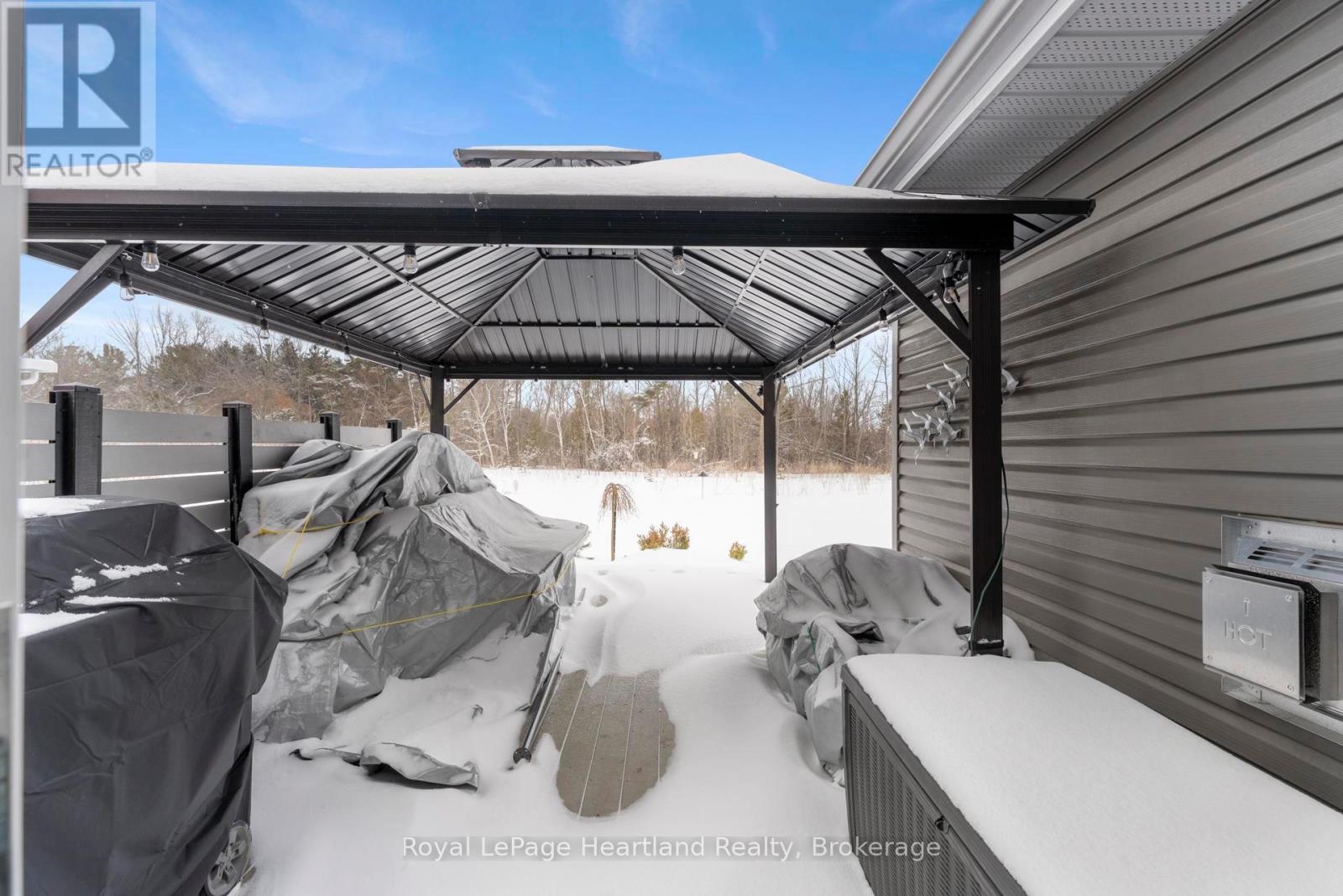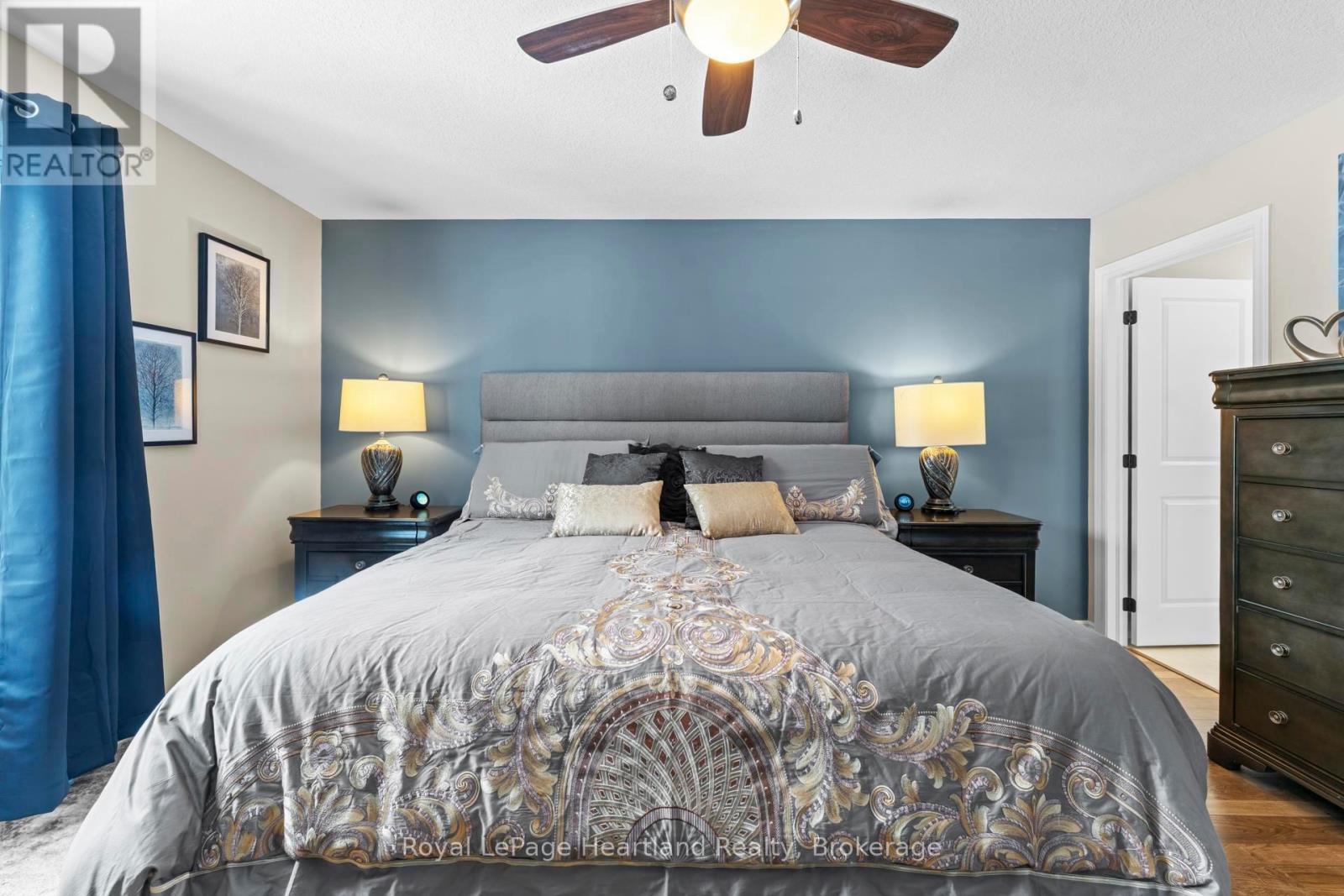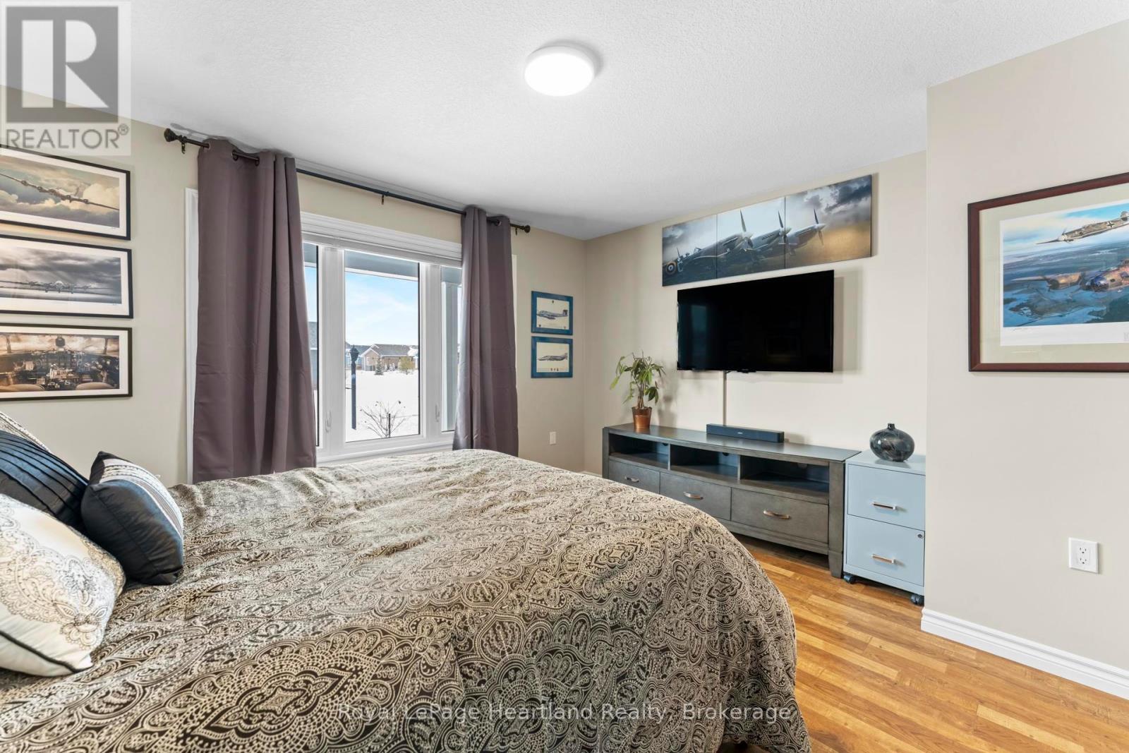 Prime location near the lake! Set in the highly sought-after Bluffs at Huron, this immaculate bungalow backs onto an open field and natural environment, offering a peaceful backdrop and privacy, while still being a short stroll to the community rec centre, lake access, and all the lifestyle perks that make this waterfront neighbourhood so desirable. This impressive "Lakeside with Sunroom" model offers approx. 1,455 sq ft of designed living space and a long list of quality upgrades. Curb appeal shines with manicured landscaping, mature trees and an inviting front porch. Inside, the bright, welcoming layout is finished with high-end continuous flooring and upgraded lighting. The custom kitchen is a standout with abundant cabinetry topped with crown moulding, soft-close doors, quartz countertops, tile backsplash, under-cabinet lighting, an enlarged centre island, built-in microwave, high-capacity range hood fan, Bosch panel dishwasher, and induction stove. The kitchen flows seamlessly into the dining area and sunroom featuring a tray ceiling and patio doors to the outdoors. Step outside to a spacious south-facing composite deck complete with gazebo, privacy wall, and a professionally installed 16' x 16' stone patio-perfect for entertaining or quiet evenings. The generous primary bedroom offers a walk-in closet and 3-piece ensuite. A second bedroom and a stylish 4-piece main bath complete the main level; both baths are upgraded with quartz counters, tile details and glass sliding shower doors. Relax in the living room beside the contemporary low-profile Solas gas fireplace with remote. Enjoy plenty of storage with multiple closets, a full crawl space, and an attached two-car garage. Bonus: six appliances included. Located in an upscale land lease community with a private recreation centre and indoor pool, close to shopping and several golf courses. Book your private showing today! (id:51300)