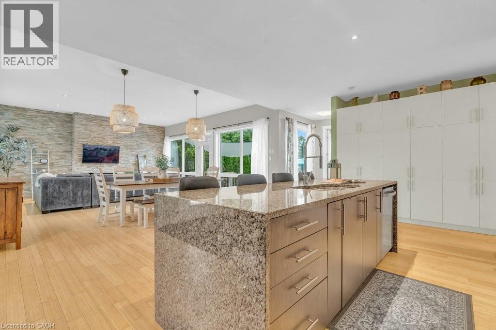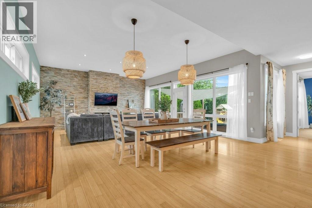 This large bungalow offers almost 4000sq/ft of living space. 331 Northumberland St offers 3+2 bed, 4-bath home is located in the family-friendly community of Ayr. Situated in a vibrant neighbourhood renowned for schools and its community vibe, this spacious home offers an ideal setting for families to grow or for in-laws to share a peaceful lifestyle.This beautifully maintained home features luxury finishes.The main level boasts an open-concept design with floor-to-ceiling windows that flood with natural light and offer views of the rear patio.A focal fireplace wall adds a modern touch, perfect for relaxing and entertaining.Spacious bedrooms provide walk-in closet space and ample storage. The large master bedroom retreat includes a walk-in closet and a luxurious ensuite, providing a perfect sanctuary.Two additional main-level bedrooms share a convenient Jack and Jill bathroom,ideal for family.The main floor also features a convenient laundry area, along with a practical mudroom—perfect for kids’ backpacks and shoes.The chef’s kitchen is a true centerpiece, with ample counter space, a kitchen island great for those who love to cook.The seamless flow into the living and dining areas makes this space ideal for entertaining.The SOUND PROOFED basement offers fabulous in-law potential with additional kitchen,two bedrooms,and layout that can accommodate extended family, teens, or home office.A rear yard entrance provides access to the basement.The backyard retreat features a patio, a splash pool, a garden shed for storage, and landscaped fencing for privacy.The garage a handyman’s dream, with soaring ceilings for a car hoist—perfect for vehicle enthusiasts.Located close to shopping, schools, parks, and community amenities, this home offers the best of Ayr’s scenic waterways, historic charm, and heritage.Whether you’re seeking a family-friendly environment or a peaceful retreat, this property combines comfort, functionality, and community spirit in one exceptional package. (id:51300)