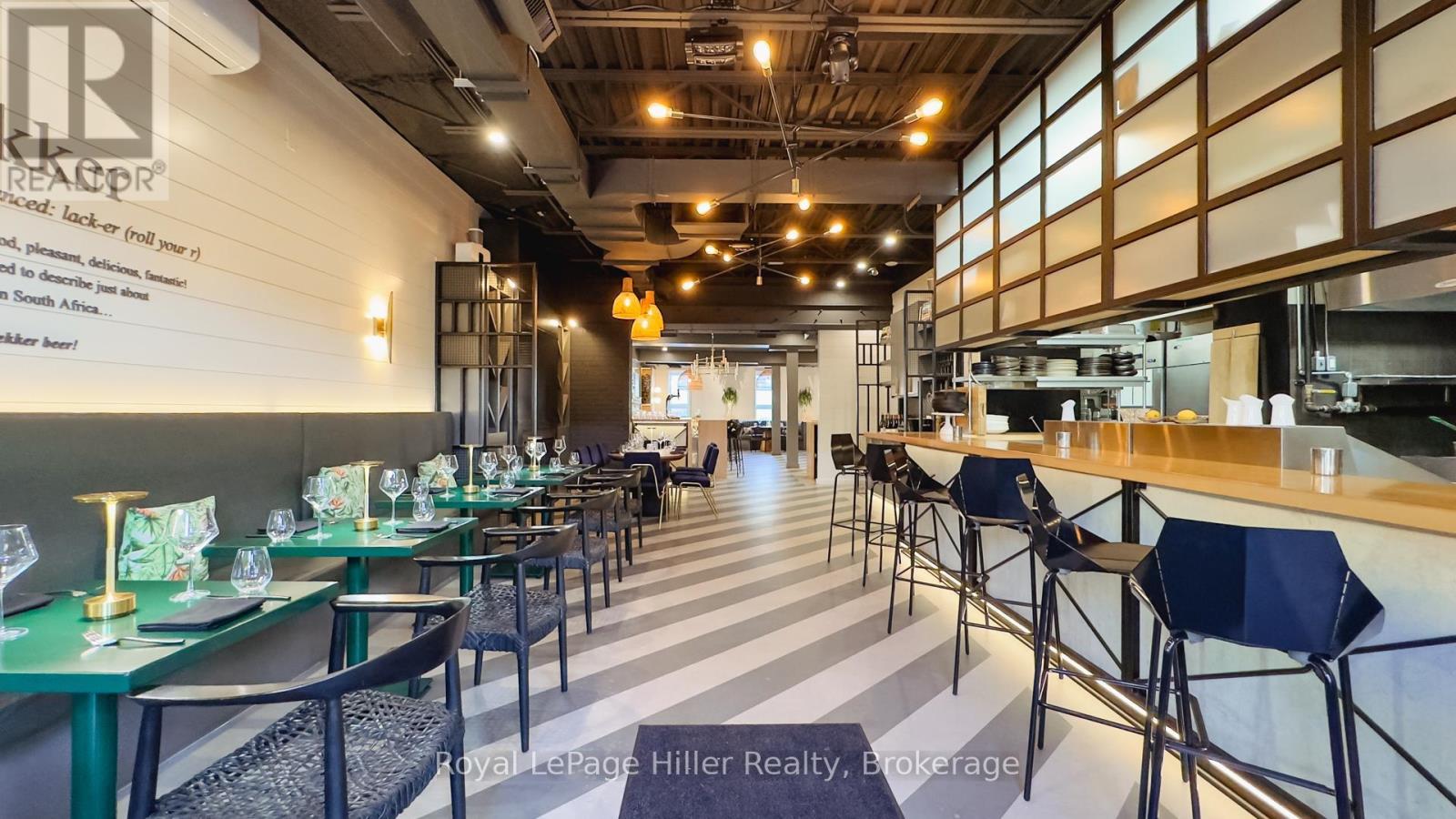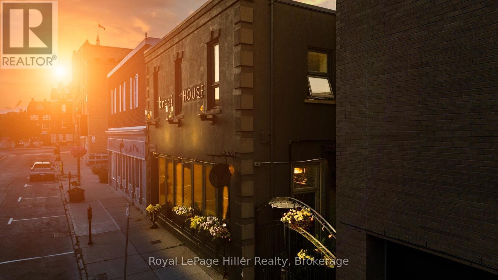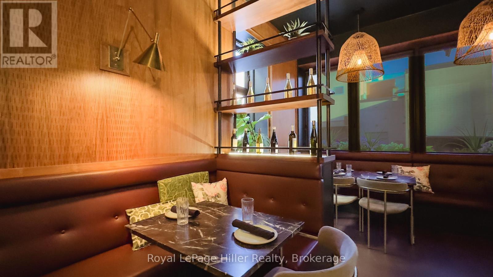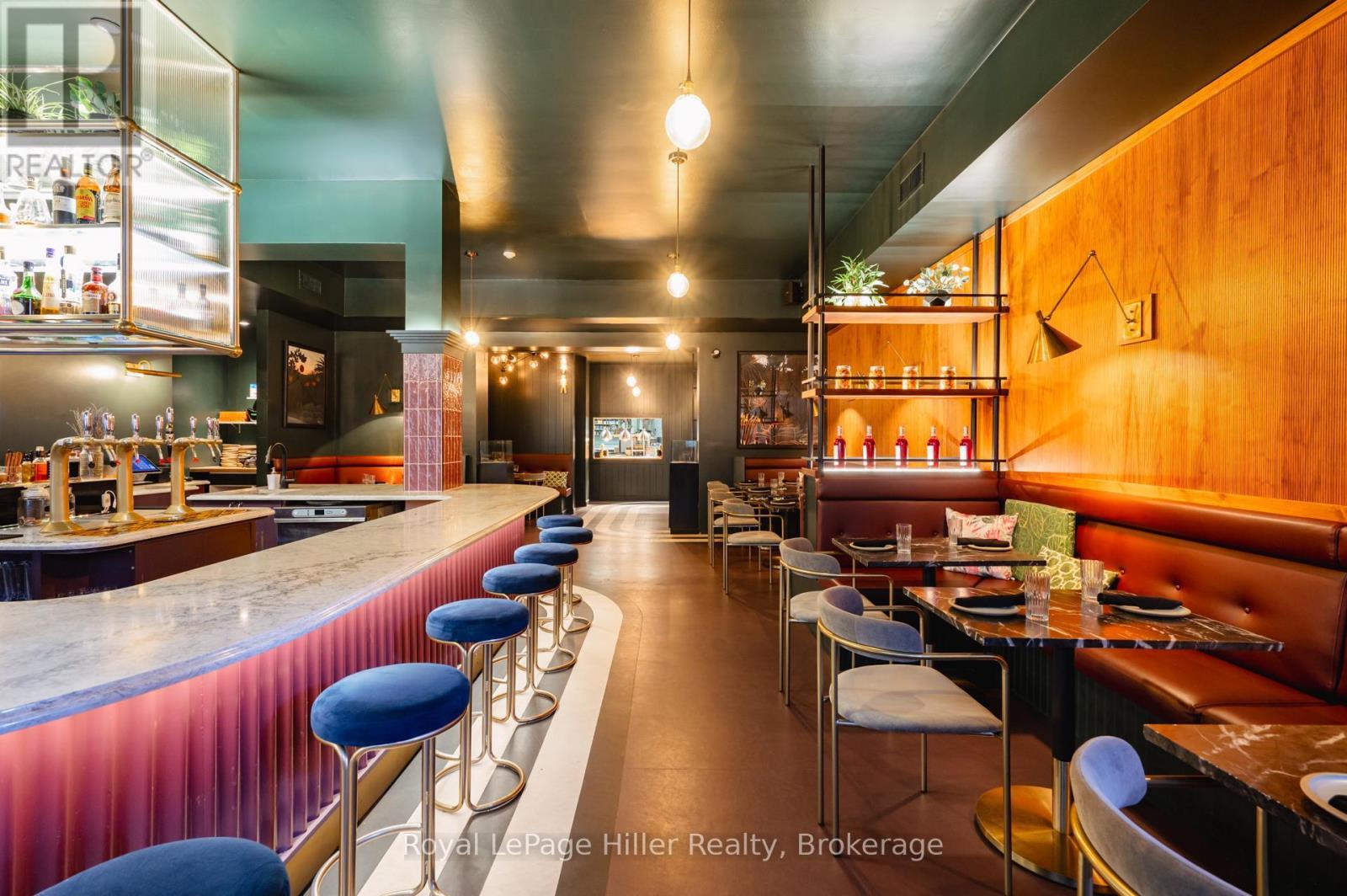 Rare downtown Stratford investment offering two fully built, turnkey commercial restaurant spaces under one roof at 34 Brunswick St. Priced for today's market, this asset delivers exceptional flexibility for investors, owner-operators, or hospitality entrepreneurs seeking income, control, and long-term upside in a proven dining and tourism district.The property supports multiple acquisition strategies: lease both restaurants for stabilized income, operate one and lease the other, or owner-occupy and operate both concepts. Each space is fully equipped and operational, eliminating build-out risk, construction delays, and startup uncertainty. Licensed for Approx. 210-guests total with elegant bar seating throughout.Both restaurant spaces are professionally designed to sophisticated, destination-level standards, offering distinct and layered dining experiences. The main floor features refined interior dining complemented by a covered Euro-style alley patio, creating an inviting year-round setting for casual or polished service.The second level provides multiple elevated experiences, including a luxurious cocktail bar and a spectacular interactive chef's bar counter showcasing open-fire cooking and wood-fired pizza preparation. Seating includes cozy round tables, flexible group arrangements, and layouts that easily adapt to varying party sizes while preserving ambiance and flow. A standout feature is the elevated two-tier rear deck, offering a more relaxed, casual option for afternoon lunches or informal dinners, balancing the refined interior dining environment.Overall, the property delivers immersive, high-quality hospitality spaces supported by well-crafted menus and thoughtful design. Equally suitable as a turnkey restaurant investment or a platform for entrepreneurs to introduce their own concept, style, and flavour. A compelling opportunity to acquire a flexible, income-capable hospitality asset in Stratford's downtown core. (id:51300)