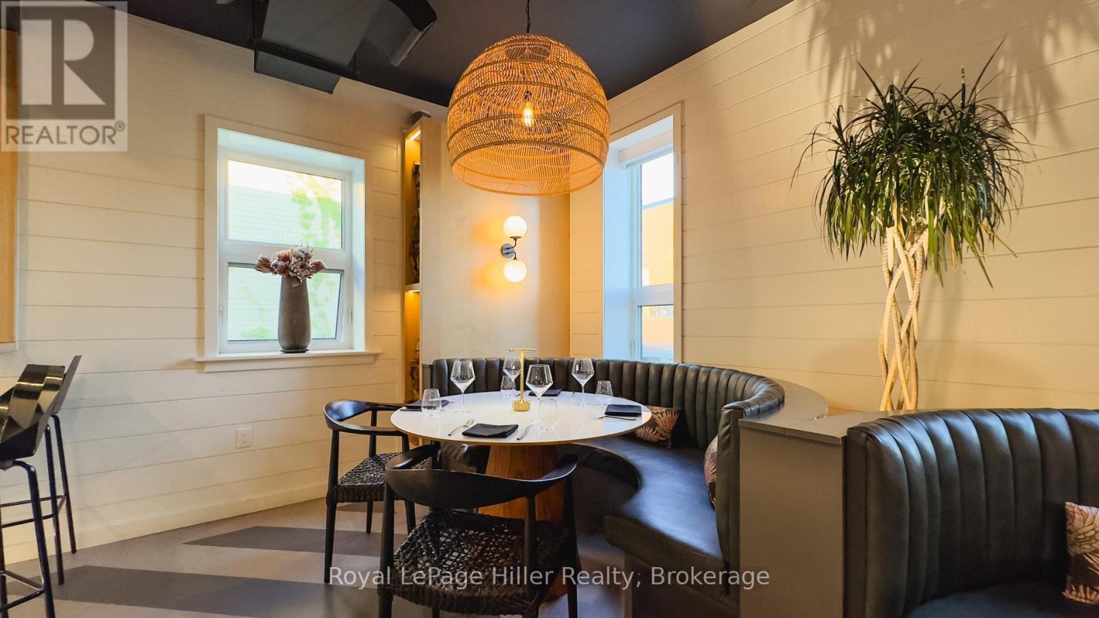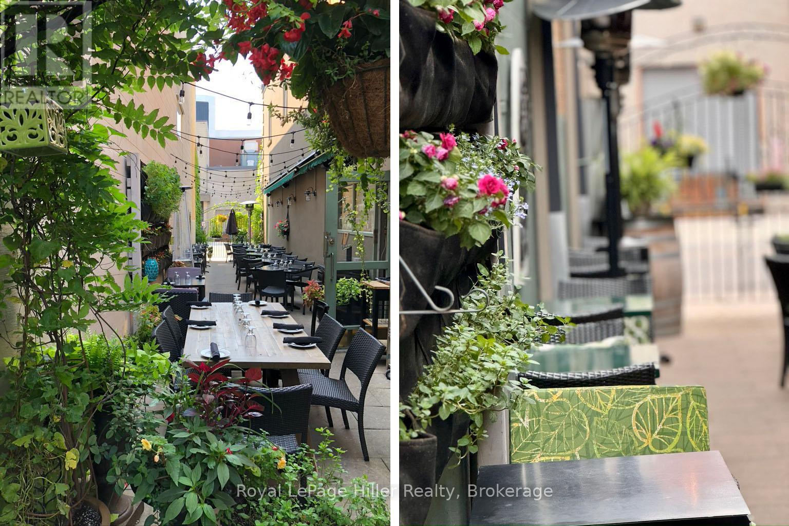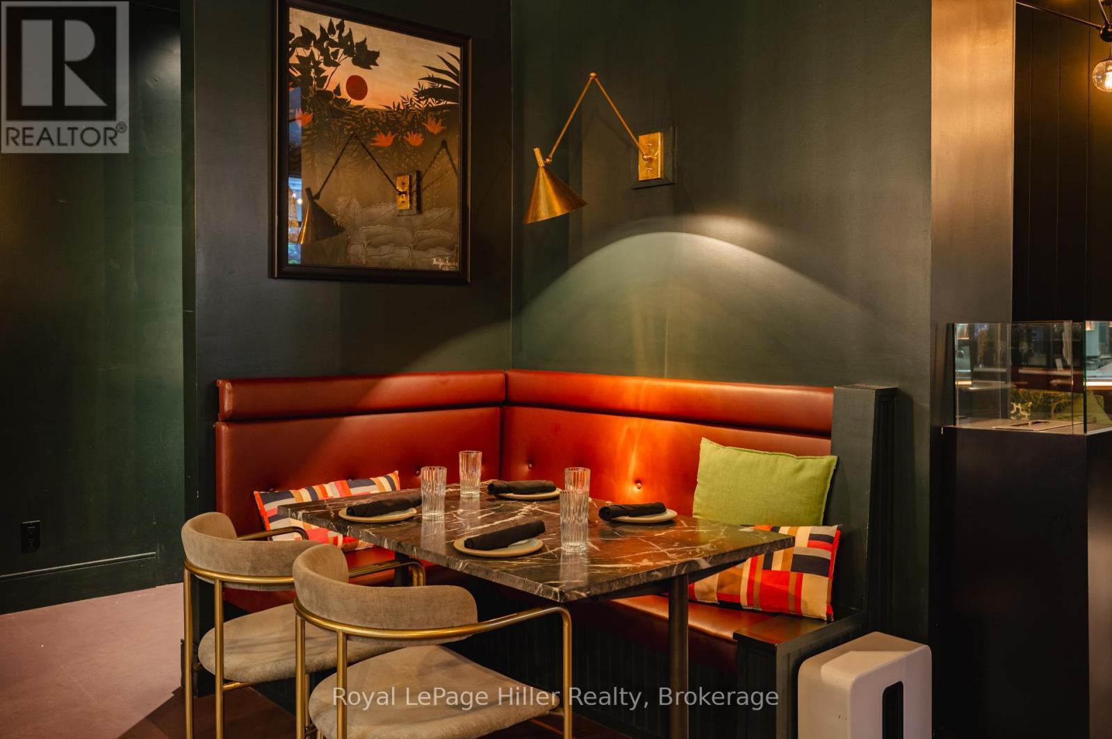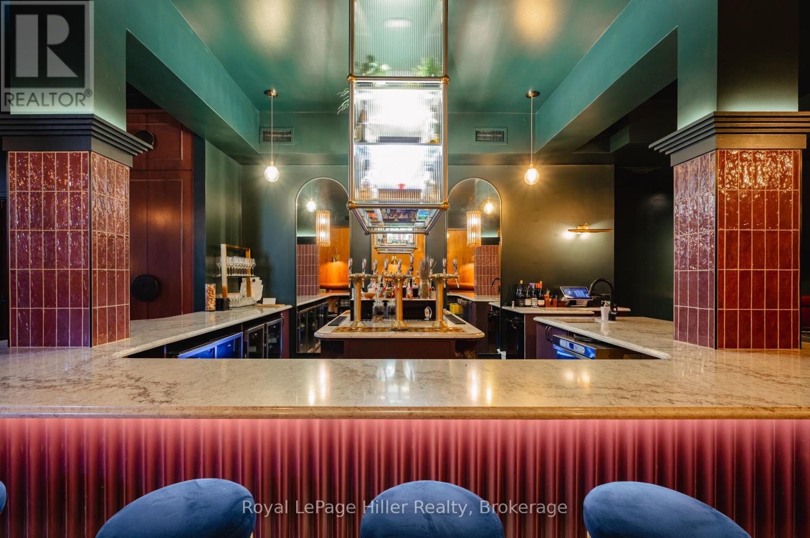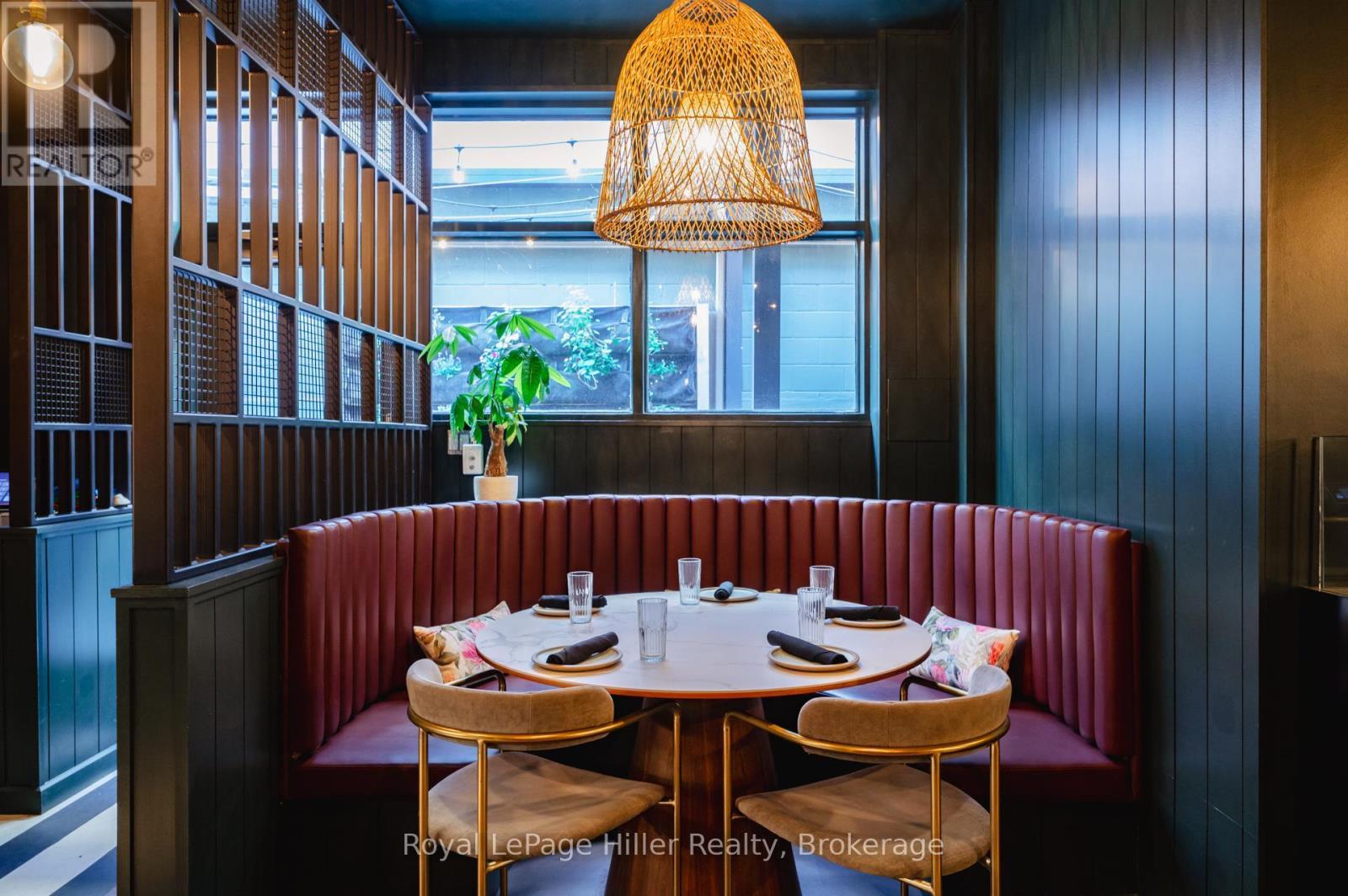 Rare downtown Stratford investment offering two fully built, turnkey commercial restaurant spaces under one roof at 34 Brunswick St. Priced for today's market, this asset delivers exceptional flexibility for investors, owner-operators, or hospitality entrepreneurs seeking income, control, and long-term upside in a proven dining and tourism district.The property supports multiple acquisition strategies: lease both restaurants for stabilized income, operate one and lease the other, or owner-occupy and operate both concepts. Each space is fully equipped and operational, eliminating build-out risk, construction delays, and startup uncertainty. Licensed for Approx. 210-guests total with elegant bar seating throughout.Both restaurant spaces are professionally designed to sophisticated, destination-level standards, offering distinct and layered dining experiences. The main floor features refined interior dining complemented by a covered Euro-style alley patio, creating an inviting year-round setting for casual or polished service.The second level provides multiple elevated experiences, including a luxurious cocktail bar and a spectacular interactive chef's bar counter showcasing open-fire cooking and wood-fired pizza preparation. Seating includes cozy round tables, flexible group arrangements, and layouts that easily adapt to varying party sizes while preserving ambiance and flow. A standout feature is the elevated two-tier rear deck, offering a more relaxed, casual option for afternoon lunches or informal dinners, balancing the refined interior dining environment.Overall, the property delivers immersive, high-quality hospitality spaces supported by well-crafted menus and thoughtful design. Equally suitable as a turnkey restaurant investment or a platform for entrepreneurs to introduce their own concept, style, and flavour. A compelling opportunity to acquire a flexible, income-capable hospitality asset in Stratford's downtown core. (id:51300)