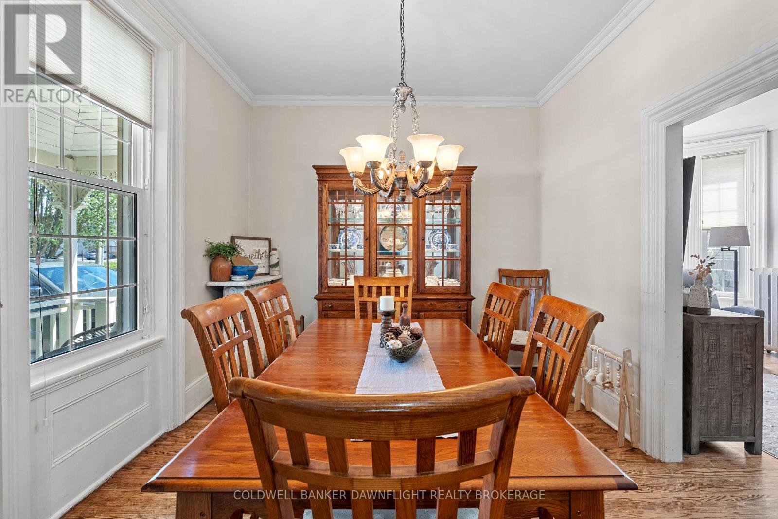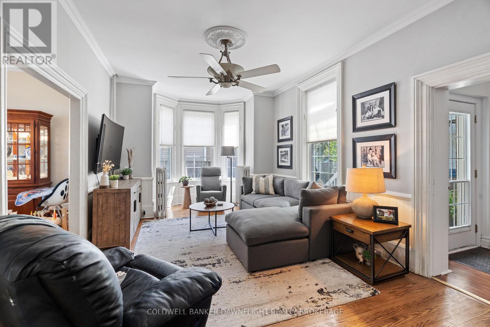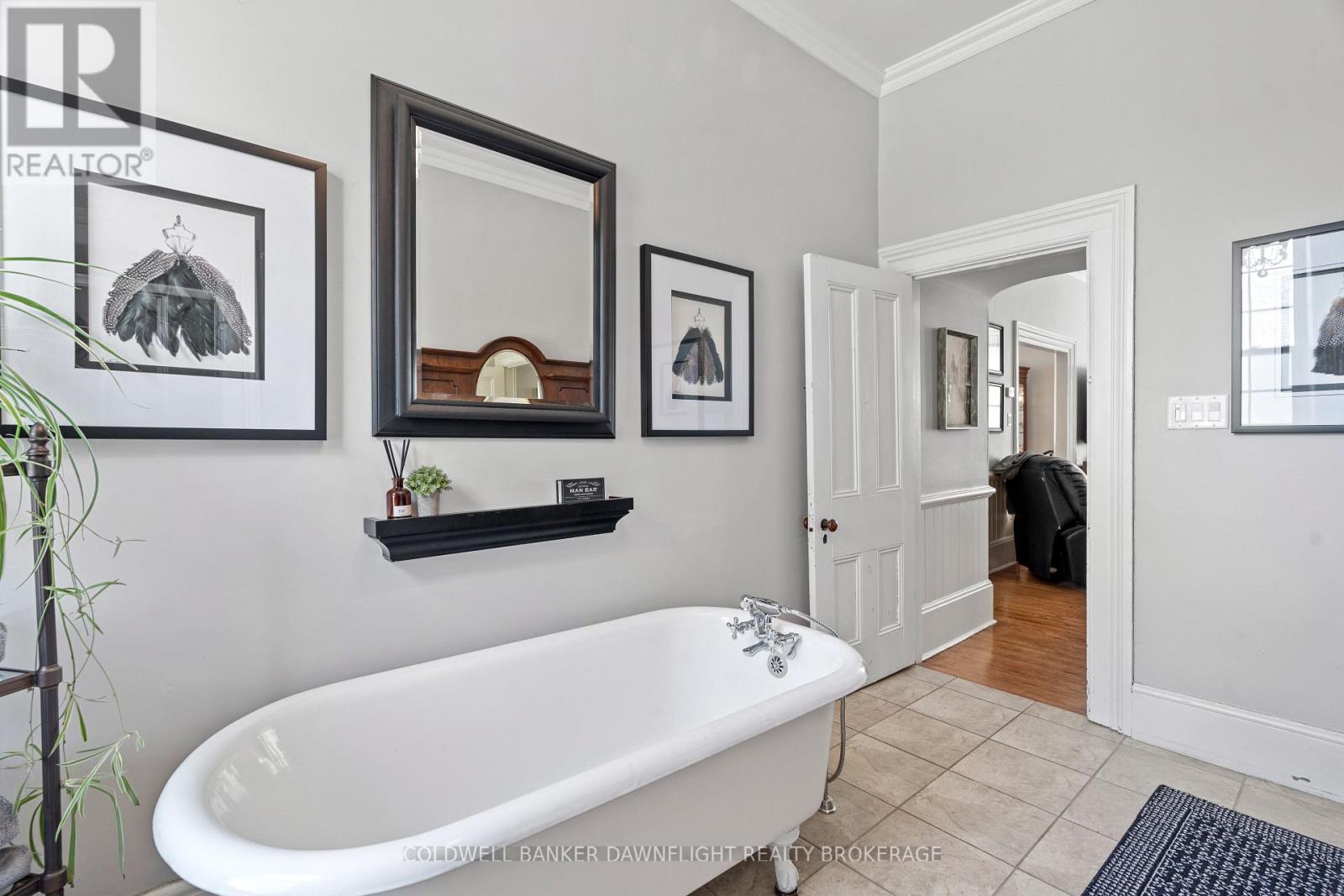 Step into a beautifully preserved piece of character and charm with this attractive yellow brick home that offers far more space than it appears. This home features four bedrooms and three bathrooms, including a rare ensuite, a standout for this style of property. One bedroom is located on the main floor, offering flexibility for guests or single-level living, while three additional bedrooms are upstairs. The layout combines timeless charm with thoughtful modern updates for comfortable everyday living.The welcoming front entrance is truly unique, boasting a covered porch with three separate access points, adding both functionality and curb appeal. Inside, you'll find high ceilings on the main floor, an updated kitchen with a striking exposed brick wall, and the convenience of main floor laundry. The home is heated with efficient hot water radiant heat and is kept cool in the warmer months by a brand-new ductless AC unit. Outdoors, the fully fenced yard includes a covered back deck complete with a hot tub, offering a private space to relax or entertain.There's parking for up to five vehicles and a versatile storage shed/garage located at the rear of the property perfect for additional storage or workspace. From the charming exterior to the spacious interior and practical updates, this home offers exceptional value and a truly inviting place to call home. (id:51300)
