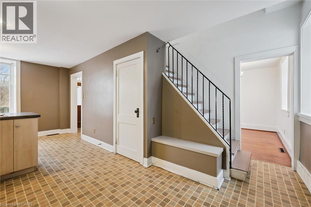 Location ! Location ! This hidden gem, built in 1856 is the original limestone homestead with added addition in more recent years, offering 1600 sq ft. of living space. Just steps to downtown Fergus, this unique opportunity has so much to offer the first-time buyer, investor or contractor alike. As you pull up, the oversized double driveway across 82' property frontage, will impress those looking for a surplus of parking and the bonus carport. Once inside, the family room addition is a nice space with built-in fireplace and walk-out to fenced rear yard. My favorite room is the large sunken country kitchen with lots of cupboard space, stainless steel appliances and eat-in dining area. Once a formal dining room off the kitchen, another large room has so many other possibilities, including primary bedroom, added family room, home office and more. Make your way to the upper level and you will find 2 generous bedrooms, both with double closets and the original wide pine plank floors and full 4 pc. bathroom. Whether you're looking to make this your first home or looking for a renovation project, this home is a rare opportunity to bring that all together. It's not often an opportunity like this comes available! (id:51300)
