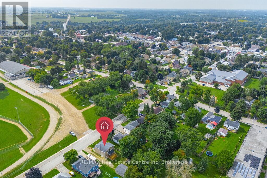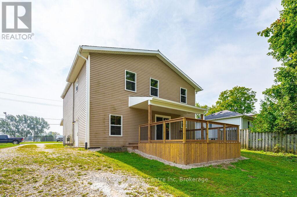 Beautifully updated 4 bedroom 2 bath two storey on one of the biggest properties in the entire town. The massive country style kitchen featuring deep toned cabinets and enough counter space for everyone to help out at the Thanksgiving Dinner. This space is only beat by the size of the open concept dining room that would easily seat 20 for every occasion. Cozy den with living room welcomes the whole family to movie night and yet not too big to miss cuddle time. The three big bedrooms all feature great space and plenty of closets but the primary bedroom not only fits all the furniture but still leaves room for a reading nook all to yourself not far from the walk-in closet and private entrance to the space like main bathroom. The party time covered deck extends your summer way into fall and still do your barbecuing all the way through winter with ease. Two plus car garage is big enough to fit the boat on the trailer and still have room for the winter project to take shape. We even have room for the kids to stretch their legs on the incredible 66X279 lots and another three acres across the street to the park complete with splash pads, walking track and ball diamonds. (id:51300)