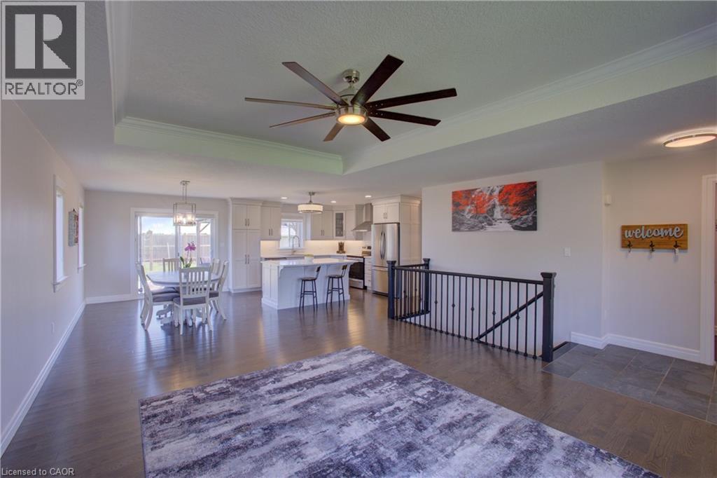 Welcome to 37 Lorne Street West – A Custom-Built Bungalow with In-Law Suite! Discover exceptional value and thoughtful design in this 2020 custom-built bungalow, ideally located in the welcoming community of Harriston. With over 2,600 sq. ft. of finished living space, this home is perfect for families, multigenerational living, or those seeking flexible space. The main level features 3 spacious bedrooms, 2 full bathrooms, a bright open-concept layout, and high-end finishes throughout. From upgraded flooring and trim to custom cabinetry and fixtures, every detail has been considered. The kitchen stands out with its oversized, handcrafted island—ideal for cooking, gathering, and entertaining. Natural light pours in through large windows, creating a warm and inviting atmosphere. The primary suite includes a walk-in closet and an ensuite with a generously sized walk-in shower. Convenient main floor laundry and direct access to the double garage make daily living easy. Downstairs, enjoy a fully finished lower level offering a rec room, two additional bedrooms, and a living room —perfect for extended family, or guests,. Situated on a deep 132-foot lot, this home offers a spacious fully fenced yard and curb appeal to match. Harriston delivers all the essentials with a charming small-town feel and a lively downtown. You’ll also love the commute—Orangeville, Kitchener-Waterloo, and Guelph are all within reach. Travel just 30 minutes south and you'll be paying significantly more for a home like this. Don’t miss out! (id:51300)