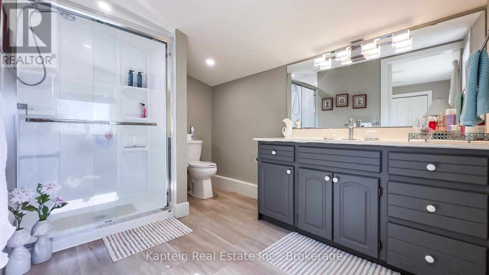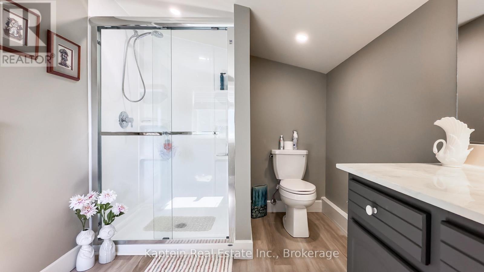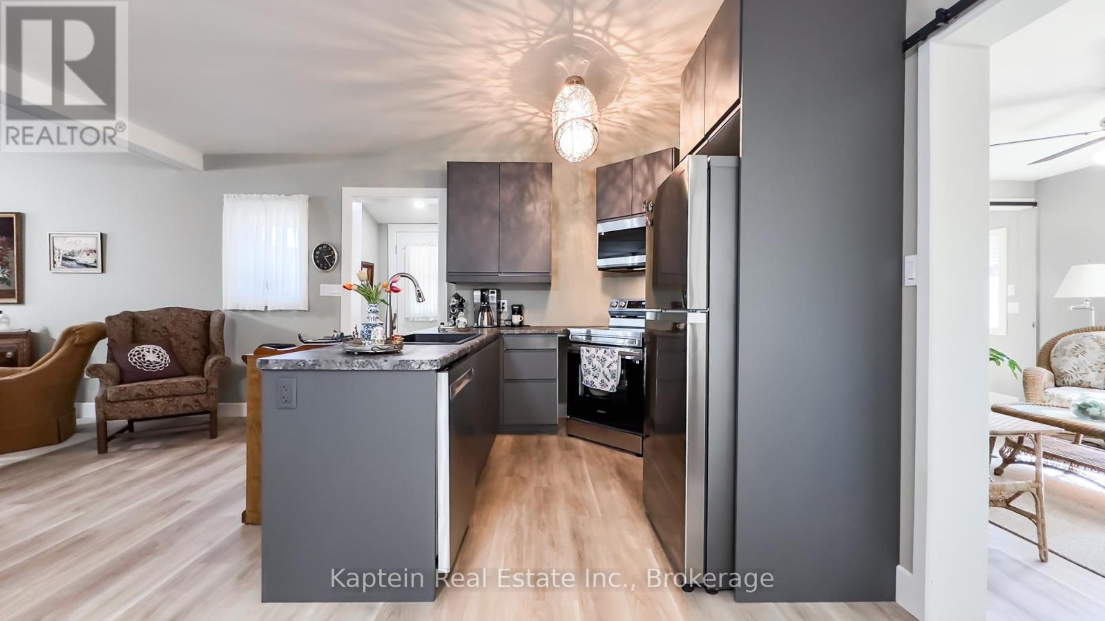 a Beautifully remodeled 2 bedroom 2 bathroom home taken down to the studs. New wiring plumbing heating windows and doors new furnace and air exchanger water softner new insulation in walls and ceiling house has all been permitted and final inspection completed and passed 650 sq ft garage 3 other bays they range in size roughly 1000 sq ft 900 sq ft and one 400 sq ft all are insulated and have their own hydro meter that is in the garage. There is also a separate out building with a garage door rent last year on shops 1 dollar per sq ft per month plus hst house rented for 2000 per month inclusive (id:51300)