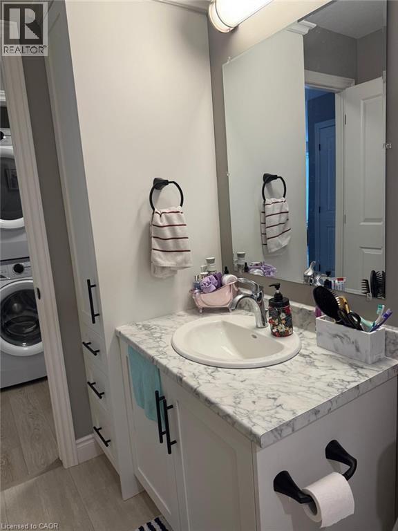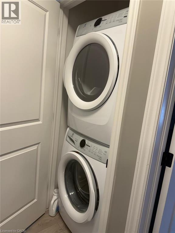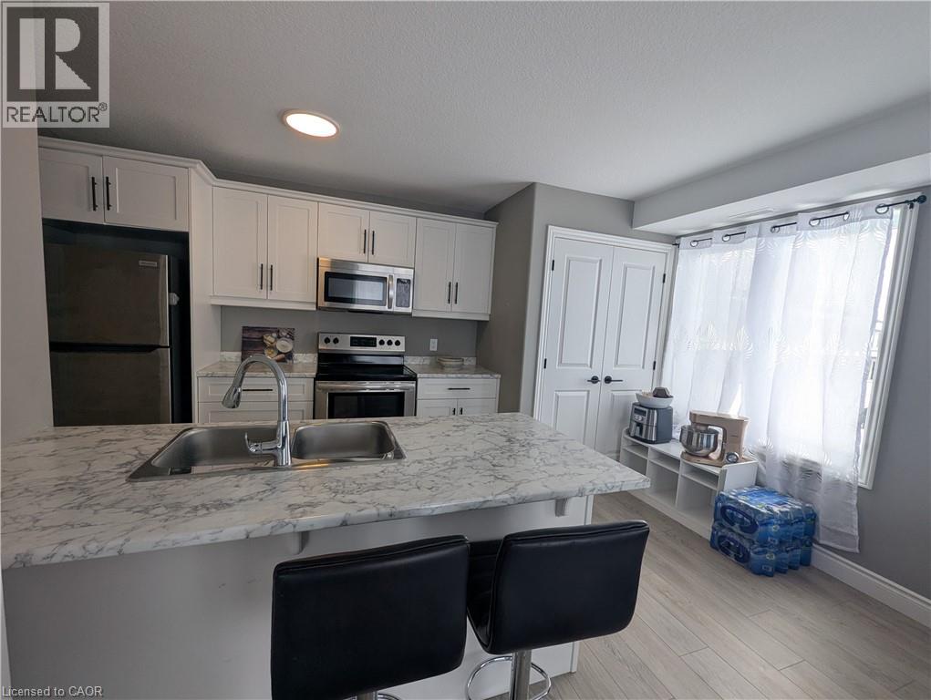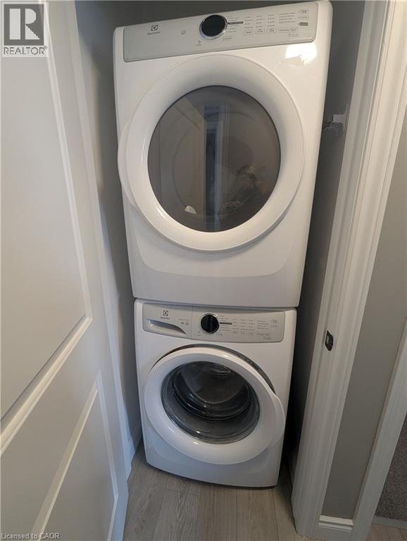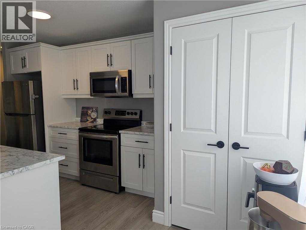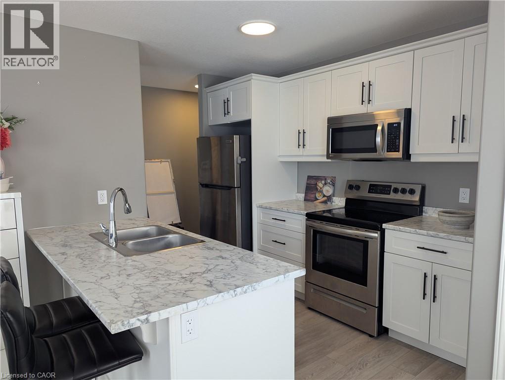$261.10 MonthlyLocated just a short drive from Stratford's Avon river, Downtown core, Shakespeare festivals, local golf courses, and a 35 minute drive from Kitchener/Waterloo with easy access to the downtown. This second level condo features, 2 good sized bedrooms, a full 4-piece bathroom with linen closet, in-suite laundry, a modern kitchen design featuring hard surface counter tops, kitchen backsplash, stainless steel appliances and an open concept to your kitchen/living/dining room with large windows for great natural lighting. Quality Homes Built condos come with an extra level of SOUND BARRIER with their unique 1.5 concrete topper design between levels. Coming with an on demand water heater, air conditioning, 1 outdoor parking space and plenty of outdoor common space to enjoy the natural creek alongside the condominium. Enjoy the simplified hassle free lifestyle of condo living while taking in beautiful summer nights sunsets on your covered balcony. (id:51300)