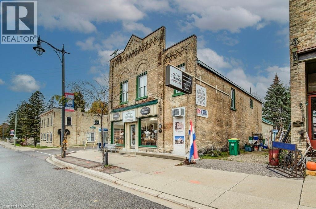 INVESTMENT OR BUSINESS OPPORTUNITY! Downtown, high visibility, high traffic, commercial / residential property on Main St Clifford. Nearly 1900 square feet of ground level retail/office/services space and a large 3+ bedroom apartment above. Live on site and run your business below, rent either space to supplement the other, or rent the whole property for some great rental income and cashflow. Bakery, butcher shop, insurance, law, hair salon, fast food, etc. etc. The options are plentiful. Property fronts onto busy Highway 9 with regular traffic flow to and from Lake Huron beaches, cottages, the expanding Bruce Power, and more. KNOCK, KNOCK! (id:51300)