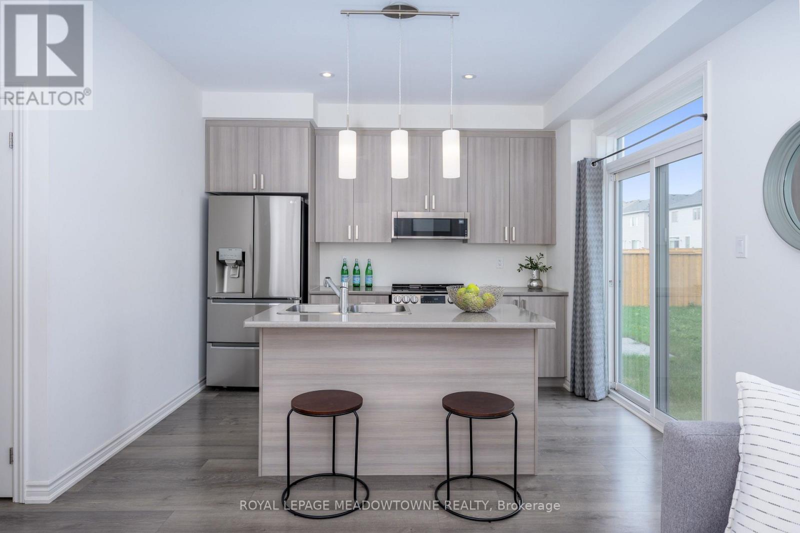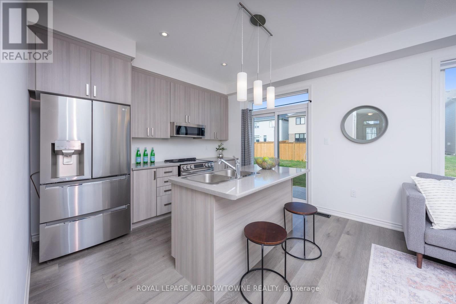 Stunning 2023 Bronte Model by Tribute Homes in the Heart of Fergus. Welcome to this exceptional 2023 Bronte model, expertly crafted by Tribute Homes and located in the picturesque town of Fergus, renowned for its rich heritage and the annual Highland Games. This beautifully designed residence combines modern comfort, thoughtful layout, and timeless appeal. Offering 3 bedrooms and 3 bathrooms, this move-in-ready home is tailored for contemporary living. The main floor showcases 9-foot ceilings, enhancing the sense of space and natural light throughout. The modern kitchen features stainless steel appliances, a large breakfast island with seating for two, and patio doors opening directly to the backyard -- ideal for entertaining or family gatherings. The inviting great room is highlighted by a gas fireplace and rear yard views, while a dedicated dining area and convenient powder room complete the main level. Upstairs, the primary suite offers a private retreat with a spacious walk-in closet and a 4-piece ensuite. Two additional well-appointed bedrooms share a second 4-piece bathroom, providing ample space for family or guests. The unfinished basement and 200-amp electrical service offer excellent potential for future customization -- whether you envision a recreation room, home office, gym, or additional storage. A single-car garage and private driveway accommodating a second vehicle add to the home's practicality. Perfect for families, first-time buyers, or anyone seeking a turnkey property, this home is ideally located within walking distance of local parks, and only minutes from schools, shopping, dining, and essential amenities. Historic downtown Fergus is a short drive away, while Elora Gorge and Belwood Lake Conservation Area provide endless opportunities for outdoor recreation. Enjoy the charm and community spirit of small-town living with the convenience of an easy commute to Guelph, Kitchener-Waterloo, Cambridge, and the GTA. (id:51300)