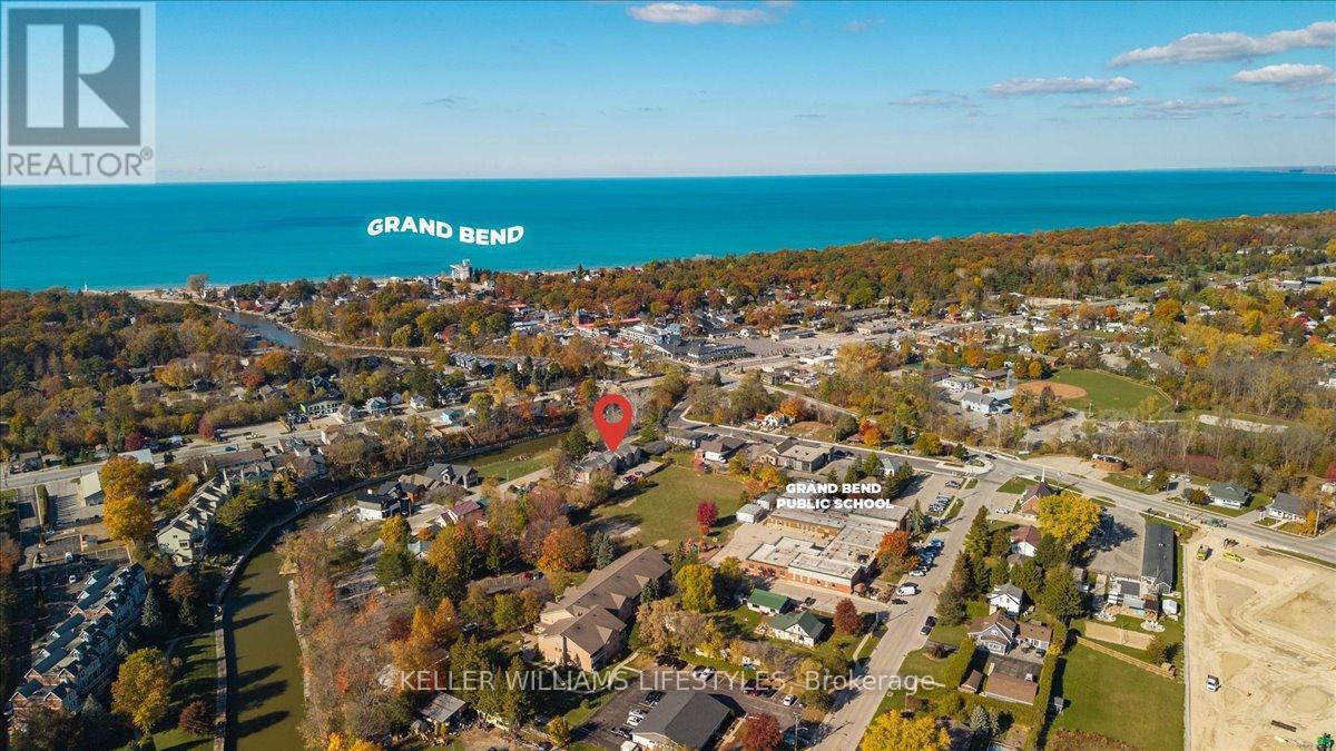 Located in gorgeous Grand Bend, this beautifully updated townhome offers the perfect blend of comfort, convenience, and charm. Nestled on a quiet dead-end street surrounded by stunning homes, this property boasts views of the river and a prime location within walking distance to restaurants, shops, the public school, and the main strip of Grand Bend. Enjoy easy access to the beach and everything this vibrant lakeside community has to offer. Inside, you'll find a beautiful custom kitchen completely redone in 2020, along with an updated main floor powder room, modern flooring, and newer windows throughout. Upstairs features two spacious bedrooms, with the potential to add a third in the lower level for extra space or guests. Whether you're a first-time home buyer, retiree, or someone looking for a low-maintenance lifestyle in one of Ontario's most desirable beach towns, this home is an incredible opportunity. Move in and start enjoying the Grand Bend lifestyle today! (id:51300)