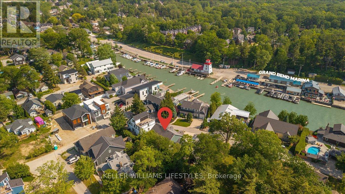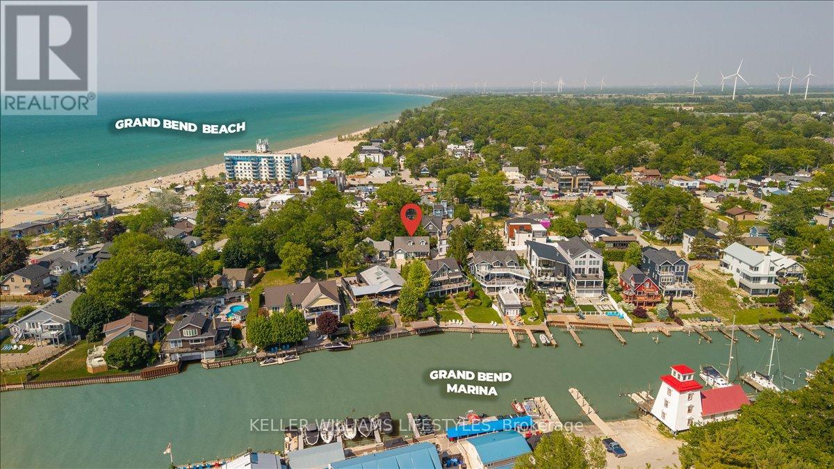 Discover the perfect blend of charm and convenience in this stunning Grand Bend home, tucked away on a quiet, secluded circle with well-maintained properties. Just steps from the shops, restaurants, and vibrant nightlife Grand Bend is known for-and only moments from Lake Huron's sandy public beach-this Cape Cod-inspired gem fits beautifully into the lakeside community. Perfect as a year-round residence, family cottage, or investment property, the open-concept layout is ideal for entertaining, featuring beautiful finishes, vaulted ceilings, a gorgeous gas fireplace, and an abundance of natural light. The walk-out basement, attached garage, and minimal maintenance make for easy living, while the completely private backyard-with no neighbours in sight-offers peace and tranquility. Ideally located close to the boat launch and just a 4-minute drive to the Grand Bend Marina, along with local wineries and breweries, as well as the Huron Country Playhouse, this home places you at the heart of everything Grand Bend has to offer. Whether it's beach days, evenings out on the town, or cozy nights by the fire, this property truly delivers it all! (id:51300)