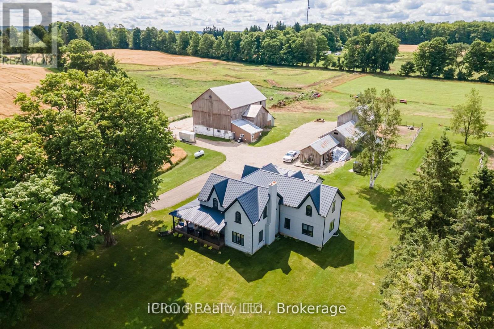 Nestled On over 70 Acres Of Picturesque Countryside, This Charming Farm Features 30 Acres Of Fertile, Workable Land Alongside 40 Acres Of Mixed Bush, With 10 Acres Of The Mixed Bush Being Stunning Sugar Maple Trees. The Property Is Highlighted By A Well-maintained Bank Barn And Three Additional Outbuildings, Currently Utilized For Housing Animals And Storing Equipment, Making It Perfect For An Agricultural Hobbyist.The Residential Home Has Undergone An Extensive Renovations, Rebuilt From The Studs Up, With An Added Addition Complete With An In Law Suite, Showcasing Modern Finishes While Retaining A Cozy Farm Charm. The Kitchen Overlooks A Spacious Covered Wrap-Around Porch Built With Durable Composite Planks And Outdoor Pot-Lights Ideal For Enjoying The Serene Surroundings. Inside, The Large Home Is A Media Room That Features Vaulted Ceilings Adorned With Rustic Barn Beams, Creating A Cozy Yet Impressive Space For Gatherings. 4beds And 4baths Including 2 Primary Suites, This Home Offers Ample Space For Family And Guests, Blending Modern Comfort With The Charm Of Rural Living. **EXTRAS** 200 Amp Service For The Barn And 200 Amps For The Home. The Additional Unfinished Basement At 1615 sq ft Can Be Transformed Into A Fantastic Space. Great Potential For A Games Room Or Just Additional Living Space For The Growing Family (id:51300)