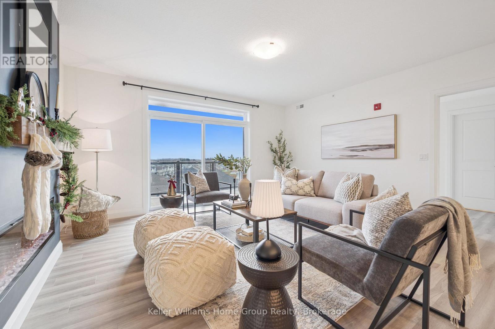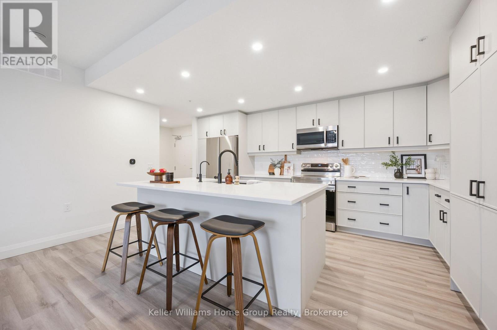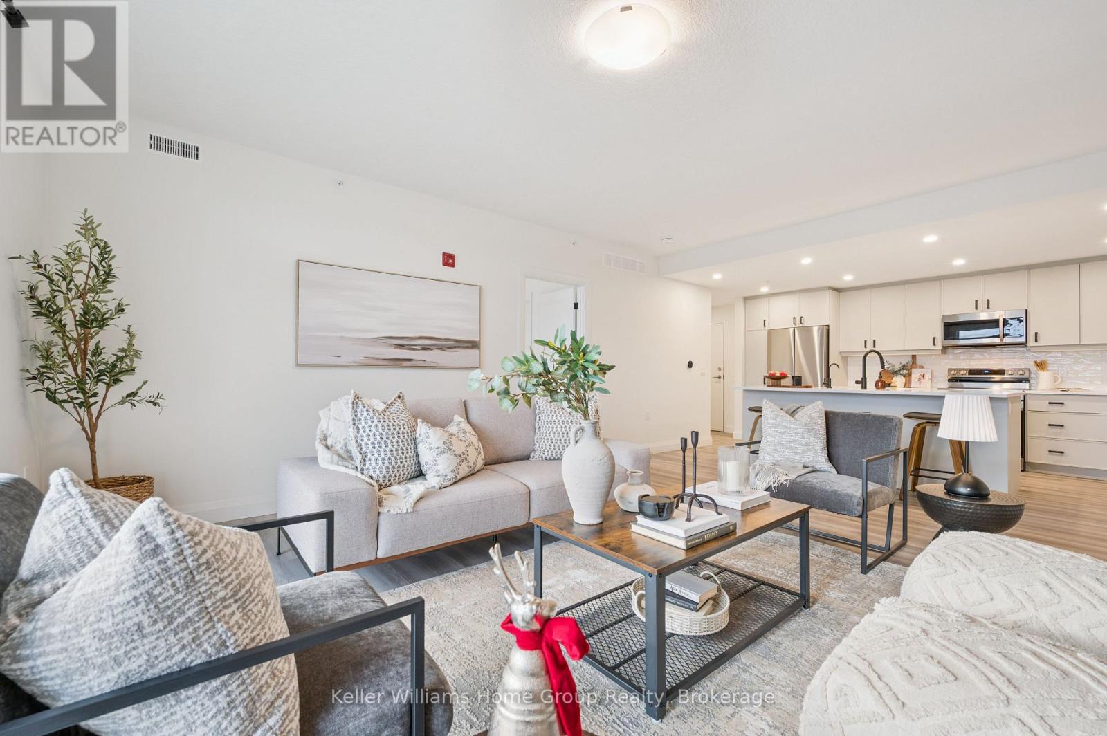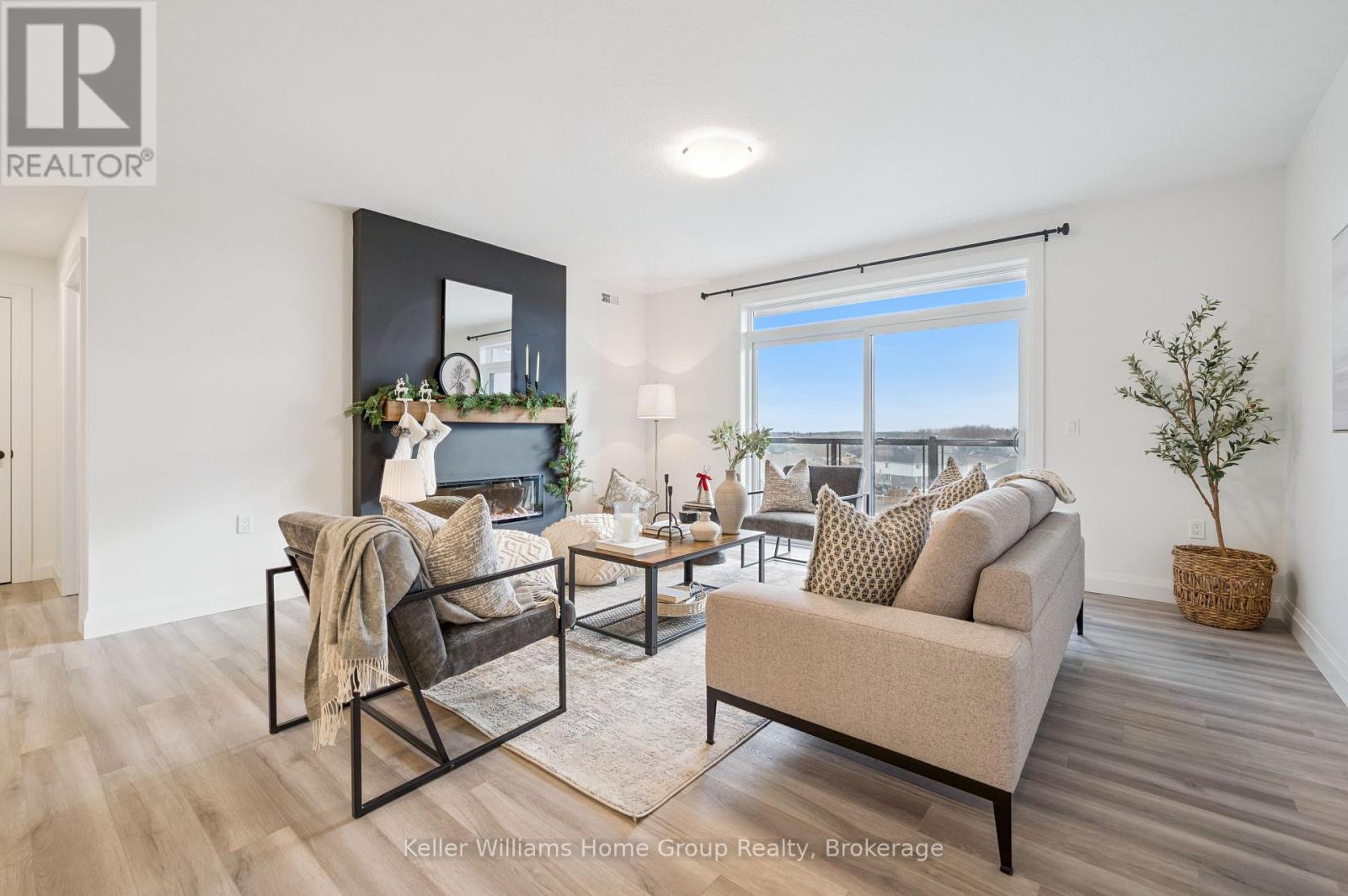 Arguably one of the nicest condo units within 99B Farley Rd., for it's top floor location with elevator access, privacy, south-west exposure, spacious floor plan and storage offerings. This 1275 square foot condo offers 2 generous bedrooms, 2 full baths and an underground parking spot with exclusive locker space. Quality built in '2024 by Keating, this condo has been designed with high quality finishes, ample parking, storage and an eco-friendly Geothermal climate control system for ease of utility costs. It's functional open-concept floor plan offers a very generous kitchen with centre island and breakfast bar, elegant granite countertops and waterfall off island, complete with stainless steel appliances. A seamless flow to the large bright living room, with built-in fireplace and beam mantle, leads out sliding doors to the large balcony overlooking the rear of building (opposite the parking). This sought after layout offers two generous bedrooms, primary bedroom with it's own full ensuite bath and walk-in closet. Second bedroom enjoys it's own use of another full bathroom. In-suite laundry room offers additional storage within unit. Various tasteful updates added throughout this unit, make it a wonderful home for luxury and comfort. The underground parking is right next to elevator and alongside has exclusive large storage unit. Located close to the new Groves Hospital and medical clinics, new public school, parks and walking trails and just a short drive to downtown Fergus and Elora for all they have to offer. You will want to make this a 'must see' and look forward to this holiday season in your new home. (id:51300)