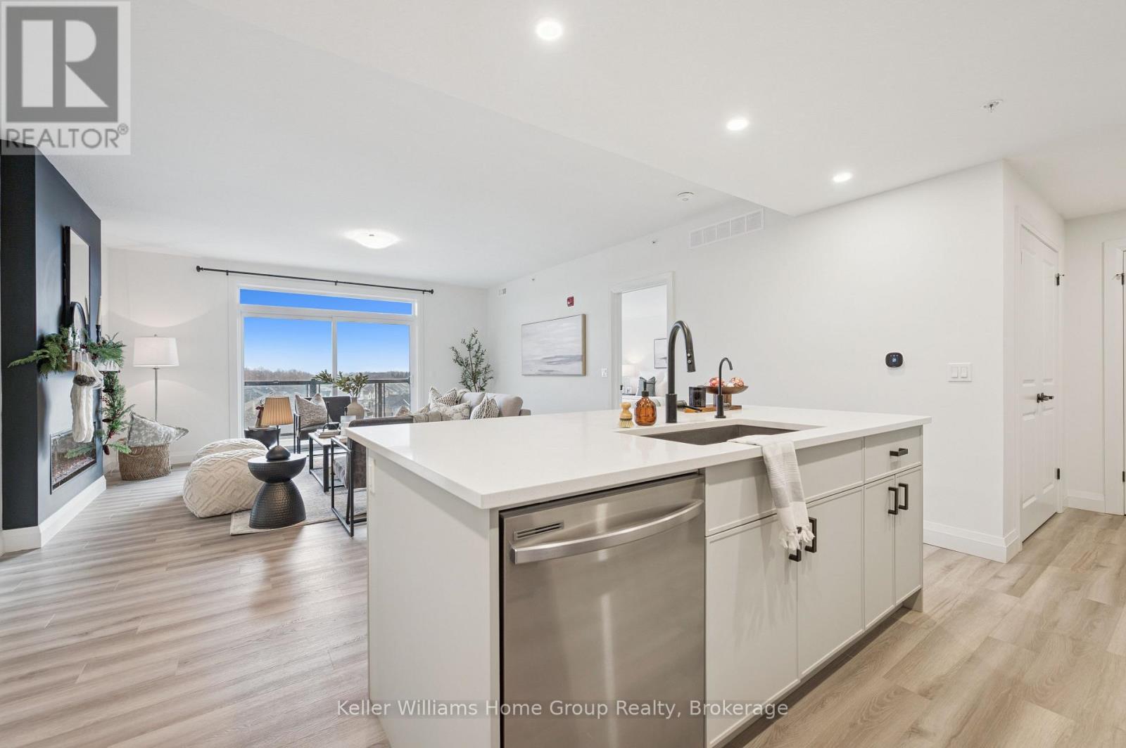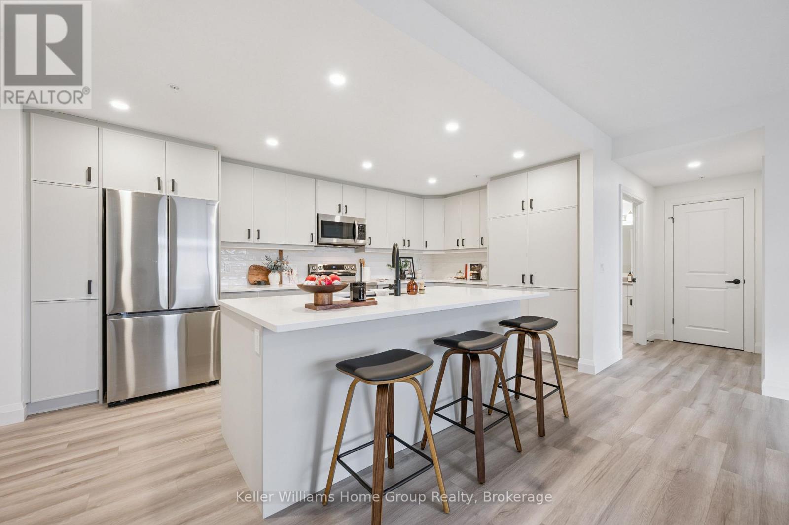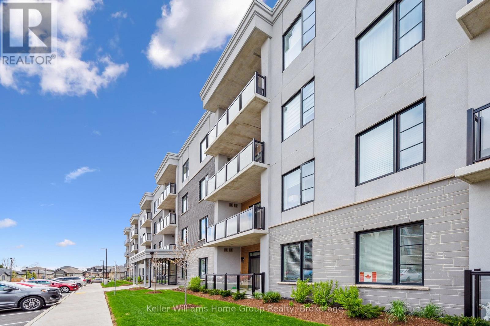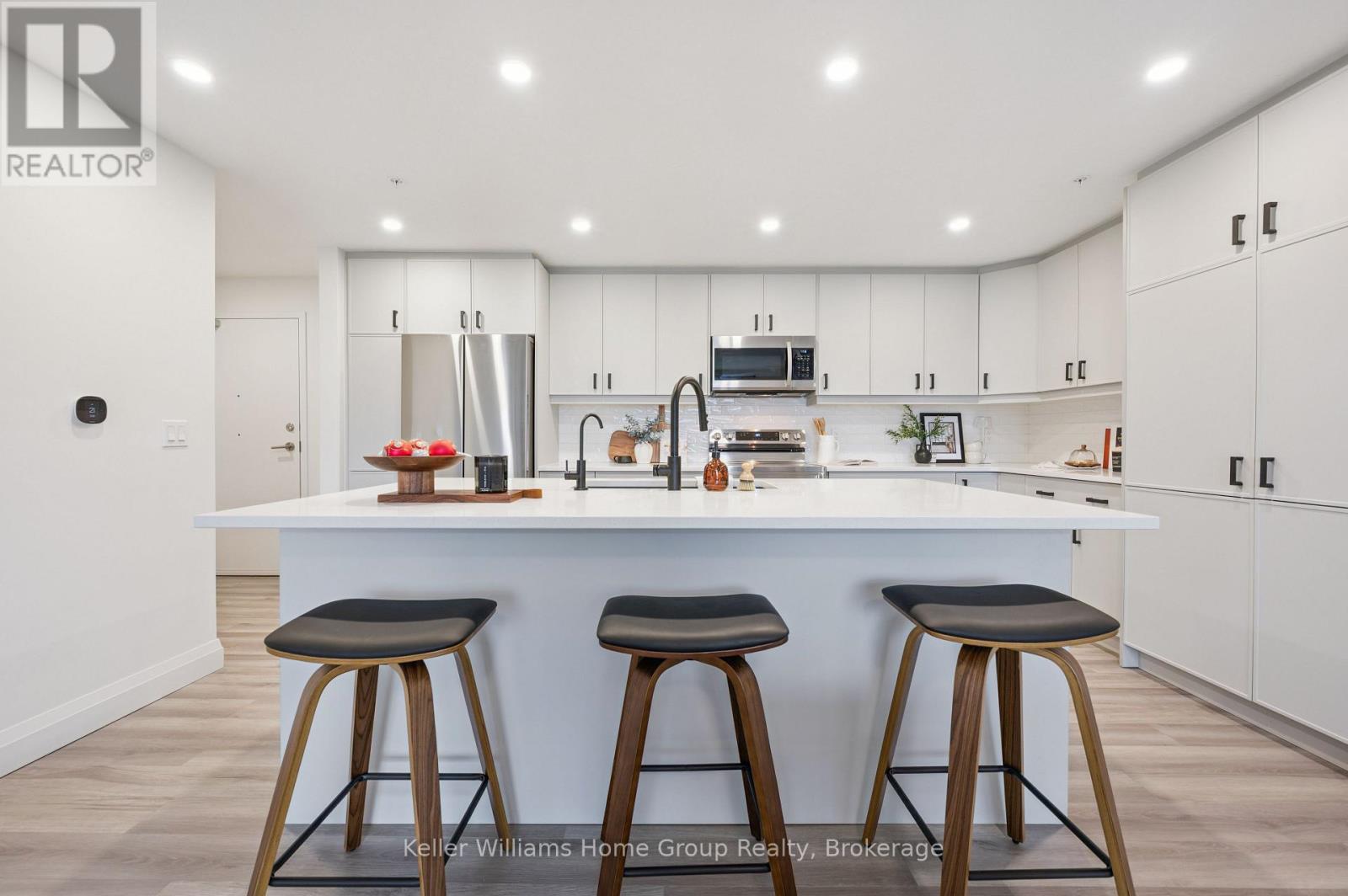 Arguably one of the nicest condo units within 99B Farley Rd., for it's top floor location with elevator access, privacy, south-west exposure, spacious floor plan and storage offerings. This 1275 square foot condo offers 2 generous bedrooms, 2 full baths and an underground parking spot with exclusive locker space. Quality built in '2024 by Keating, this condo has been designed with high quality finishes, ample parking, storage and an eco-friendly Geothermal climate control system for ease of utility costs. It's functional open-concept floor plan offers a very generous kitchen with centre island and breakfast bar, elegant granite countertops and waterfall off island, complete with stainless steel appliances. A seamless flow to the large bright living room, with built-in fireplace and beam mantle, leads out sliding doors to the large balcony overlooking the rear of building (opposite the parking). This sought after layout offers two generous bedrooms, primary bedroom with it's own full ensuite bath and walk-in closet. Second bedroom enjoys it's own use of another full bathroom. In-suite laundry room offers additional storage within unit. Various tasteful updates added throughout this unit, make it a wonderful home for luxury and comfort. The underground parking is right next to elevator and alongside has exclusive large storage unit. Located close to the new Groves Hospital and medical clinics, new public school, parks and walking trails and just a short drive to downtown Fergus and Elora for all they have to offer. You will want to make this a 'must see' and look forward to this holiday season in your new home. (id:51300)