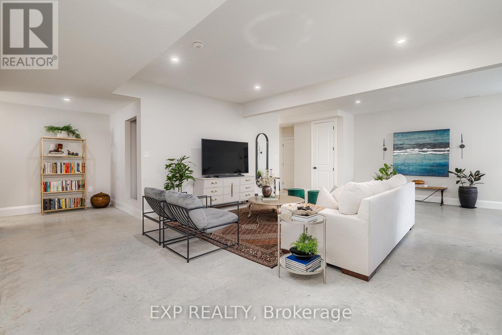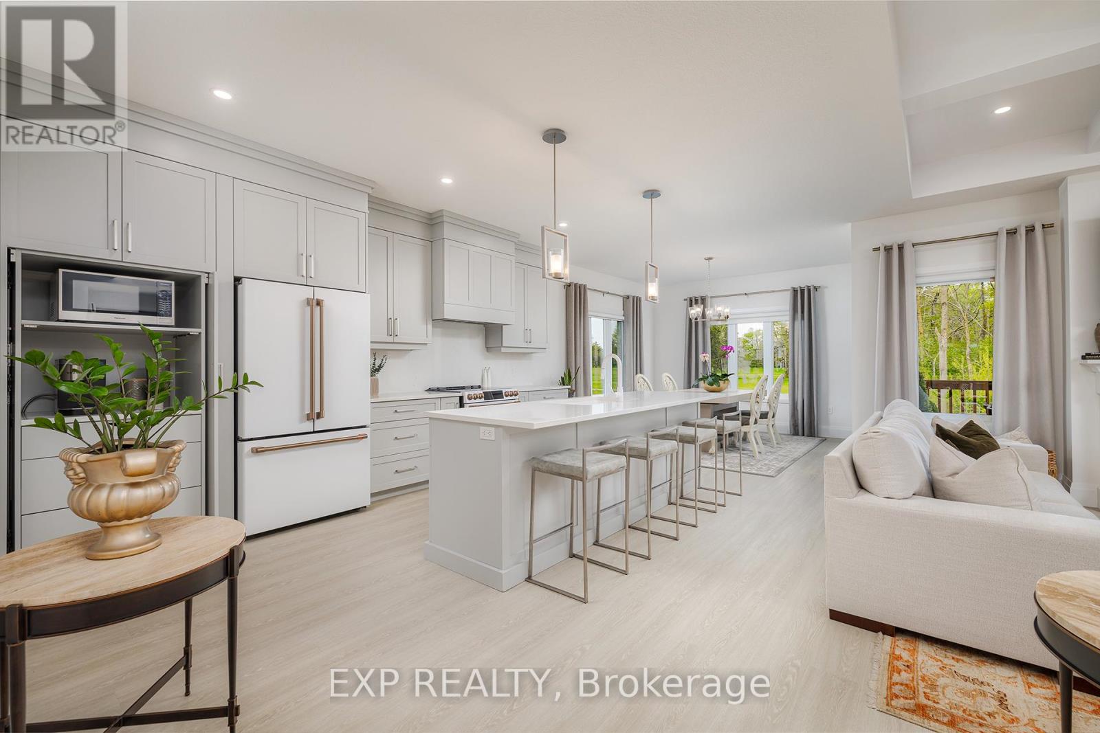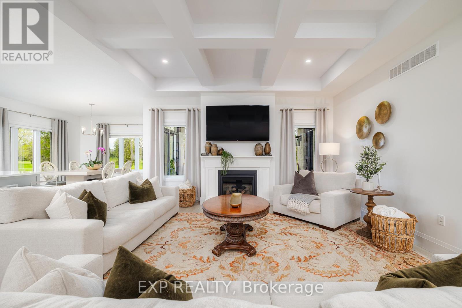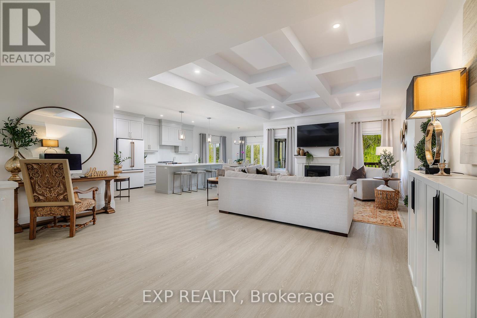 41 Gilmer Crescent is a beautifully crafted 5-bedroom, 3.5-bathroom home offering nearly 4,000 sq. ft. of thoughtfully designed living space. With two full kitchens and two ensuites, it's perfect for multigenerational living or added flexibility. The main floor features an expansive living room with 10' coffered ceilings, a beautifully appointed kitchen with quartz countertops and backsplash, a large island, a built-in coffee/appliance nook, and an adjacent dining area. Three spacious bedrooms include a luxurious primary suite with a 4-piece ensuite, walk-in closet, and access to a back porch overlooking the golf course. The oversized triple-car garage includes an in floor drain, man door and separate set of stairs leading to the basement. The fully finished walk-out basement offers incredible potential with a second full kitchen with 10' island, dining area, large rec room, two bedrooms - one with a private ensuite, and plenty of storage in the utility area. This home's additional features include 9' ceilings on both the main level and basement, complemented by 8' doors and 7.5" baseboards. There is Sonopan soundproofing panels between levels, in-floor heating in the basement (two zones), a Generac generator, upgraded appliances, and a fully fenced and landscaped yard. Backing onto the green of Listowel Golf Club's Vintage Hole 8, this home offers serene sunset views and a tranquil setting. Situated on a quiet, family-friendly crescent, this residence combines luxury, comfort, and functionality. (id:51300)