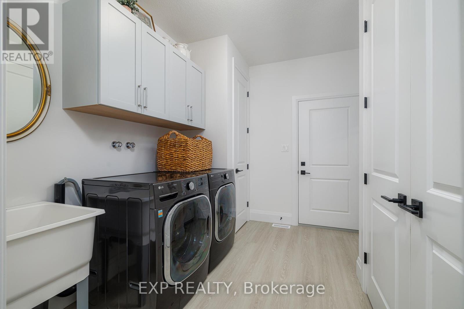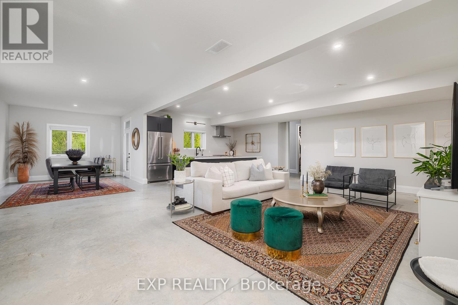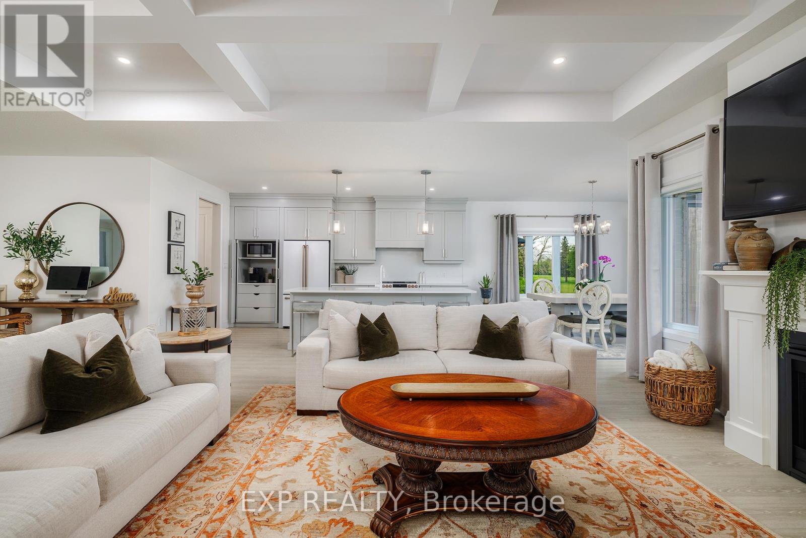 41 Gilmer Crescent is a beautifully crafted 5-bedroom, 3.5-bathroom home offering nearly 4,000 sq. ft. of thoughtfully designed living space. With two full kitchens and two ensuites, it's perfect for multigenerational living or added flexibility. The main floor features an expansive living room with 10' coffered ceilings, a beautifully appointed kitchen with quartz countertops and backsplash, a large island, a built-in coffee/appliance nook, and an adjacent dining area. Three spacious bedrooms include a luxurious primary suite with a 4-piece ensuite, walk-in closet, and access to a back porch overlooking the golf course. The oversized triple-car garage includes an in floor drain, man door and separate set of stairs leading to the basement. The fully finished walk-out basement offers incredible potential with a second full kitchen with 10' island, dining area, large rec room, two bedrooms - one with a private ensuite, and plenty of storage in the utility area. This home's additional features include 9' ceilings on both the main level and basement, complemented by 8' doors and 7.5" baseboards. There is Sonopan soundproofing panels between levels, in-floor heating in the basement (two zones), a Generac generator, upgraded appliances, and a fully fenced and landscaped yard. Backing onto the green of Listowel Golf Club's Vintage Hole 8, this home offers serene sunset views and a tranquil setting. Situated on a quiet, family-friendly crescent, this residence combines luxury, comfort, and functionality. (id:51300)