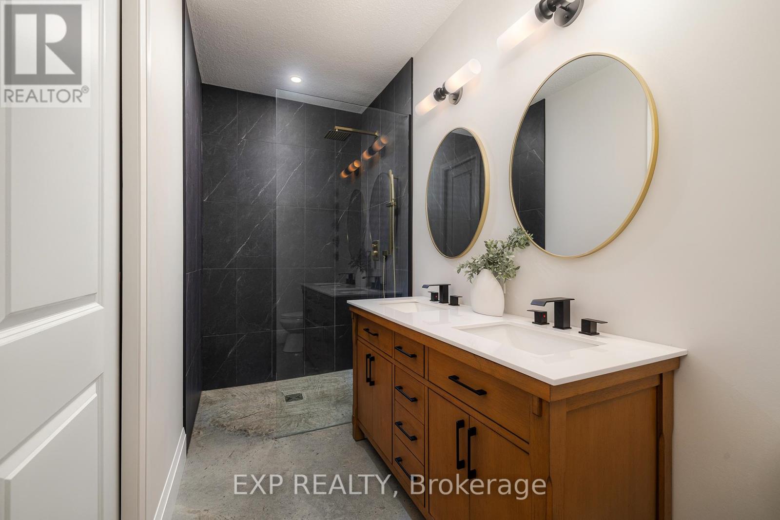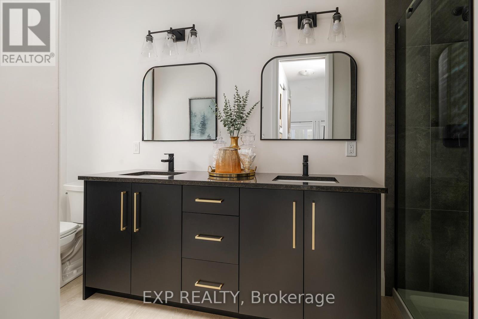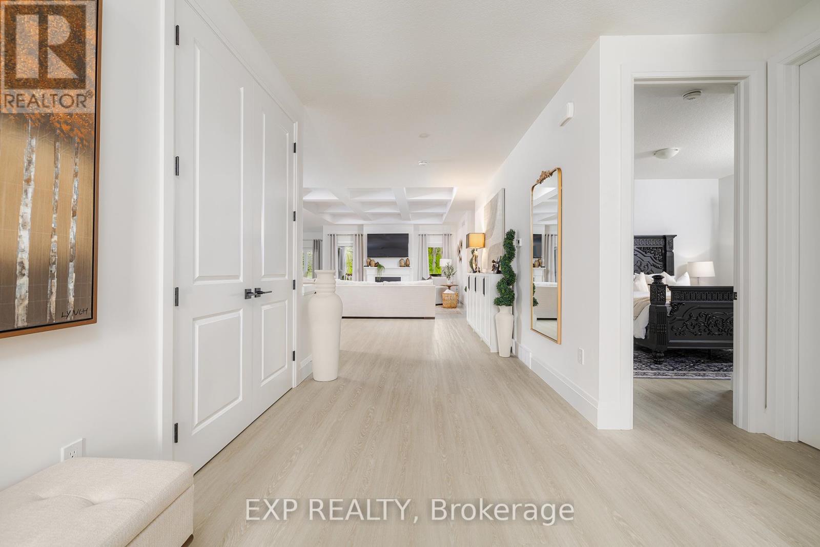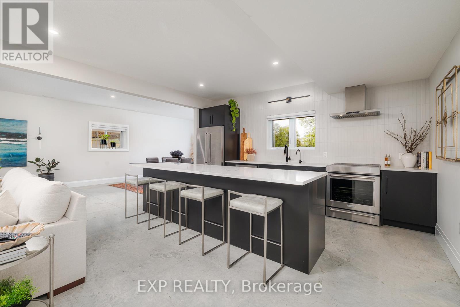 41 Gilmer Crescent is a beautifully crafted 5-bedroom, 3.5-bathroom home offering nearly 4,000 sq. ft. of thoughtfully designed living space. With two full kitchens and two ensuites, it's perfect for multigenerational living or added flexibility. The main floor features an expansive living room with 10' coffered ceilings, a beautifully appointed kitchen with quartz countertops and backsplash, a large island, a built-in coffee/appliance nook, and an adjacent dining area. Three spacious bedrooms include a luxurious primary suite with a 4-piece ensuite, walk-in closet, and access to a back porch overlooking the golf course. The oversized triple-car garage includes an in floor drain, man door and separate set of stairs leading to the basement. The fully finished walk-out basement offers incredible potential with a second full kitchen with 10' island, dining area, large rec room, two bedrooms - one with a private ensuite, and plenty of storage in the utility area. This home's additional features include 9' ceilings on both the main level and basement, complemented by 8' doors and 7.5" baseboards. There is Sonopan soundproofing panels between levels, in-floor heating in the basement (two zones), a Generac generator, upgraded appliances, and a fully fenced and landscaped yard. Backing onto the green of Listowel Golf Club's Vintage Hole 8, this home offers serene sunset views and a tranquil setting. Situated on a quiet, family-friendly crescent, this residence combines luxury, comfort, and functionality. (id:51300)