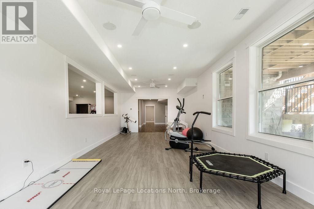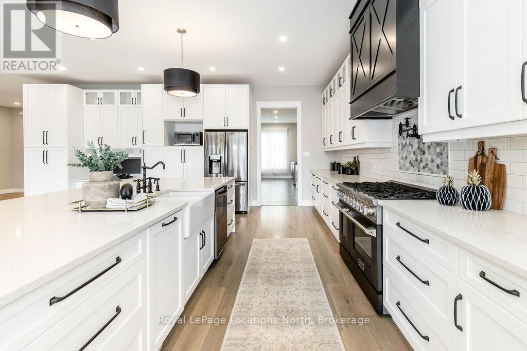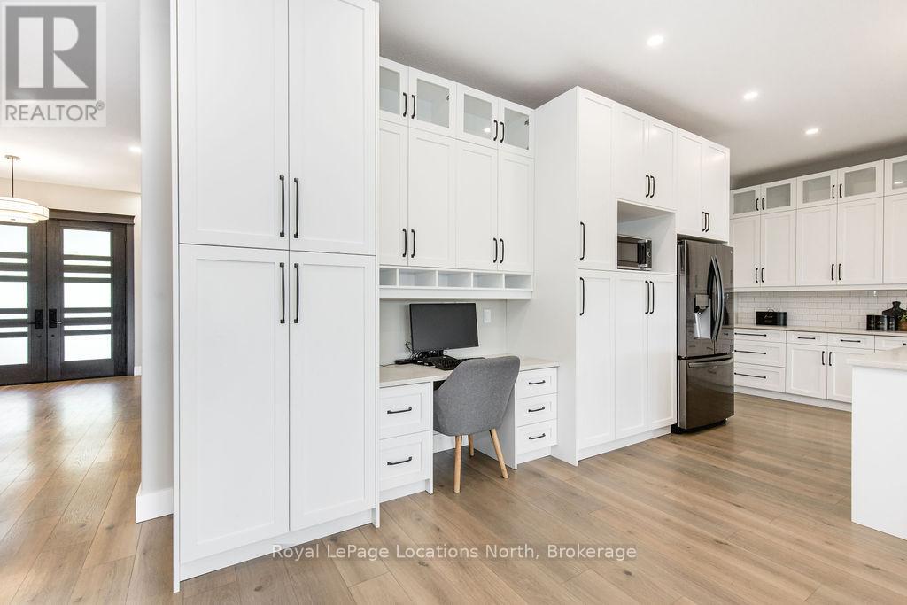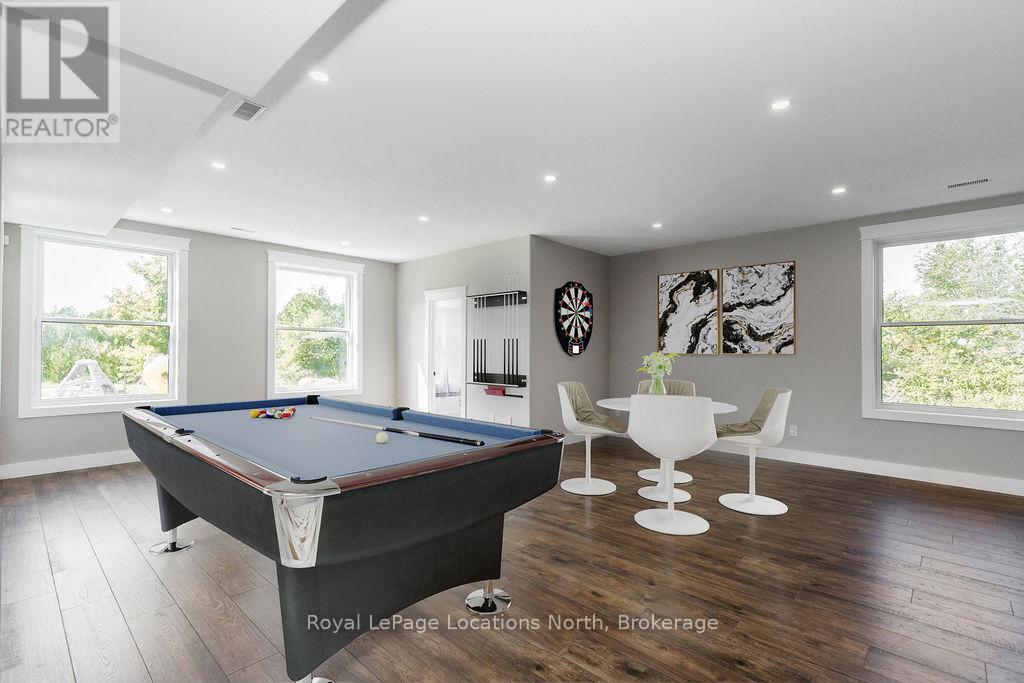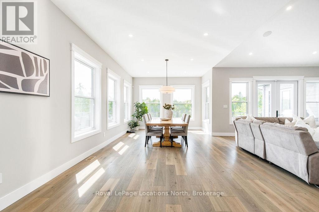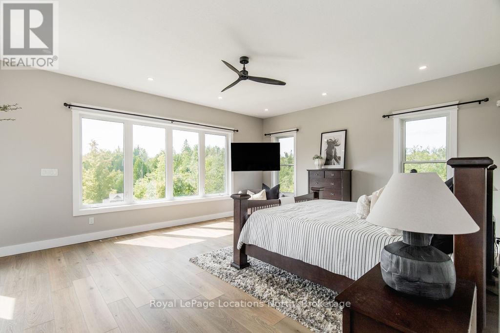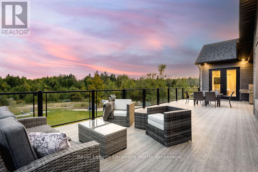Welcome to a truly rare private estate set on 92 acres of pristine countryside with kilometres of private trails, mature forest, and an operational sugar shack built from on-site harvested timber with 300 maple taps. This 8,000+ total sq ft custom-built luxury home offers potential for 7-8 bedrooms plus an in-law suite, ideal for a multi-generational family compound, luxury retreat, or estate property.Designed for comfort and efficiency, the home features in-floor radiant heating throughout, two furnaces, and an oversized 3-car garage with inside entry to a spacious mudroom, mezzanine storage, and workshop area. The grand open-concept living space showcases vaulted ceilings, wide-plank flooring, pot lights, and large custom windows overlooking the property.The custom kitchen features a commercial-grade 46" Kucht gas range with 8 burners, oversized island, quartz countertops, custom hood, designer pendant lighting, butler's pantry, large laundry/pantry room, and built-in desk workspace. The home offers 3+2 bedrooms and 5 full plus 2 half bathrooms, all finished with quartz counters, custom vanities, tile surrounds, and designer lighting. A formal office with French doors supports remote work with strong high-speed internet.The primary suite includes its own heating zone, walk-in closet, and spa-inspired ensuite with floating tub, glass shower, and double vanity. The lower level offers 9-ft ceilings, a bar with folding window for indoor-outdoor entertaining, double-sided stone fireplace, wired theatre room, games room, gym with walkout, and a separate garage entrance with future locker or mudroom potential. Integrated sound system throughout the home, deck, and gym.Outside, enjoy a covered front porch with glass railings, armour stone steps, gardens, vegetable beds, and a cleared area for campouts or future use. The 3,000 sq ft heated shop features radiant floors, 16-ft ceilings, its own propane tank, and oversized garage doors. (id:51300)