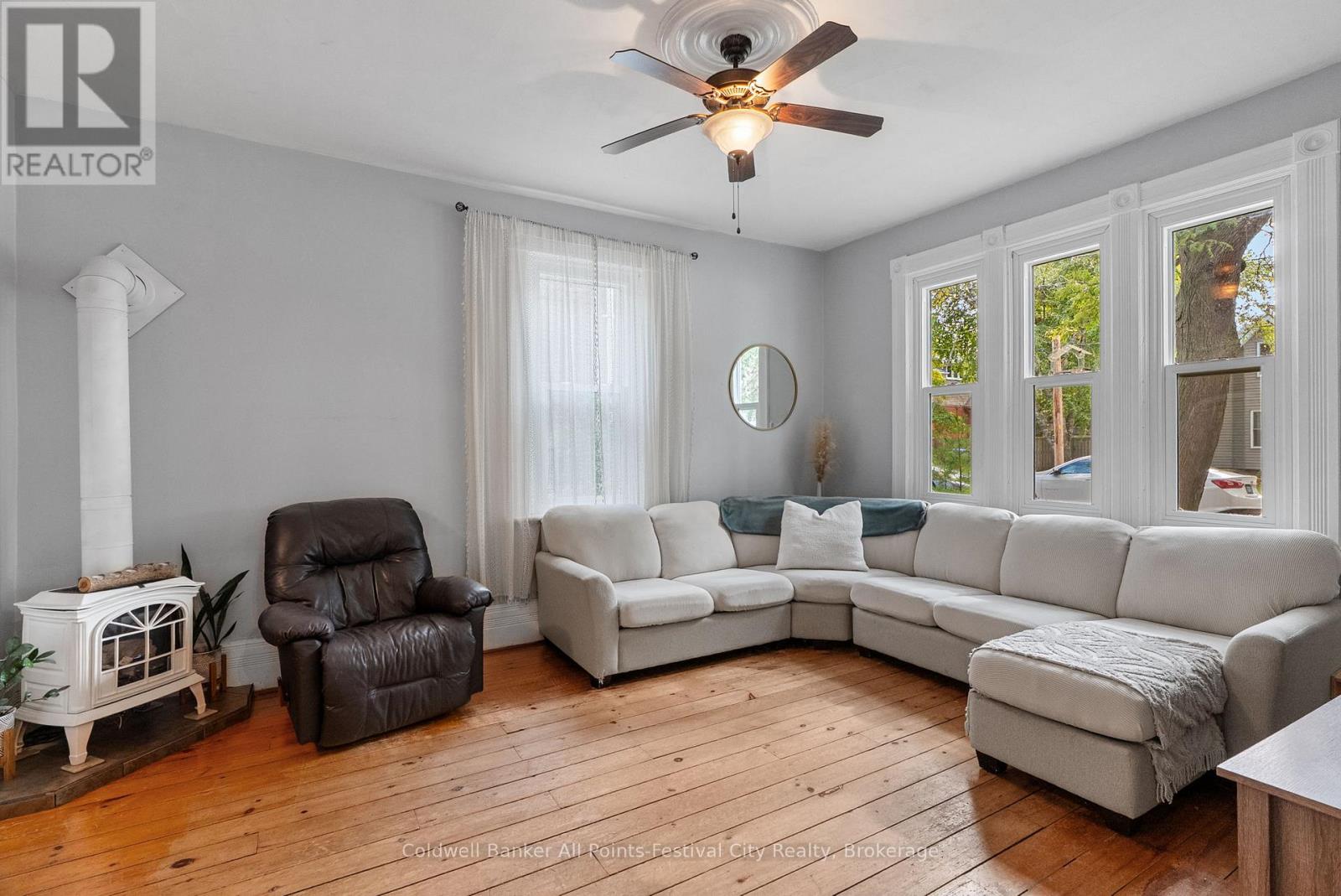 Discover this inviting 3 bedroom home ideally located a short walk to both the stunning shores of Lake Huron and the vibrant downtown core of Goderich. Perfect for first-time buyers, this property blends warmth, character and convenience. Step inside to find beautiful pine plank floors, high ceilings, and a bright welcoming layout that feels like home the moment you walk in. Enjoy your morning coffee or evening unwinding in the 3 season front porch, offering the perfect space to relax and watch the world go by. A detached garage built in 2022, fully insulated and heated, provides excellent space for hobbies, storage, or a year around workshop or just a garage. Don't miss this opportunity to own a home with timeless charm in one of Ontario's most desirable lakefront communities. (id:51300)