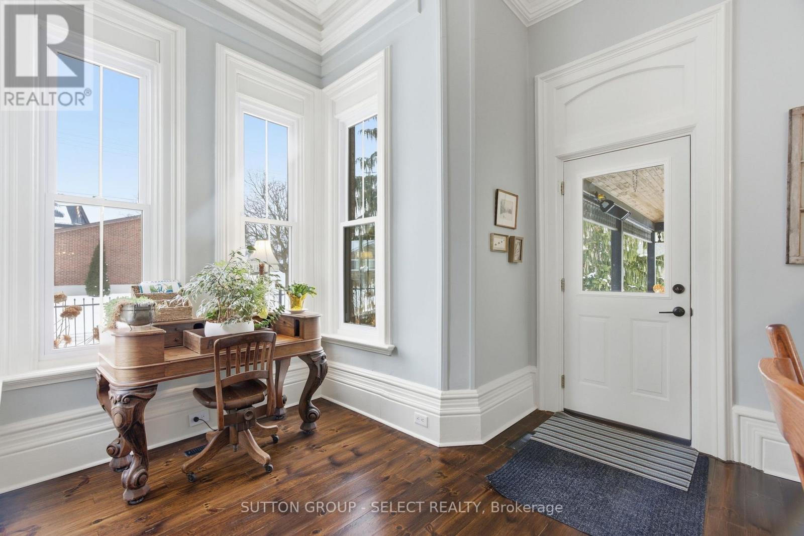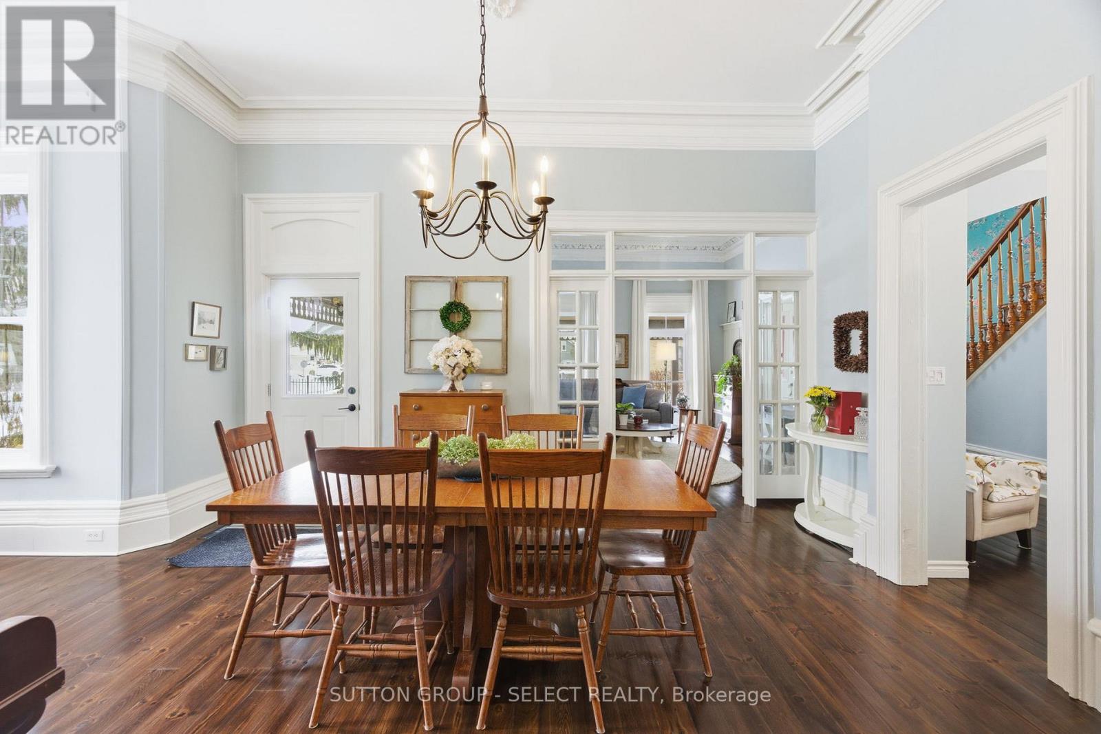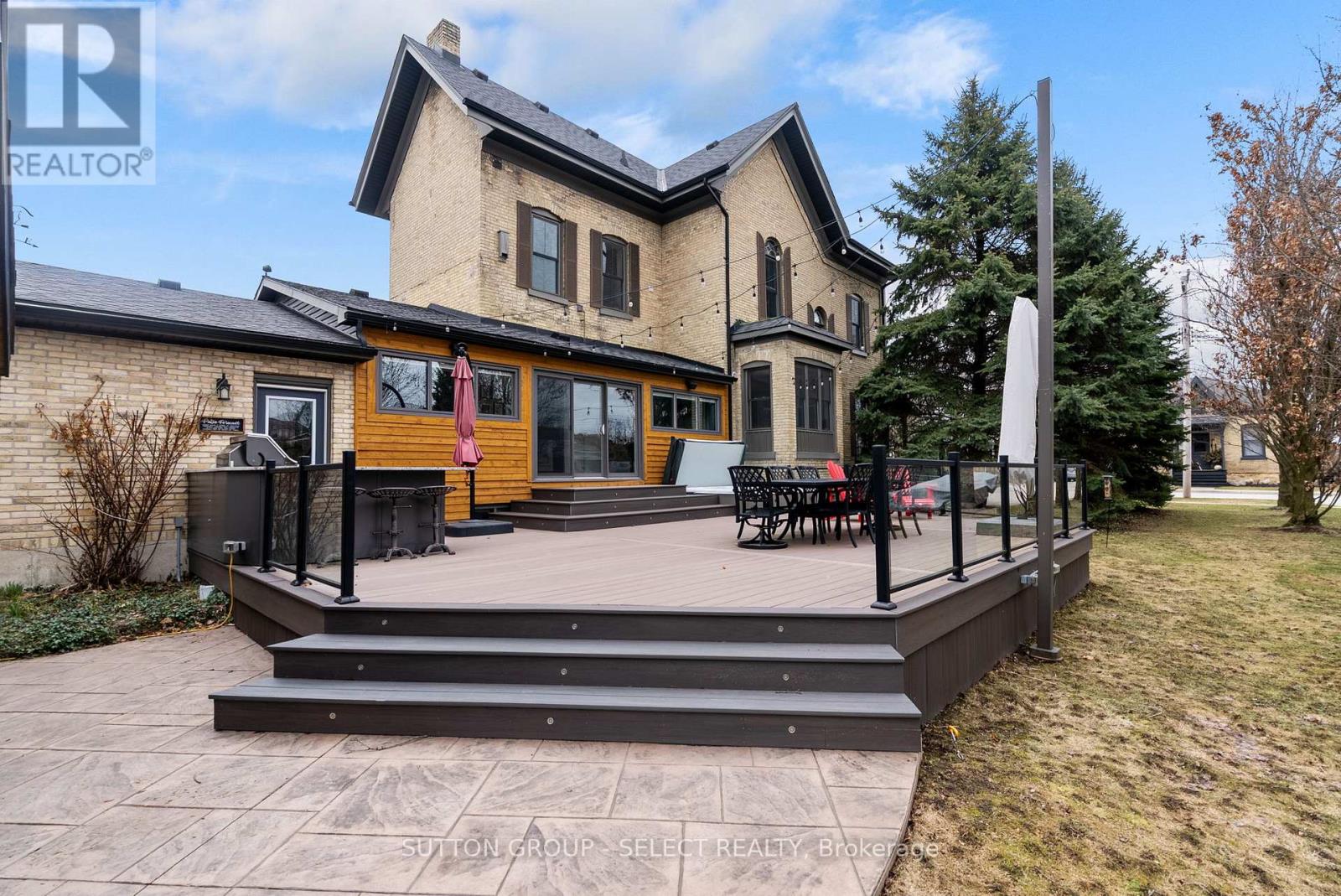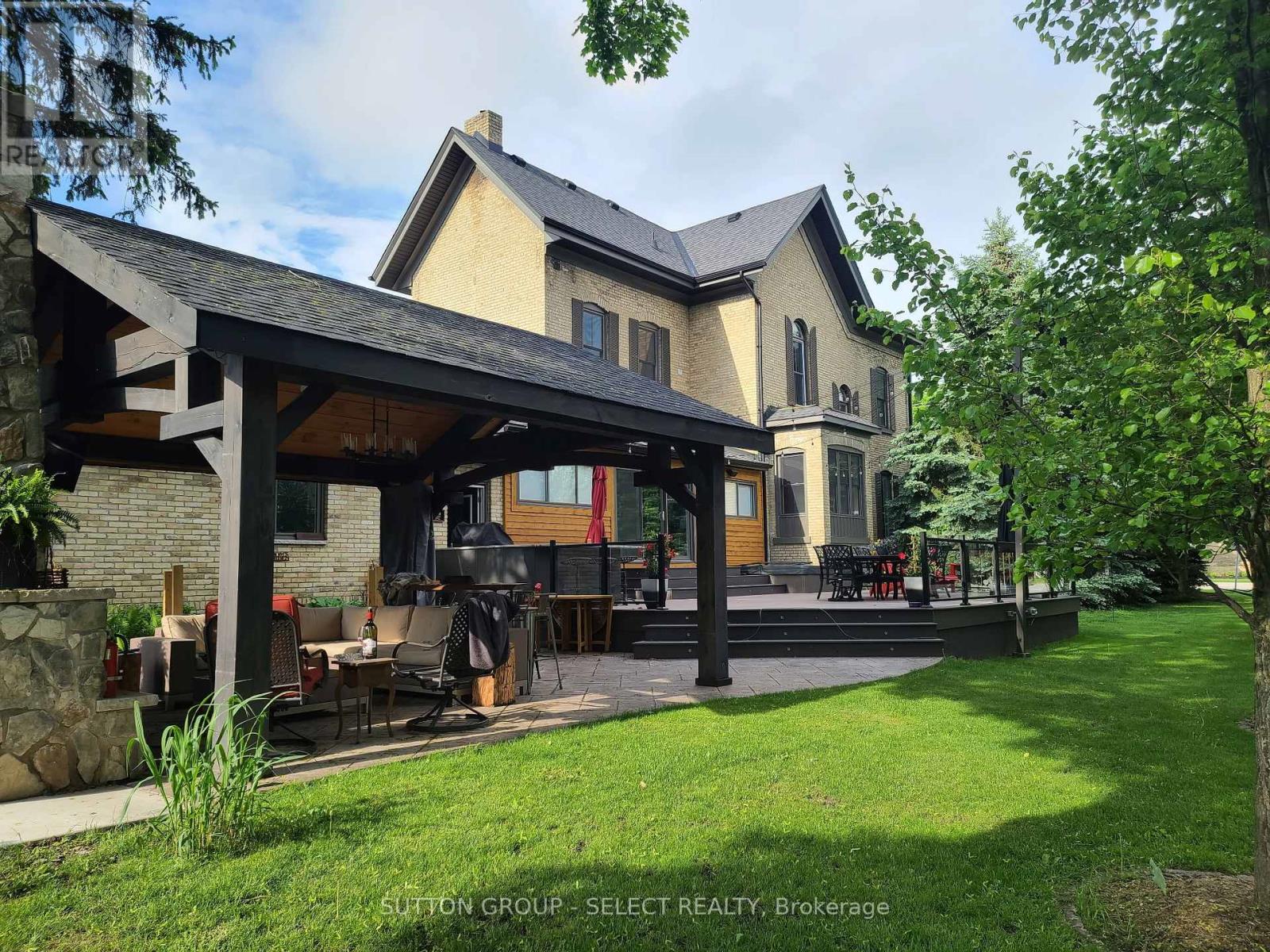 Fall in love with a truly special piece of Exeter's history at The Benjamin O'Neil House-a rare, beautifully restored late 19th century landmark where timeless character meets refined modern living. From the moment you step through the original 8.5 foot front doors, you're wrapped in warmth, craftsmanship, and undeniable presence. Soaring ceilings adorned with ornate medallions, rich red pine floors, and exquisite heritage trim tell a story of elegance and care. Sun-filled living and dining spaces invite both quiet mornings and memorable gatherings, while the professionally updated kitchen blends style and efficiency-perfect for everyday living and entertaining alike. Upstairs, three inviting bedrooms include a peaceful primary retreat with its own sitting area, offering a private escape at day's end. The spa inspired bathroom with heated floor, classic clawfoot tub, and seven foot glass shower adds a touch of indulgence, while upper level laundry brings modern convenience. The finished lower level is full of surprises: a spacious guest room, a recreation area with 85 inch screen for movie nights, an office with heated floor, and a hidden speakeasy style wine-making room-an unexpected delight for hosting. Outdoors, the experience continues with a private, resort-like setting featuring covered porches, a stunning 16 foot by 16 foot pavilion with a stone fireplace, hot tub, outdoor kitchen, and an expansive Wolf high density deck-designed for unforgettable four season entertaining. Just 40 minutes from Stratford or London, this property offers the perfect blend of small-town charm and convenient access to larger cities. More than a home, it's a lifestyle, a legacy, and a rare opportunity to own one of Exeter's true landmarks. (id:51300)