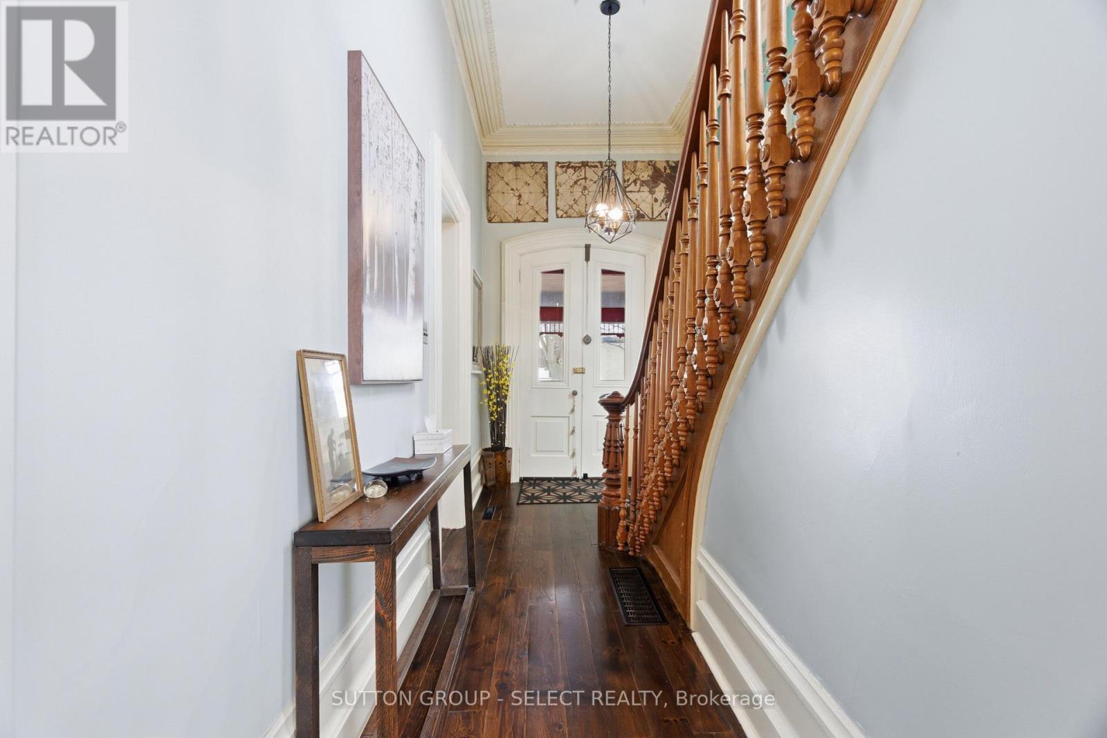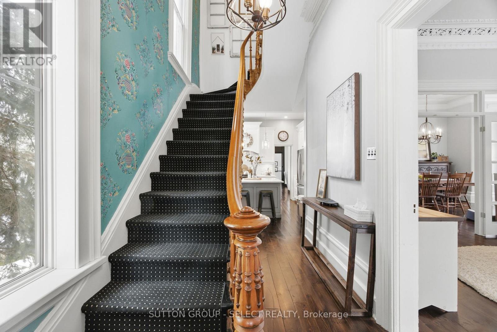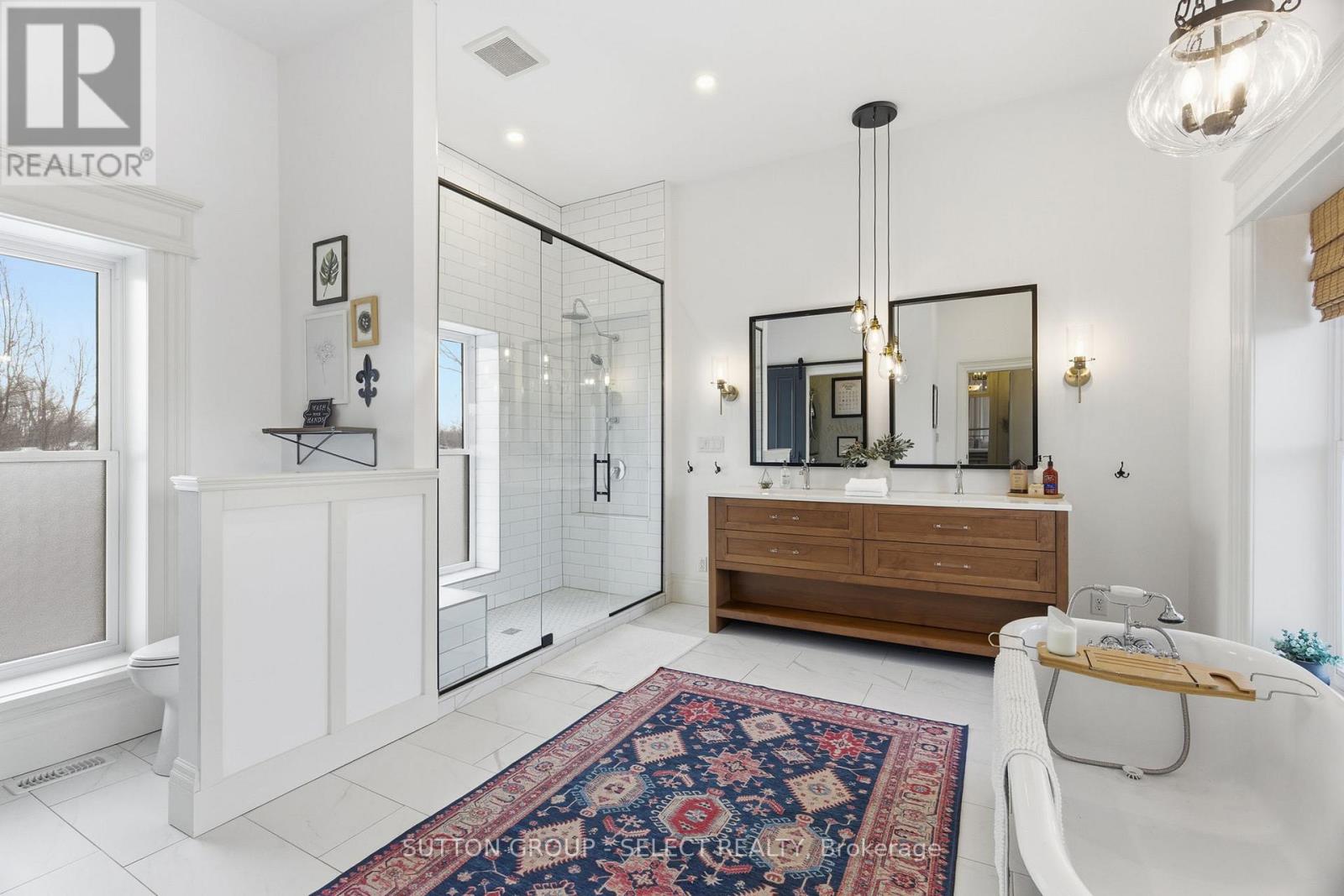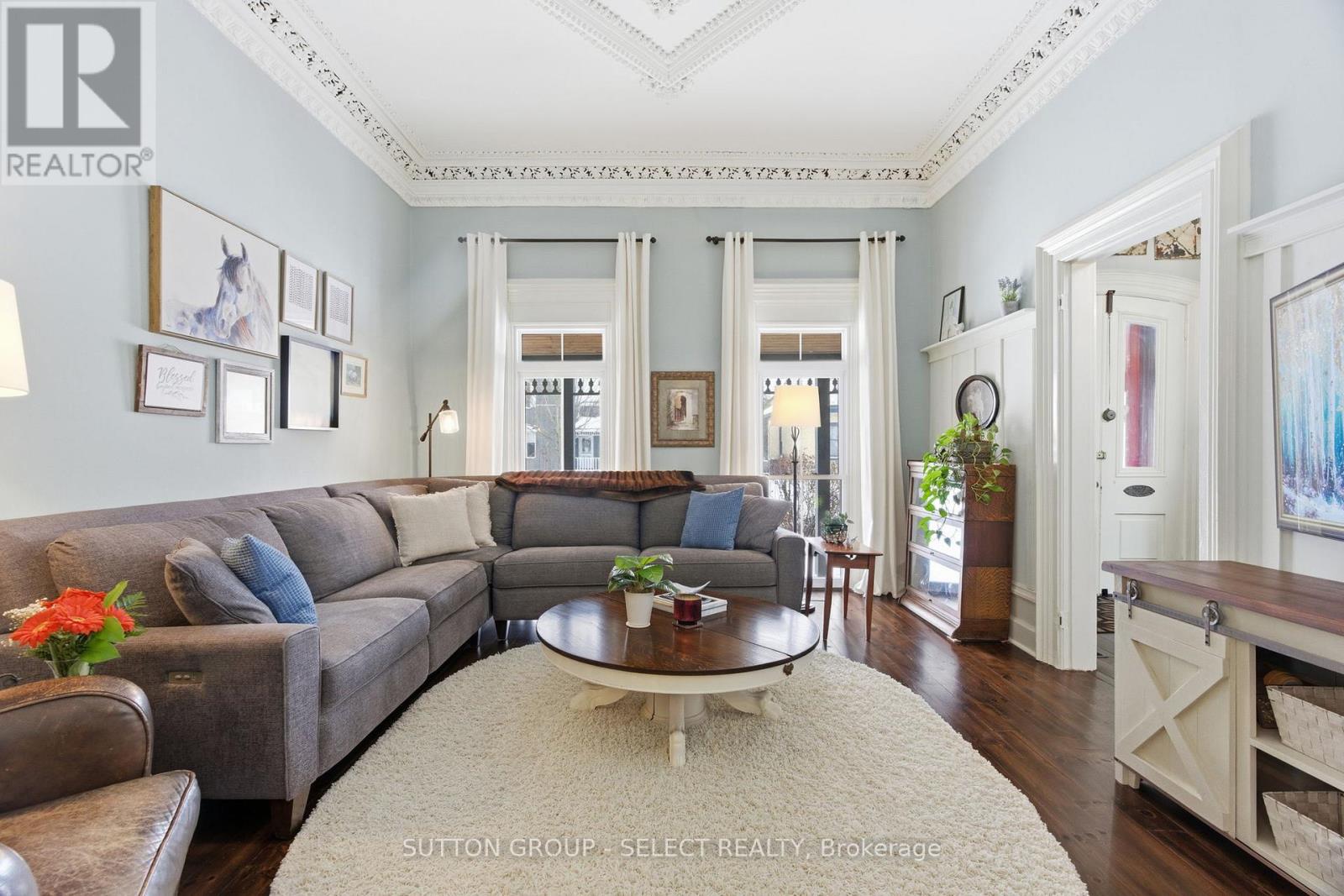 Fall in love with a truly special piece of Exeter's history at The Benjamin O'Neil House-a rare, beautifully restored late 19th century landmark where timeless character meets refined modern living. From the moment you step through the original 8.5 foot front doors, you're wrapped in warmth, craftsmanship, and undeniable presence. Soaring ceilings adorned with ornate medallions, rich red pine floors, and exquisite heritage trim tell a story of elegance and care. Sun-filled living and dining spaces invite both quiet mornings and memorable gatherings, while the professionally updated kitchen blends style and efficiency-perfect for everyday living and entertaining alike. Upstairs, three inviting bedrooms include a peaceful primary retreat with its own sitting area, offering a private escape at day's end. The spa inspired bathroom with heated floor, classic clawfoot tub, and seven foot glass shower adds a touch of indulgence, while upper level laundry brings modern convenience. The finished lower level is full of surprises: a spacious guest room, a recreation area with 85 inch screen for movie nights, an office with heated floor, and a hidden speakeasy style wine-making room-an unexpected delight for hosting. Outdoors, the experience continues with a private, resort-like setting featuring covered porches, a stunning 16 foot by 16 foot pavilion with a stone fireplace, hot tub, outdoor kitchen, and an expansive Wolf high density deck-designed for unforgettable four season entertaining. Just 40 minutes from Stratford or London, this property offers the perfect blend of small-town charm and convenient access to larger cities. More than a home, it's a lifestyle, a legacy, and a rare opportunity to own one of Exeter's true landmarks. (id:51300)