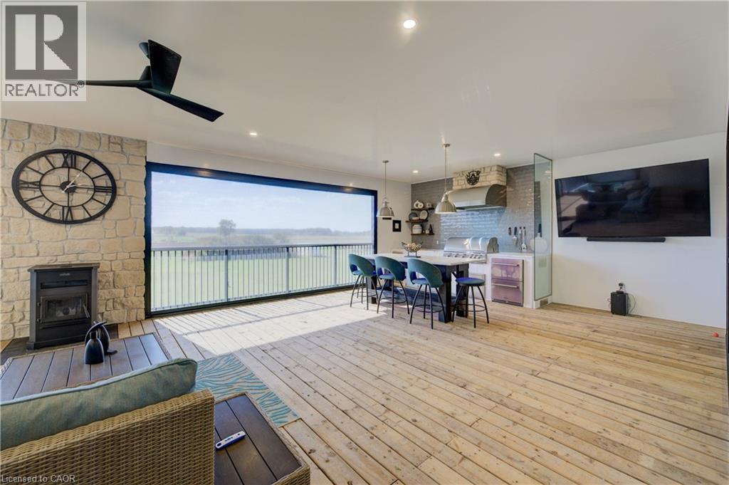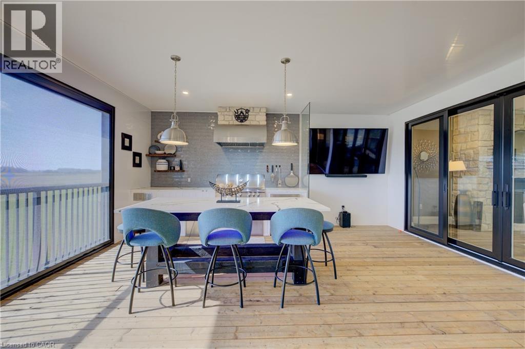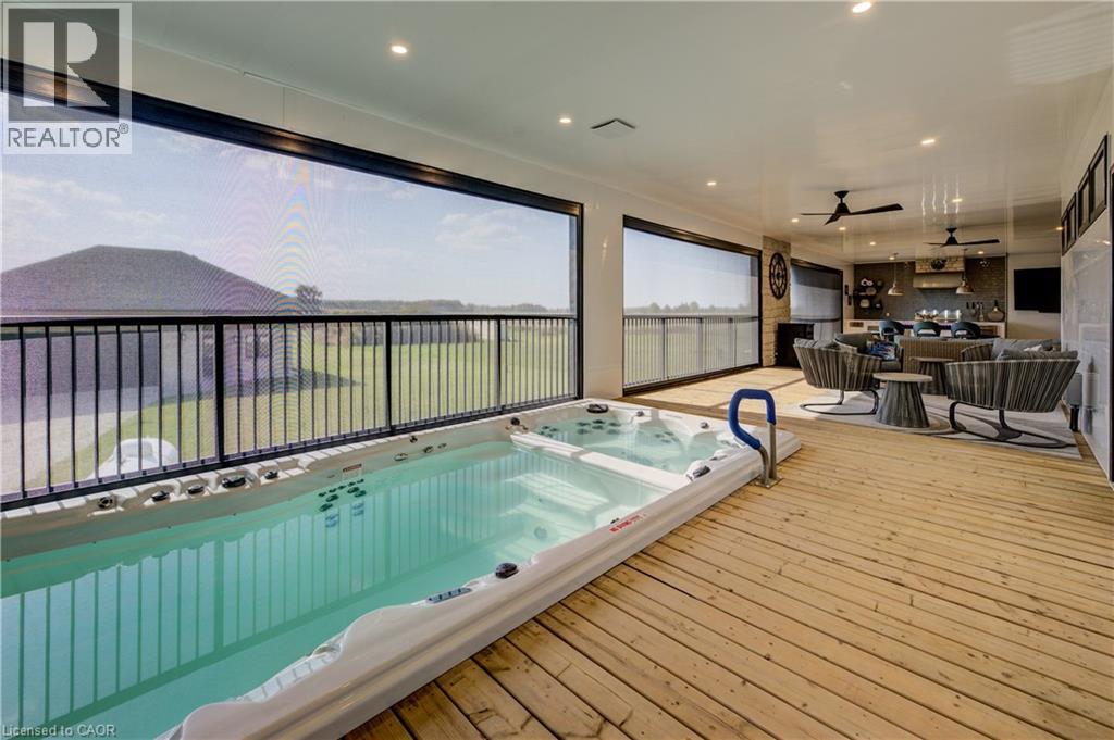 Prepare to be captivated by this extraordinary custom home at 43711 Adelaide Street, where modern design meets refined comfort in every detail. The moment you step inside, you’re greeted by an expansive open-concept living space bathed in natural light, highlighted by soaring ceilings, wide-plank flooring, and sleek contemporary finishes. The designer kitchen is a true centerpiece—offering full-height cabinetry, quartz surfaces, a massive island for gathering, and professional-grade appliances seamlessly integrated into a clean, timeless aesthetic. The adjoining dining area and great room create the ultimate entertaining space, framed by oversized patio doors that open to a show stopping screened-in porch. Here, indoor and outdoor living blend beautifully with a full outdoor kitchen, lounge seating, dual ceiling fans, and a luxurious swim spa overlooking peaceful country views—an all-season retreat like no other. The primary suite is a private haven with a spa-inspired ensuite and His & Hers Walk-In Closets – Designed for Luxury and Function, while additional bedrooms and baths combine style and function for family or guests. The finished lower level adds even more versatility, featuring a bright family room, secondary kitchen, and a cozy sunroom that invites you to relax and recharge. Every inch of this home showcases quality craftsmanship and thoughtful design. Outside, a detached 1,100 sq. ft. garage/workshop offers extra room for hobbies or storage and is set up all the infrastructure you would need—completing a property that truly redefines what country luxury can be. Peace of Mind, Rain or Shine – 24kW Whole-House Generator Included! Never worry about power outages with 24kW whole-house generator. Seamlessly integrated into the home’s electrical system, this powerful unit automatically activates within seconds of an outage, keeping the entire household running—from kitchen appliances to Wi-Fi to your Swim Spa! 96 sprinkler heads for in ground irrigation system (id:51300)
