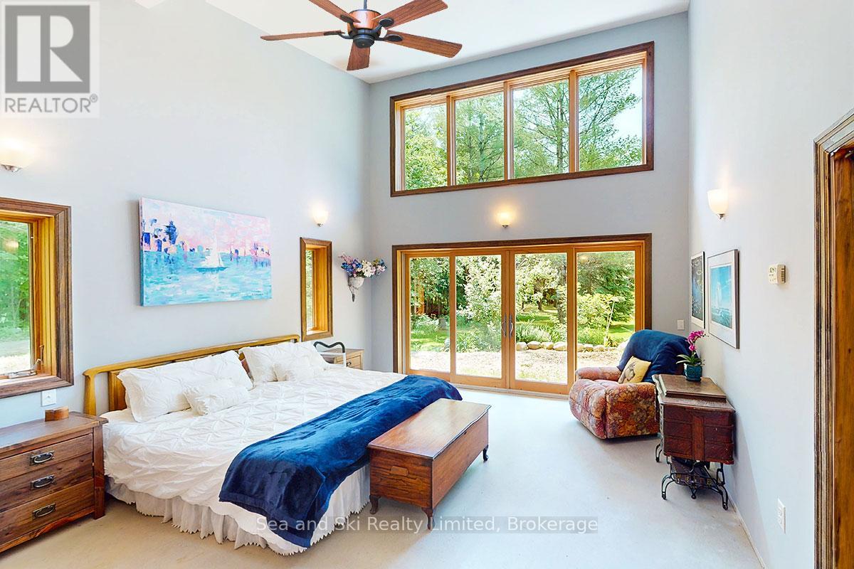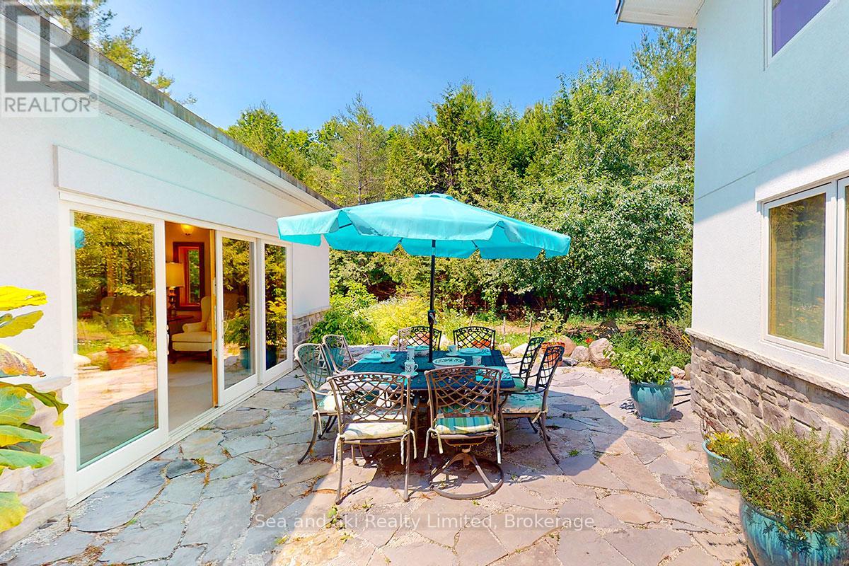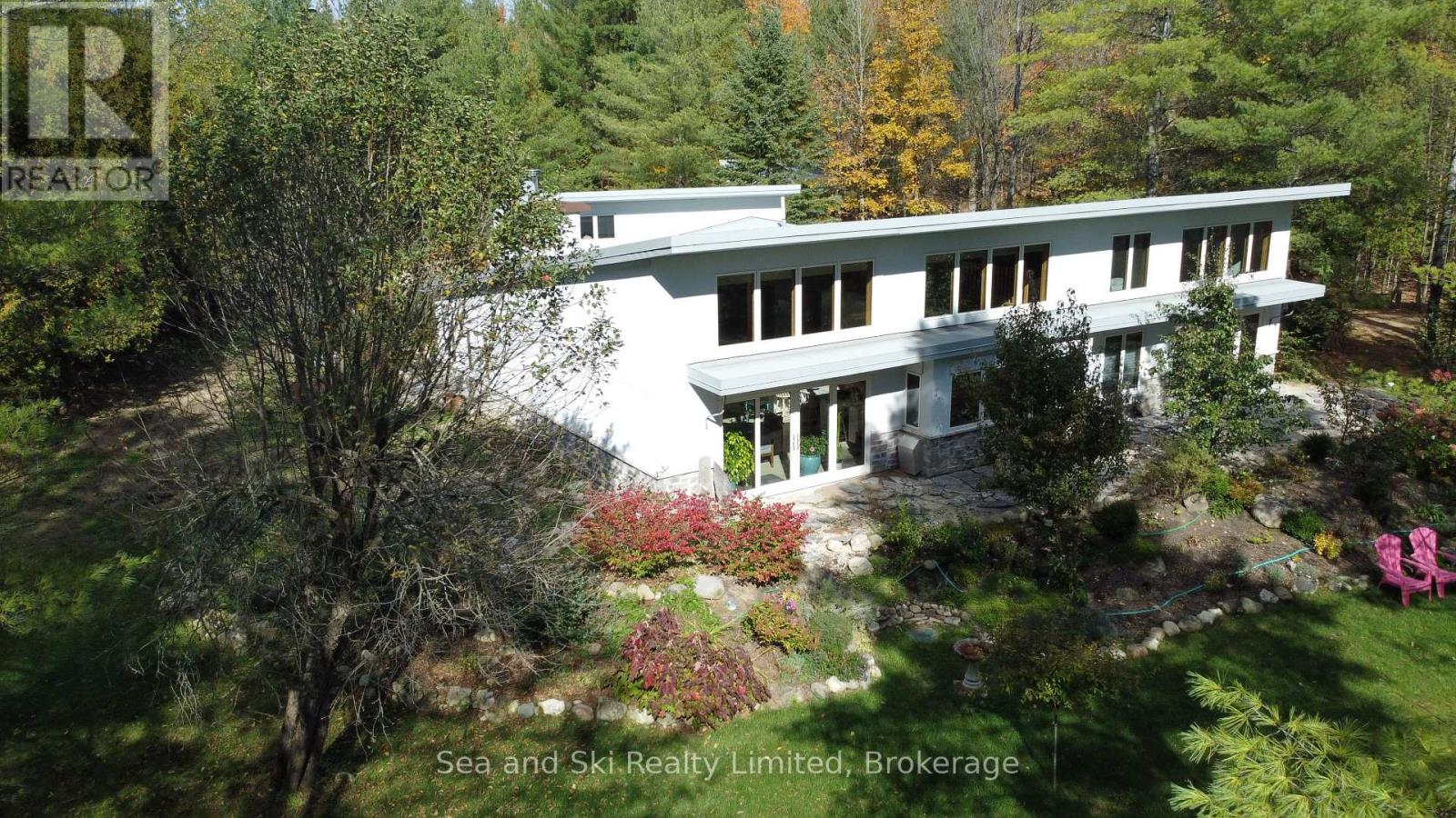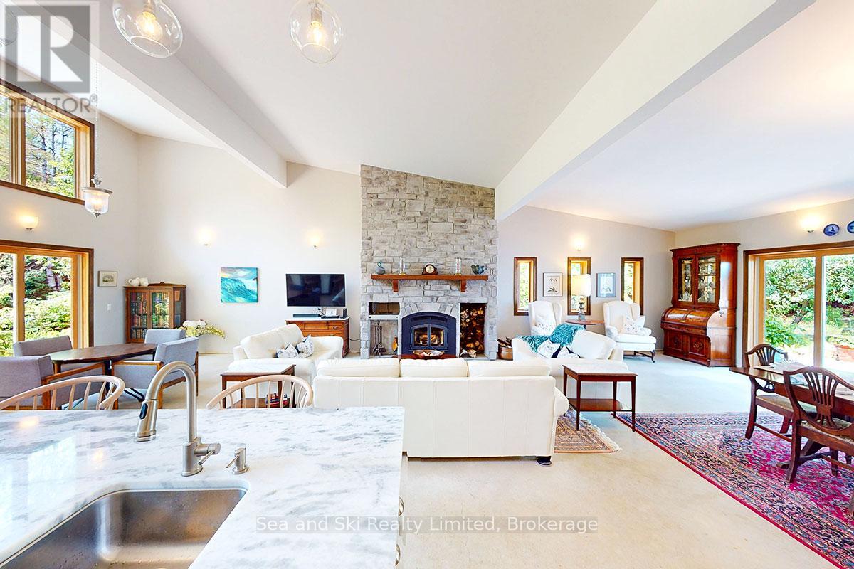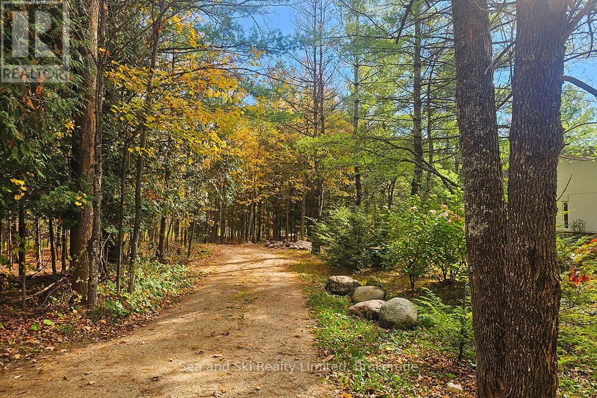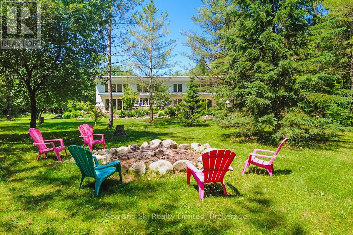 Modern Country Home on 4+ Acres. Contemporary Living Meets Natural Beauty! Discover the perfect blend of modern design and peaceful country living in this stunning custom-built Contemporary Style home, set on just over 4 private wooded acres. Thoughtfully designed with clean contemporary lines, soaring ceilings, and a wall of south-facing windows, this open-concept main floor living home captures natural light and passive solar heat throughout the winter months. The spacious primary suite offers a luxurious escape with a large walk-in closet and a spa-like walk-in shower. The sleek kitchen features Granite countertops and a stylish, functional layout ideal for entertaining or everyday living. In-floor hot air heating ensures year-round comfort and peace of mind. The oversized 2-car garage is built for more than just vehicles, boasting heated floors and a spacious storage loft, perfect for hobbyists or additional gear. Outside, enjoy a large fire pit, a private, well-treed lot with winding trails, a large garden/storage shed, and landscaping materials including multiple skids of flag stone ready for your finishing touches. Located just outside of Markdale, 15 minutes to the Beaver Valley, 40 minutes from Blue Mountain, 2 hours from the GTA, and minutes from hiking, cross-country skiing, ATV trails, and dozens of lakes and rivers for fishing and paddling, this is the ultimate four-season escape package. (id:51300)