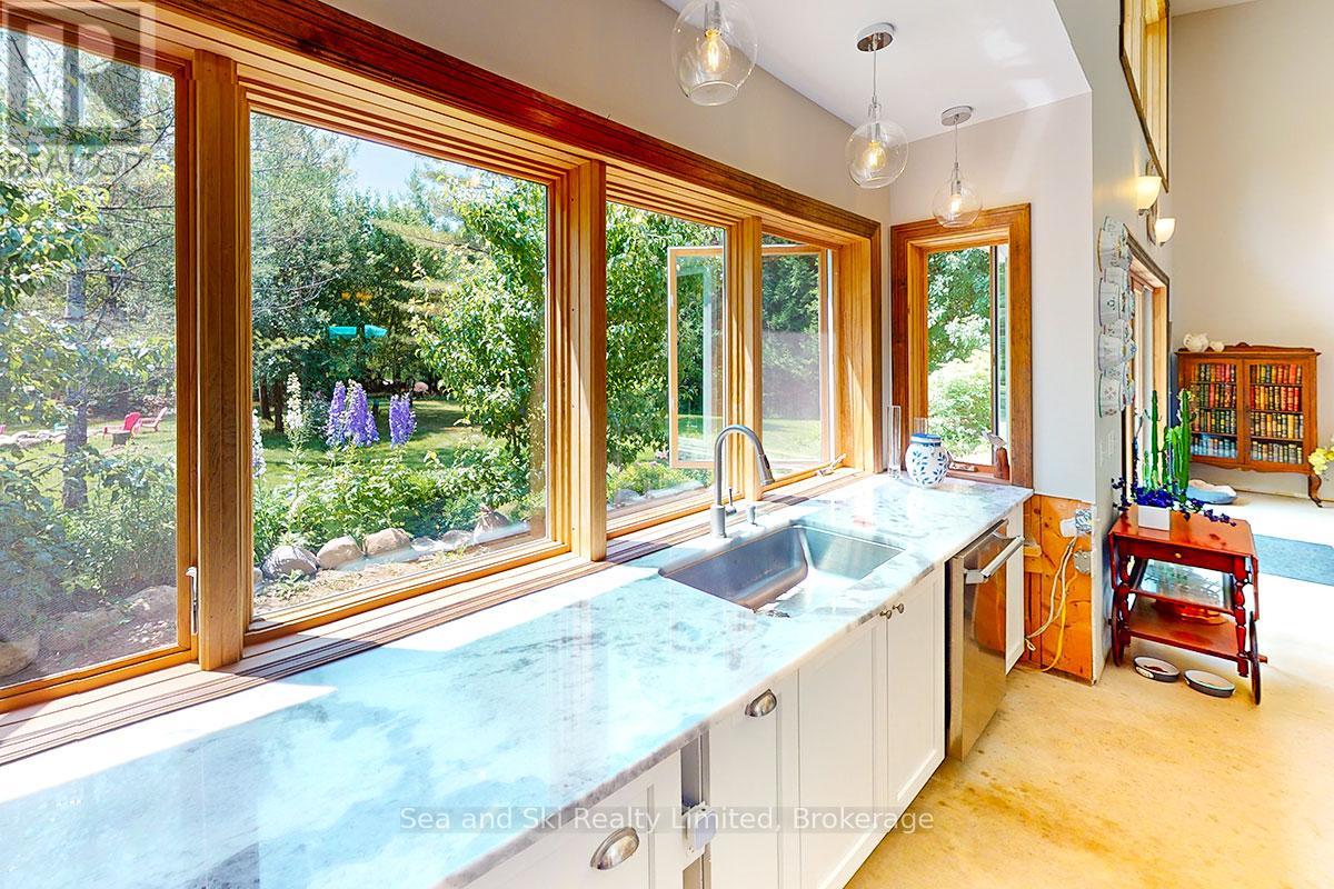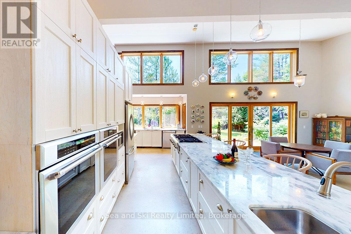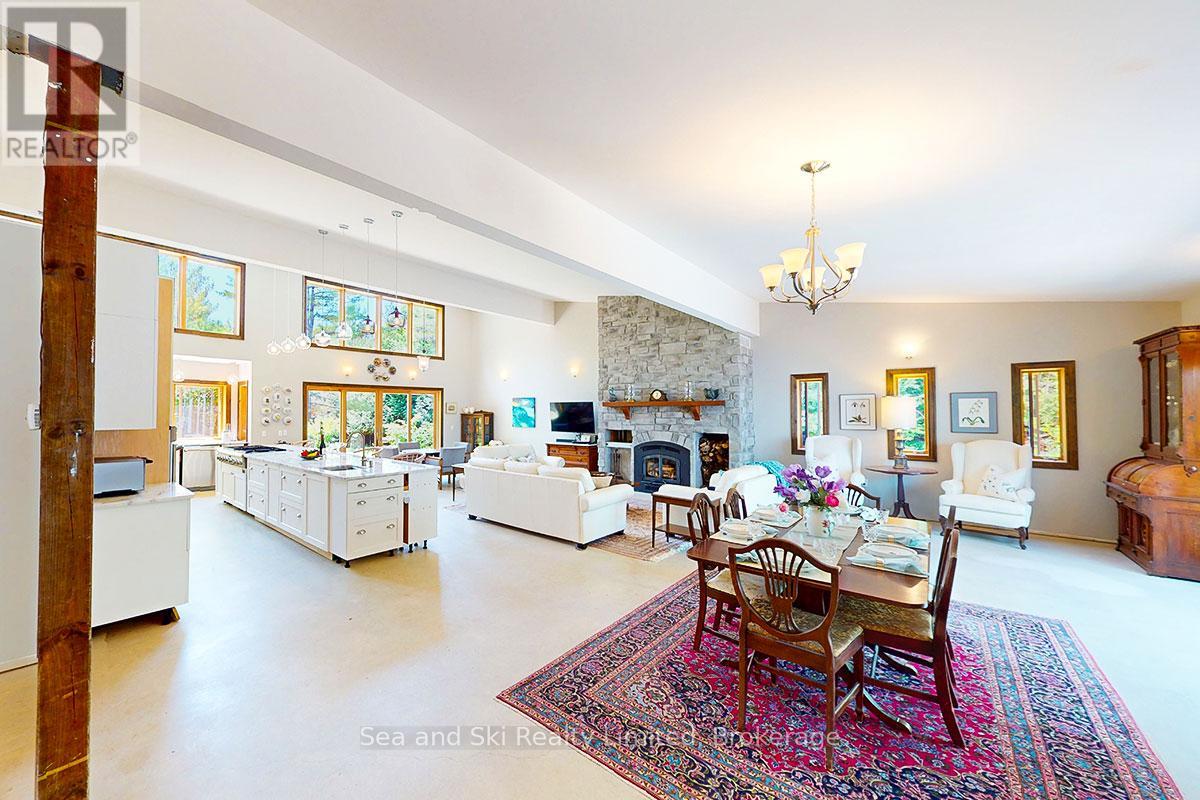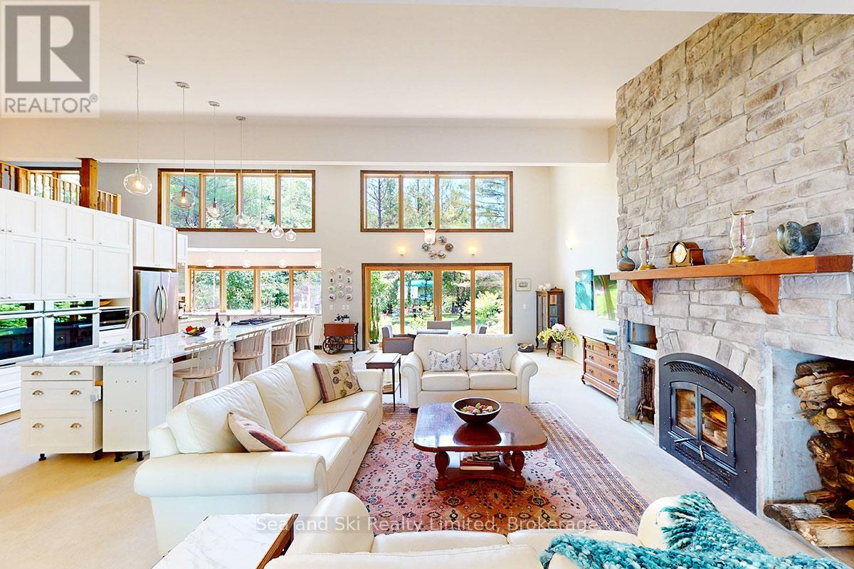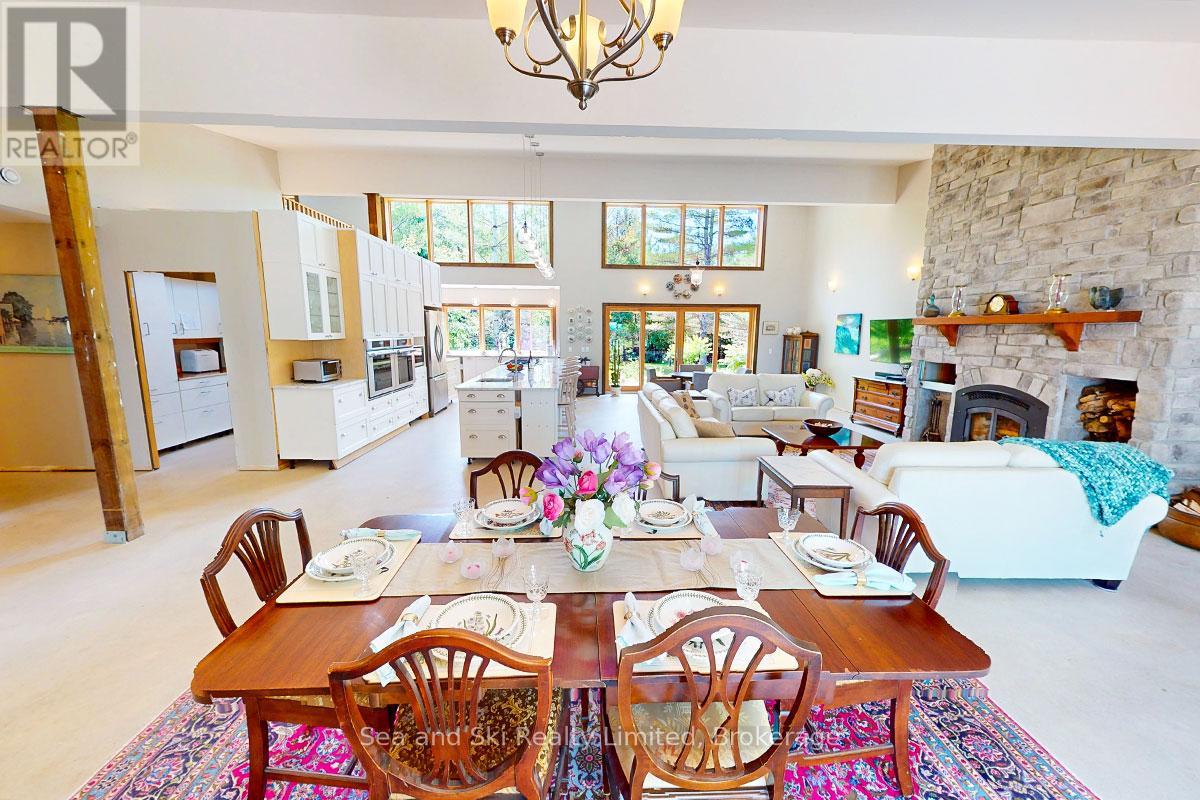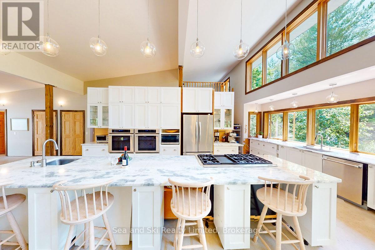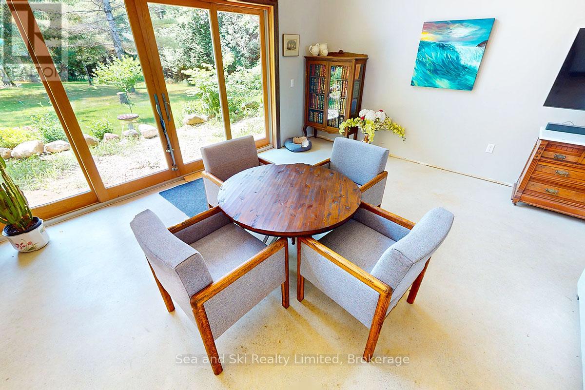 Modern Country Home on 4+ Acres. Contemporary Living Meets Natural Beauty! Discover the perfect blend of modern design and peaceful country living in this stunning custom-built Contemporary Style home, set on just over 4 private wooded acres. Thoughtfully designed with clean contemporary lines, soaring ceilings, and a wall of south-facing windows, this open-concept main floor living home captures natural light and passive solar heat throughout the winter months. The spacious primary suite offers a luxurious escape with a large walk-in closet and a spa-like walk-in shower. The sleek kitchen features Granite countertops and a stylish, functional layout ideal for entertaining or everyday living. In-floor hot air heating ensures year-round comfort and peace of mind. The oversized 2-car garage is built for more than just vehicles, boasting heated floors and a spacious storage loft, perfect for hobbyists or additional gear. Outside, enjoy a large fire pit, a private, well-treed lot with winding trails, a large garden/storage shed, and landscaping materials including multiple skids of flag stone ready for your finishing touches. Located just outside of Markdale, 15 minutes to the Beaver Valley, 40 minutes from Blue Mountain, 2 hours from the GTA, and minutes from hiking, cross-country skiing, ATV trails, and dozens of lakes and rivers for fishing and paddling, this is the ultimate four-season escape package. (id:51300)