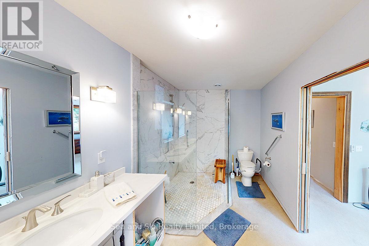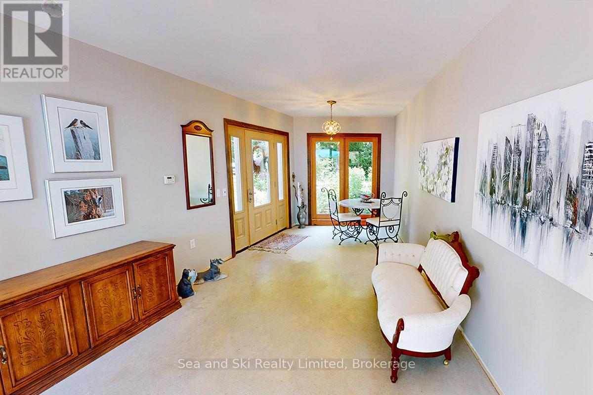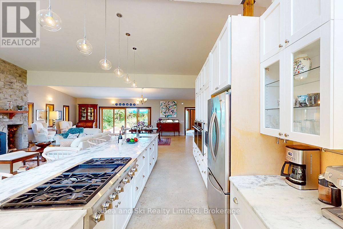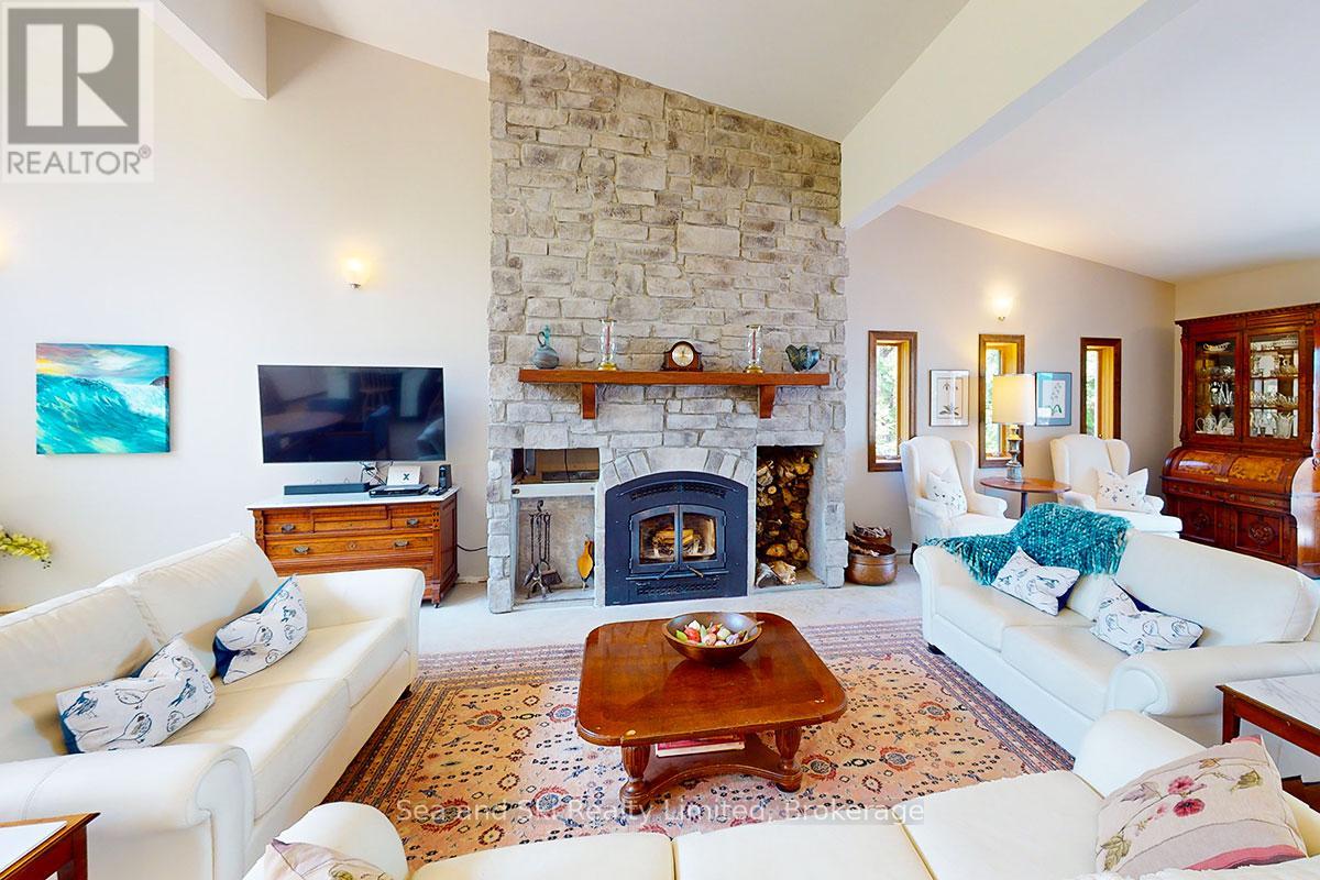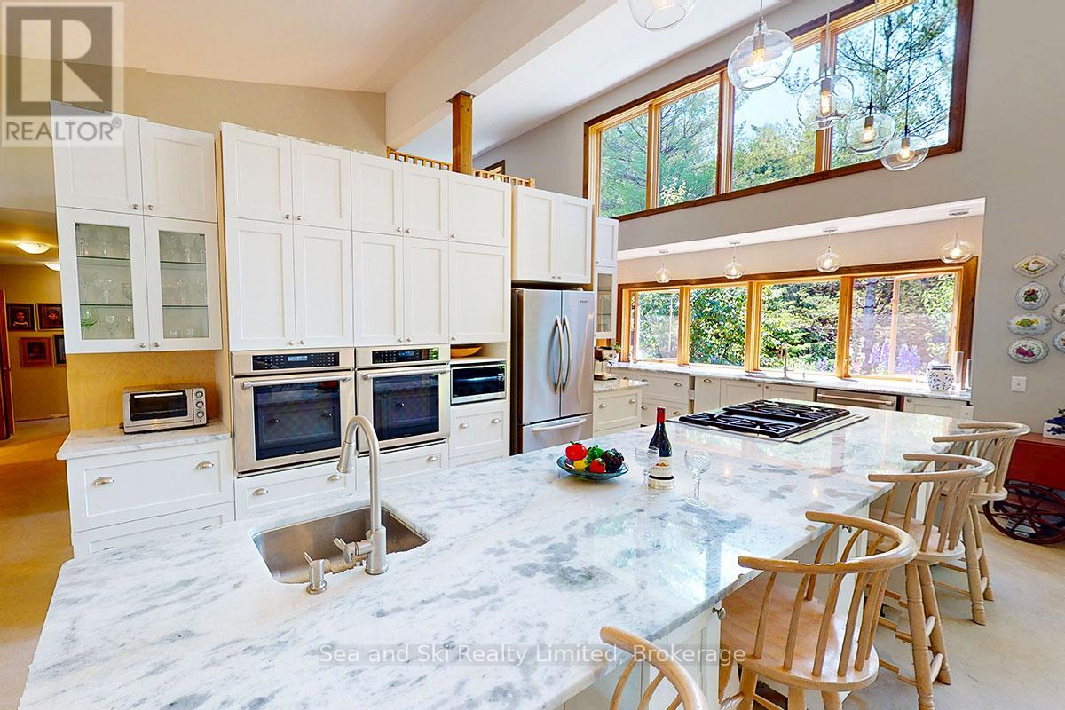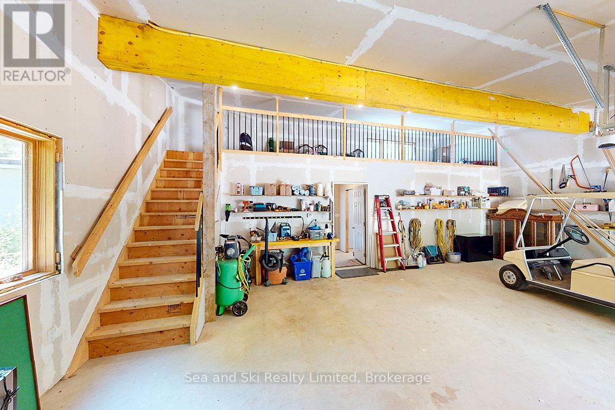 Modern Country Home on 4+ Acres. Contemporary Living Meets Natural Beauty! Discover the perfect blend of modern design and peaceful country living in this stunning custom-built Contemporary Style home, set on just over 4 private wooded acres. Thoughtfully designed with clean contemporary lines, soaring ceilings, and a wall of south-facing windows, this open-concept main floor living home captures natural light and passive solar heat throughout the winter months. The spacious primary suite offers a luxurious escape with a large walk-in closet and a spa-like walk-in shower. The sleek kitchen features Granite countertops and a stylish, functional layout ideal for entertaining or everyday living. In-floor hot air heating ensures year-round comfort and peace of mind. The oversized 2-car garage is built for more than just vehicles, boasting heated floors and a spacious storage loft, perfect for hobbyists or additional gear. Outside, enjoy a large fire pit, a private, well-treed lot with winding trails, a large garden/storage shed, and landscaping materials including multiple skids of flag stone ready for your finishing touches. Located just outside of Markdale, 15 minutes to the Beaver Valley, 40 minutes from Blue Mountain, 2 hours from the GTA, and minutes from hiking, cross-country skiing, ATV trails, and dozens of lakes and rivers for fishing and paddling, this is the ultimate four-season escape package. (id:51300)