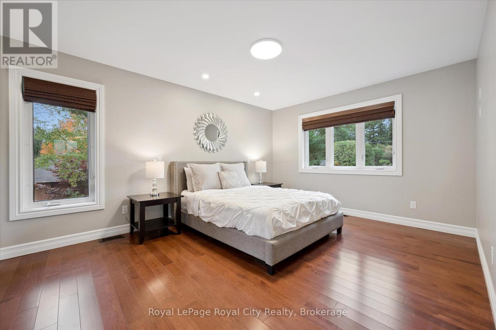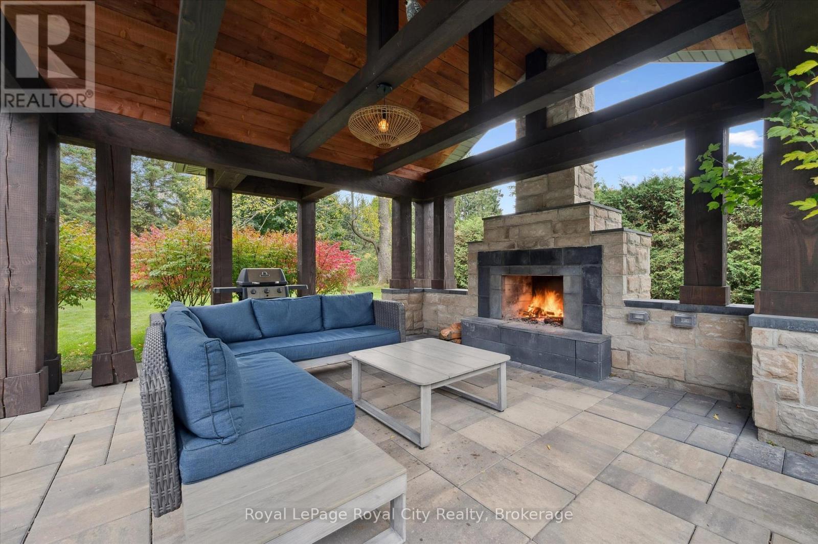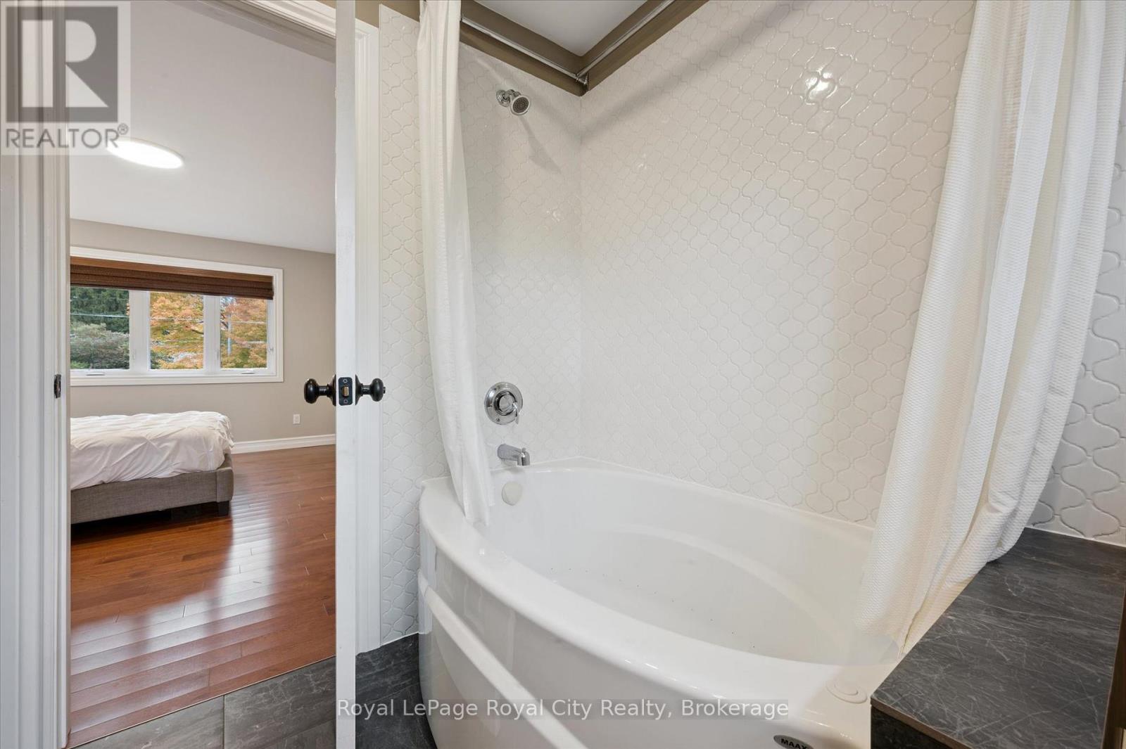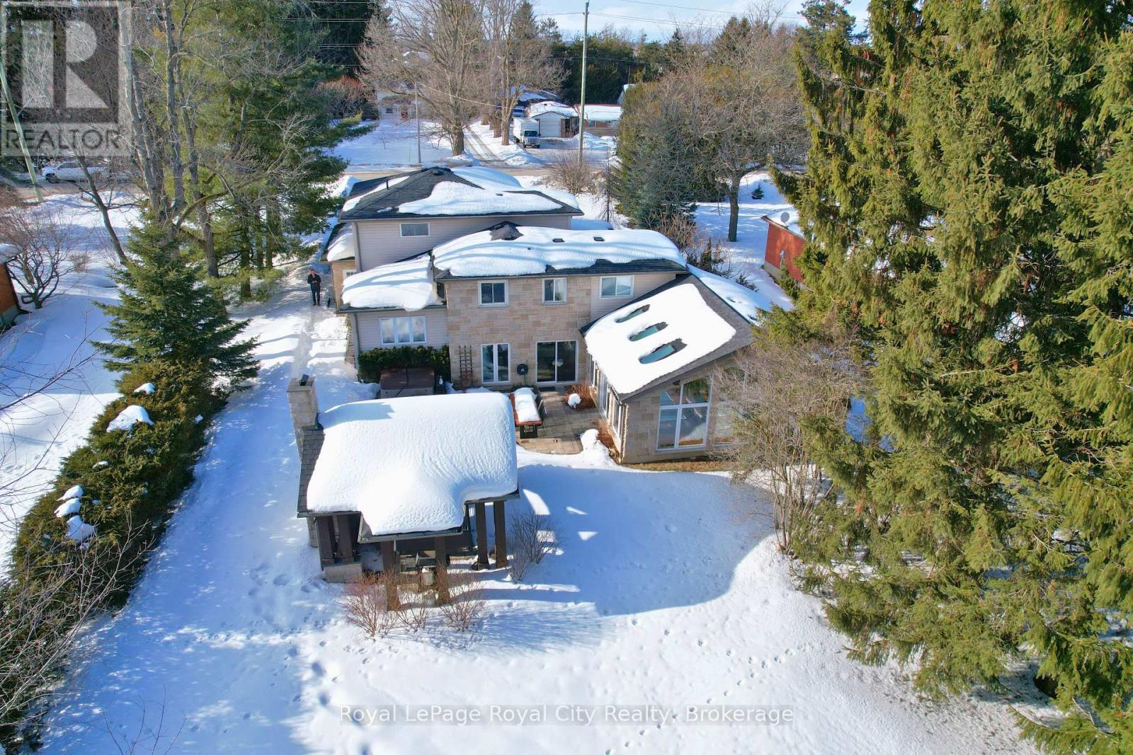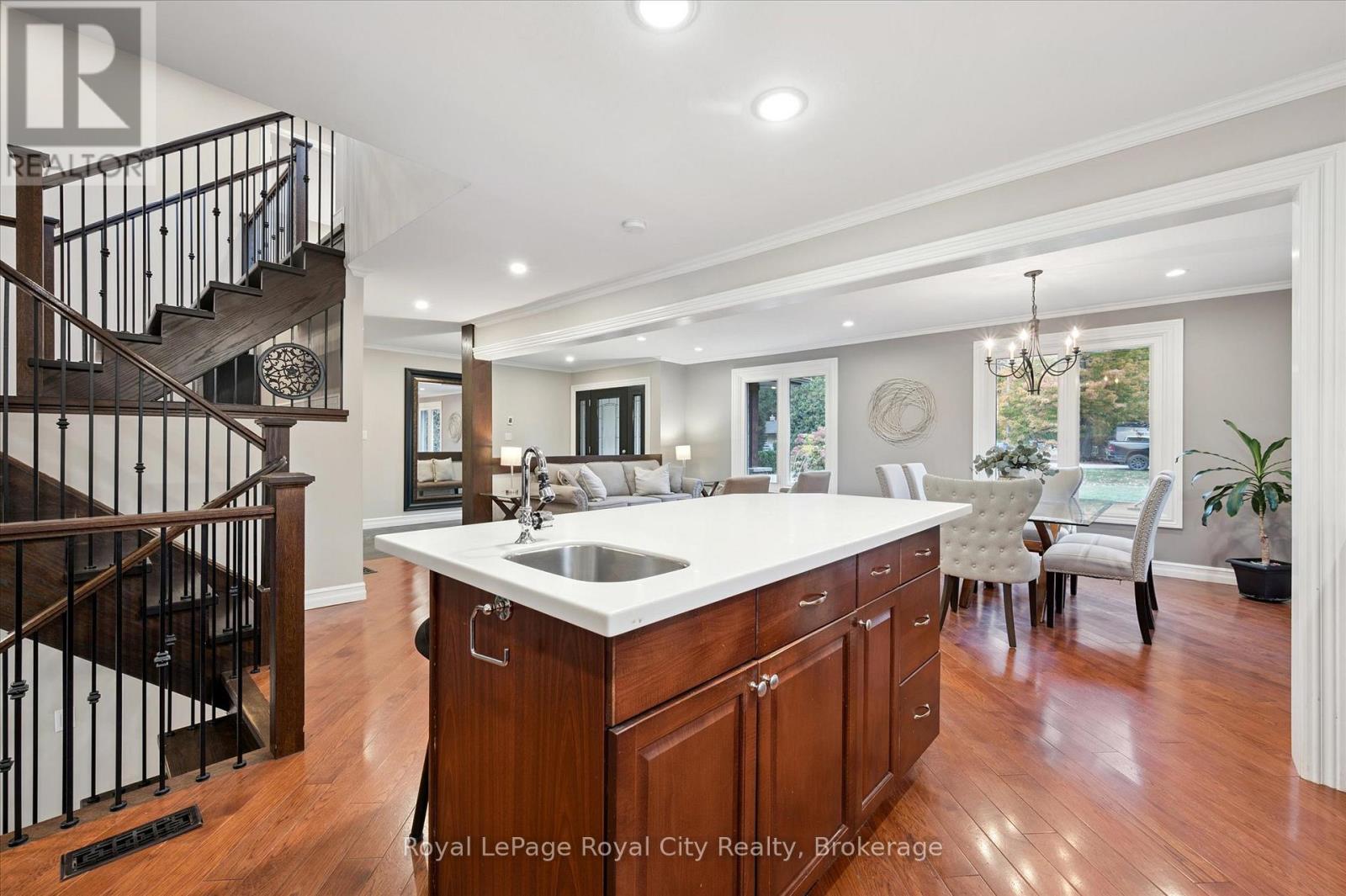 Tucked away on over an acre of peaceful, tree-lined property, this thoughtfully designed multi-level home offers a rare blend of space, style, and soul. From its inviting front porch to the rustic entertaining space out back, every inch of this 5-bedroom, 3-bathroom property invites connection with family, friends, and the natural beauty that surrounds it. Upon entrance, you will quickly fall in love with the open-concept design, enhanced by gleaming hardwood flooring. The chef-inspired kitchen showcases sleek Corian countertops, custom cabinetry, and a functional island that flows perfectly into the combined living/dining room, creating an elegant space for entertaining. A sizable main floor bedroom is ideal for guests or a home office, while a well-equipped mudroom supports busy family living. Descend to the show-stopping lower-level family room, anchored by an attractive fireplace, and flaunting vaulted ceilings, engineered hardwood, skylights, and floor-to-ceiling windows capturing breathtaking backyard views. The adjoining games/rec area is designed for fun and function, complete with heated floors, backyard access, and a modern 3pc bathroom. Upstairs, the 2nd level provides 2 generous bedrooms and a loft space, perfect for a reading nook or study, alongside an updated 4pc bathroom. The private, 3rd level offers a primary suite with a walk-in closet and a 5pc ensuite, as well as a 5th spacious bedroom. The finished basement extends a versatile living or recreational space, complemented by a dedicated laundry room and storage/utility room. Step outside and prepare to be captivated: a 2-tier stone patio frames alfresco dining and a rejuvenating hot tub area, while the rustic post-and-beam gazebo with a striking stone fireplace promises memorable evenings under the stars. Surrounded by mature trees and lush green space, this property evokes the feel of a private resort retreat- just minutes from essential amenities and ready to welcome your next chapter. (id:51300)