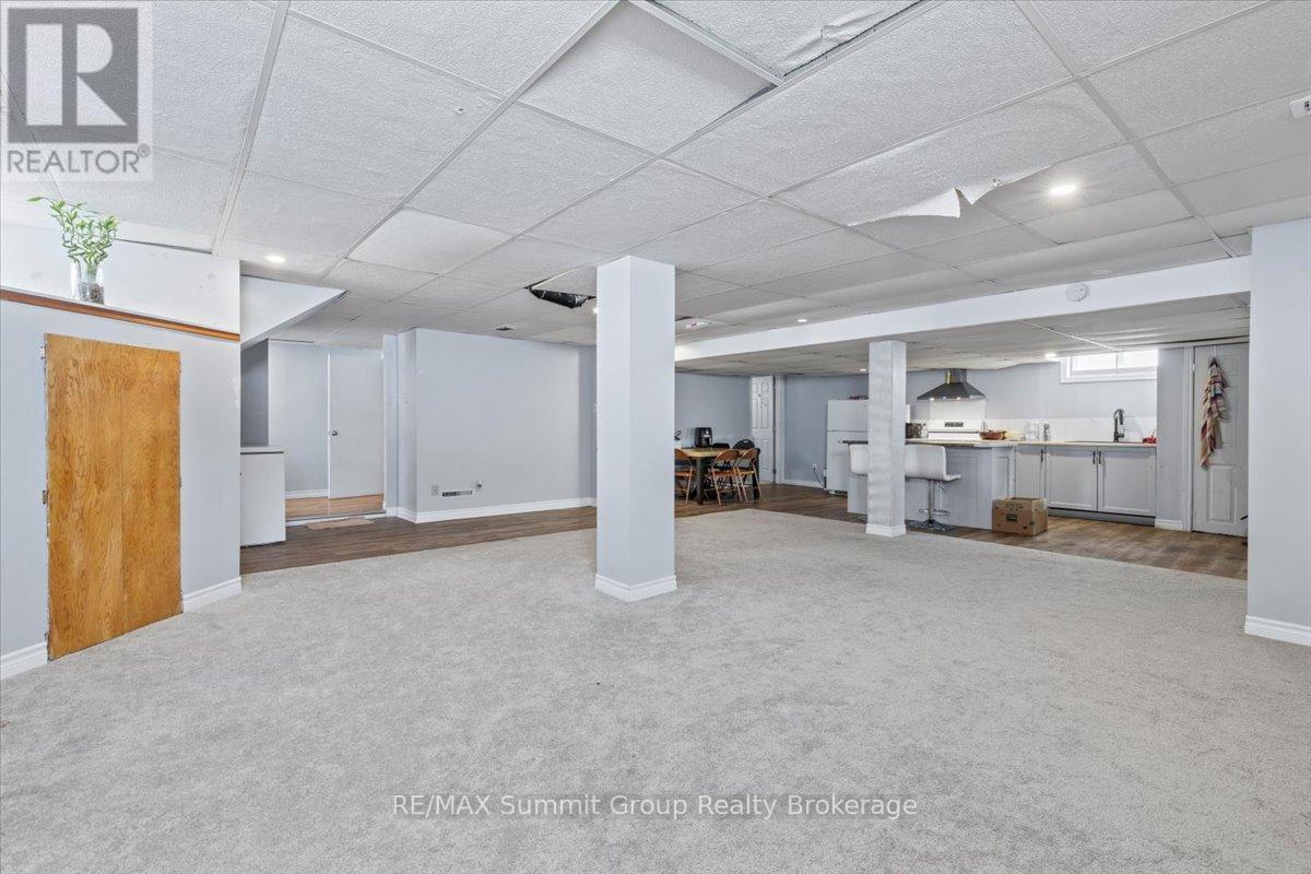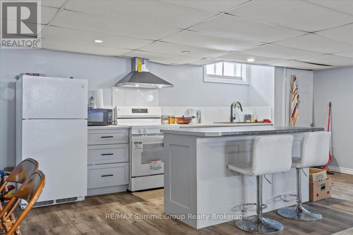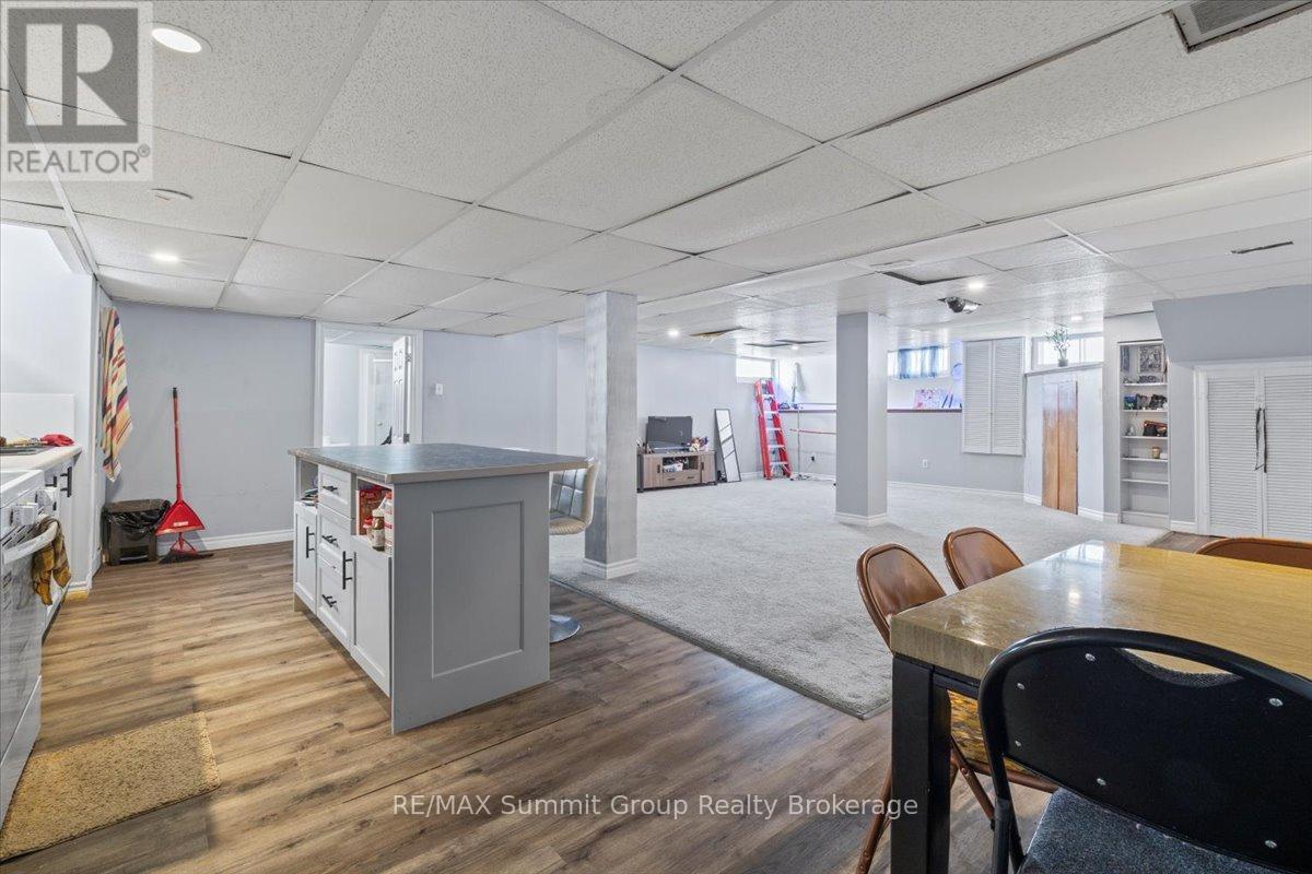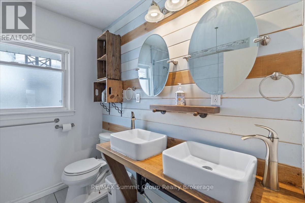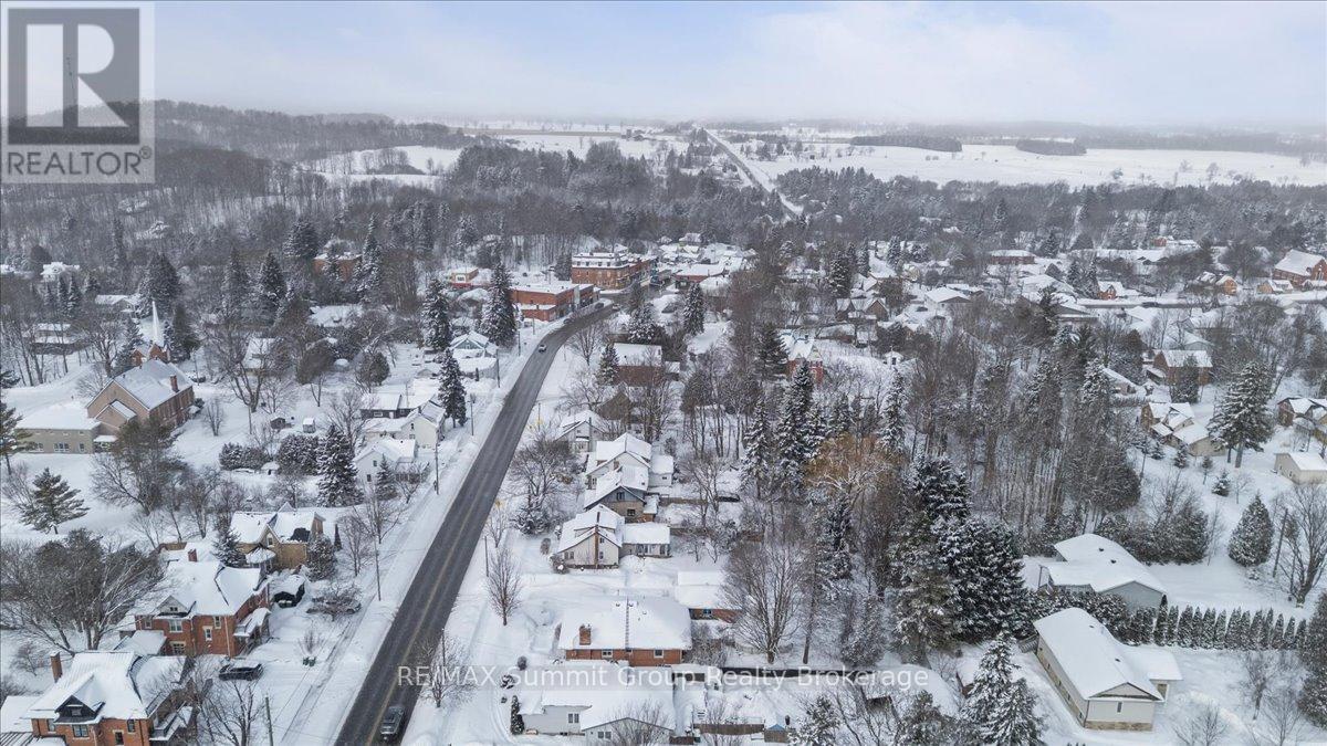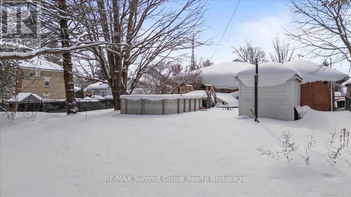 Whether you're growing into your next chapter or planning ahead for simpler living down the road, this in-town bungalow gives you options. The main floor feels bright and easy the moment you step in. The kitchen and dining area offer plenty of space for everyday meals and weekend gatherings, while the living room with its wood-burning fireplace adds a cozy focal point through the winter months. If convenience is a priority, the fireplace could be well suited for a future gas conversion. Two nice sized main floor bedrooms, a full 5-piece bathroom, and a convenient 1-piece bath beside the laundry room add practicality, especially with direct access from the backyard for summer get-togethers. Main floor laundry and a walkout to the back deck make daily life feel uncomplicated. Downstairs, the fully finished lower level has its own separate entrance and is currently tenanted. The layout includes a spacious family room, a kitchenette area, one bedroom, one den, and a full bathroom. The existing tenants would be happy to stay, creating an opportunity for income to help offset your mortgage. Note: the lower bedroom window may not meet egress. Outside, the fully fenced backyard offers room to play, garden, or host friends, and an above-ground pool is included in as-is condition. The detached single-car garage provides valuable storage or workshop space. Located within walking distance to schools, parks, trails, the library, and downtown Flesherton's shops and cafés, this property combines small-town convenience with year-round recreation close by, including Lake Eugenia, Beaver Valley Ski Club, golf courses, rivers, and trails. A solid choice for families, multi-generational living, or those planning ahead for the ease of one-floor living in the years to come. (id:51300)