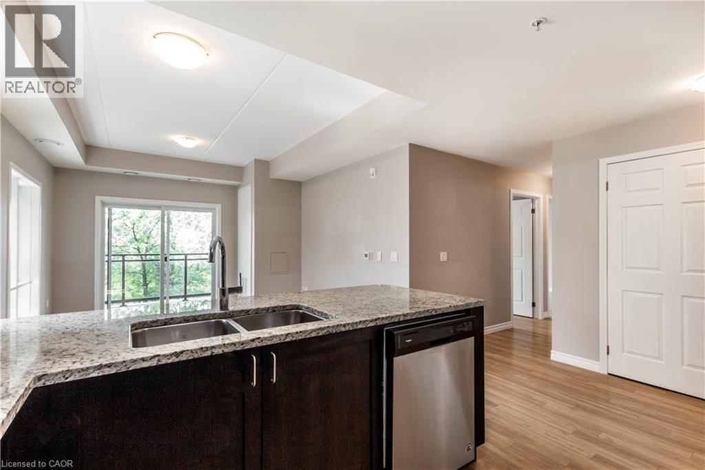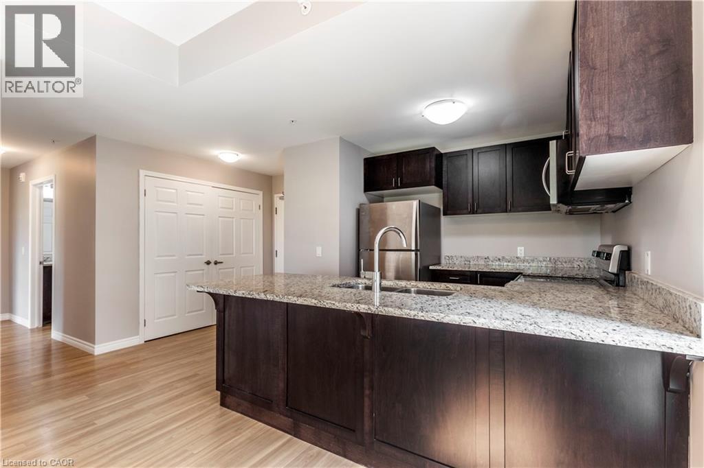Welcome to Perth Mills at 456 Lorne Ave W, Stratford. This beautifully designed 2-bedroom, 2-bathroom, carpet-free apartment offers bright, open concept living highlighted by 9-foot ceilings and large picture windows. The kitchen features extended granite countertops including a breakfast bar, and stainless steel appliances. The thoughtfully designed Easson layout includes ample storage and the convenience of in-suite laundry. The primary bedroom features a spacious walk-in closet and a private ensuite bathroom, while the private balcony off the living room extends your living space outdoors. Perth Mills delivers the ideal balance of peaceful residential living with close proximity to Stratford’s amenities, shopping, dining, and everyday essentials. Designed with comfort and convenience in mind, the building offers a secure entrance, elevator, outdoor parking, storage lockers, a fitness centre, a social lounge, and an outdoor BBQ/picnic area for residents to enjoy. Don’t miss your opportunity to call Perth Mills home—where modern living meets small-town charm. (id:51300)