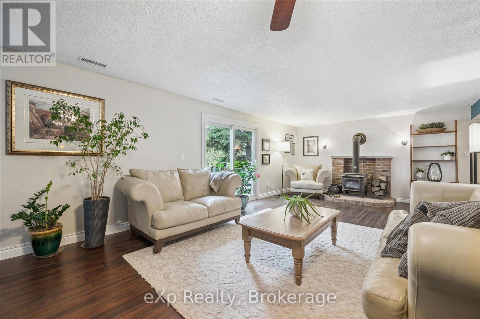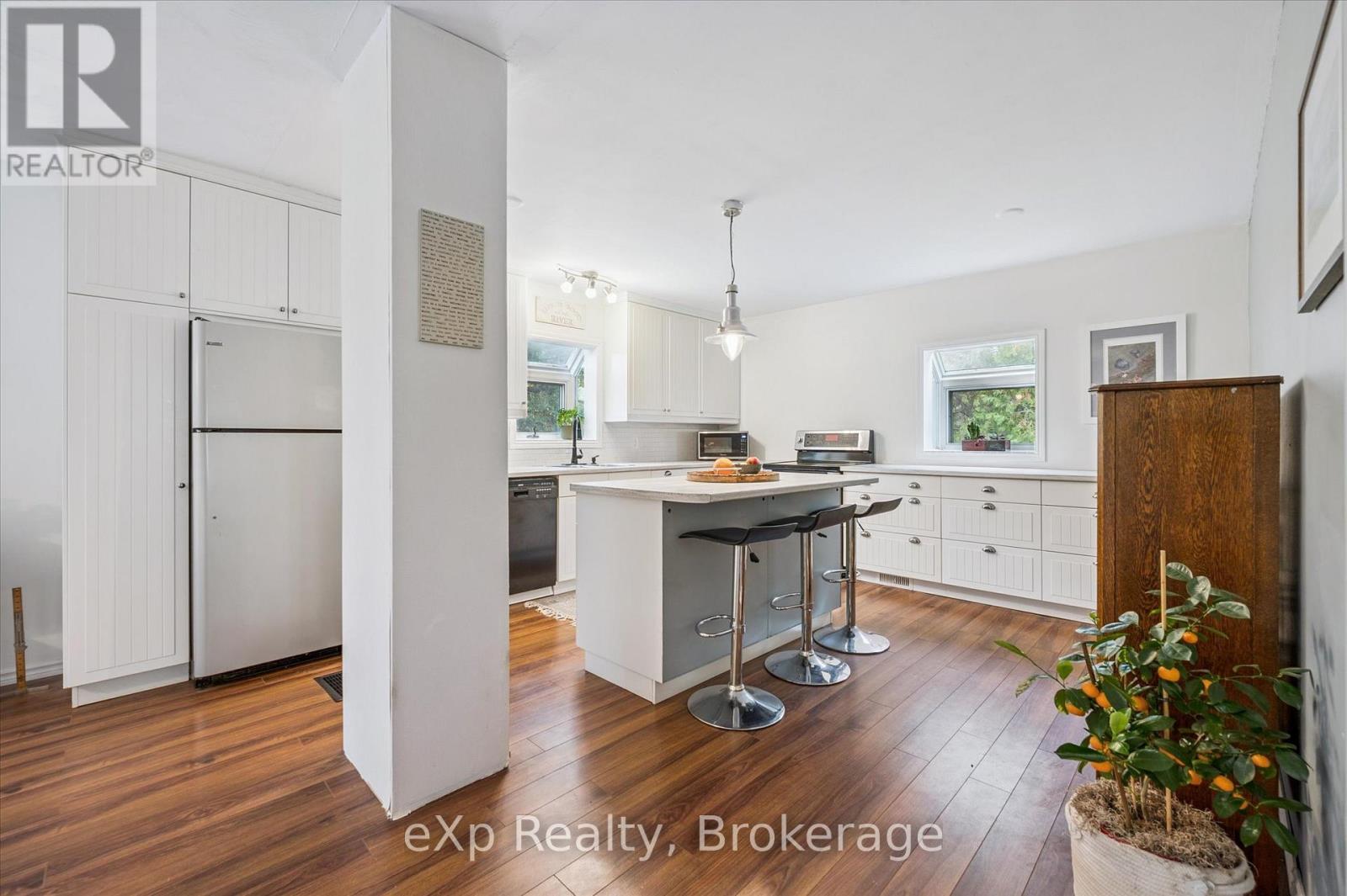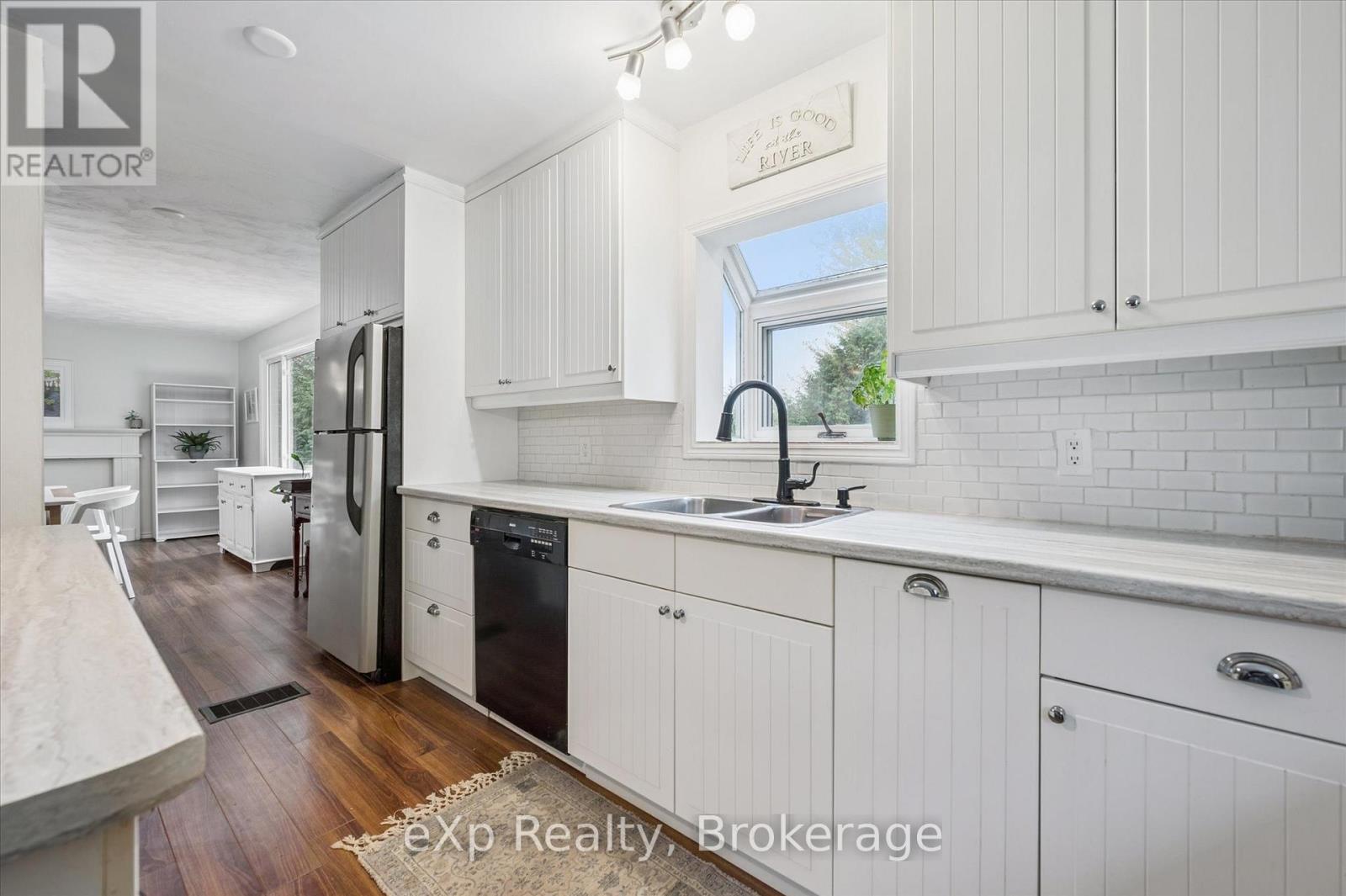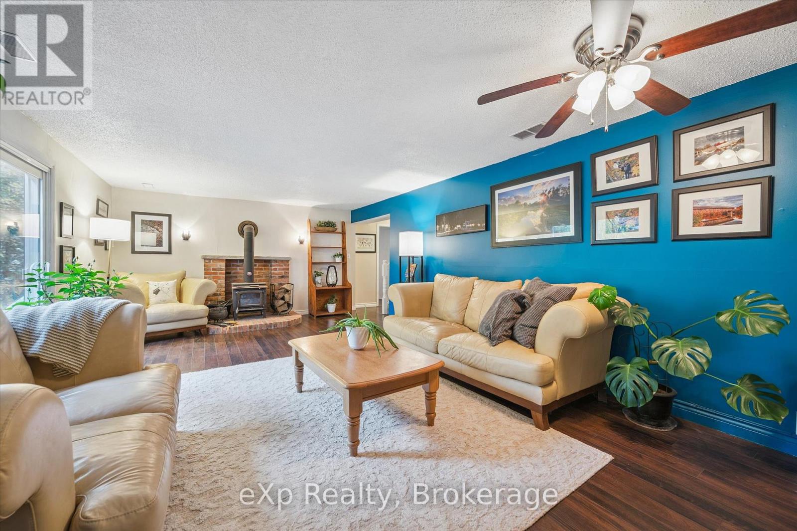 Welcome to 460 Geddes Street, Elora. Tucked along the Irvine River, this charming bungalow offers a warm, cottage-like feel just steps from the gorge and walking distance to Elora's downtown shops and restaurants. Featuring 3 spacious bedrooms up, 1 down, and 2 full baths, it's ideal for families or downsizers alike. The bright, open layout includes a large kitchen island, cozy wood-burning fireplace, and walkout to a terraced backyard overlooking the river valley. Updates include a new gas furnace and hot water tank, new garage door, and newer sliding doors. (id:51300)