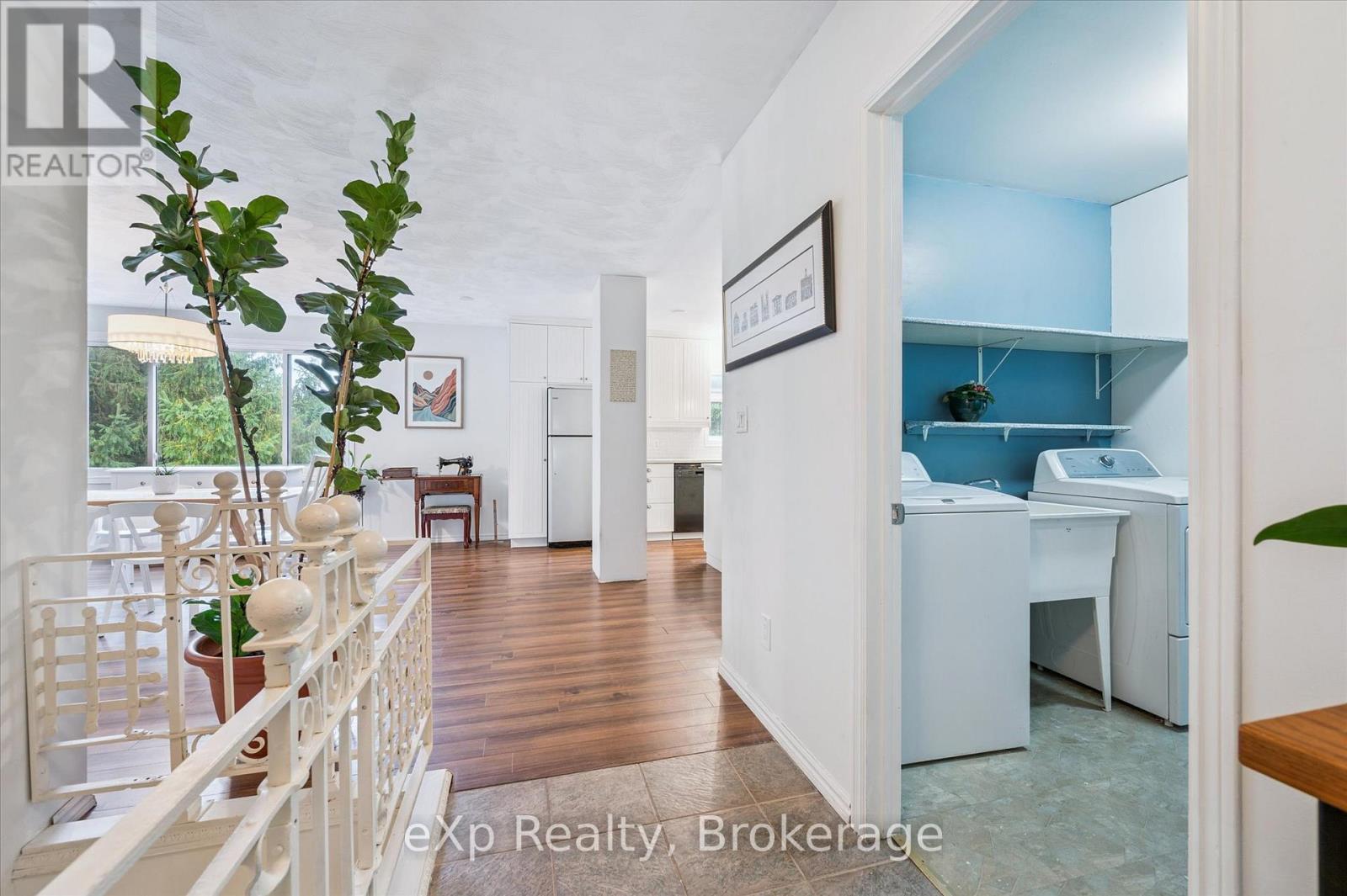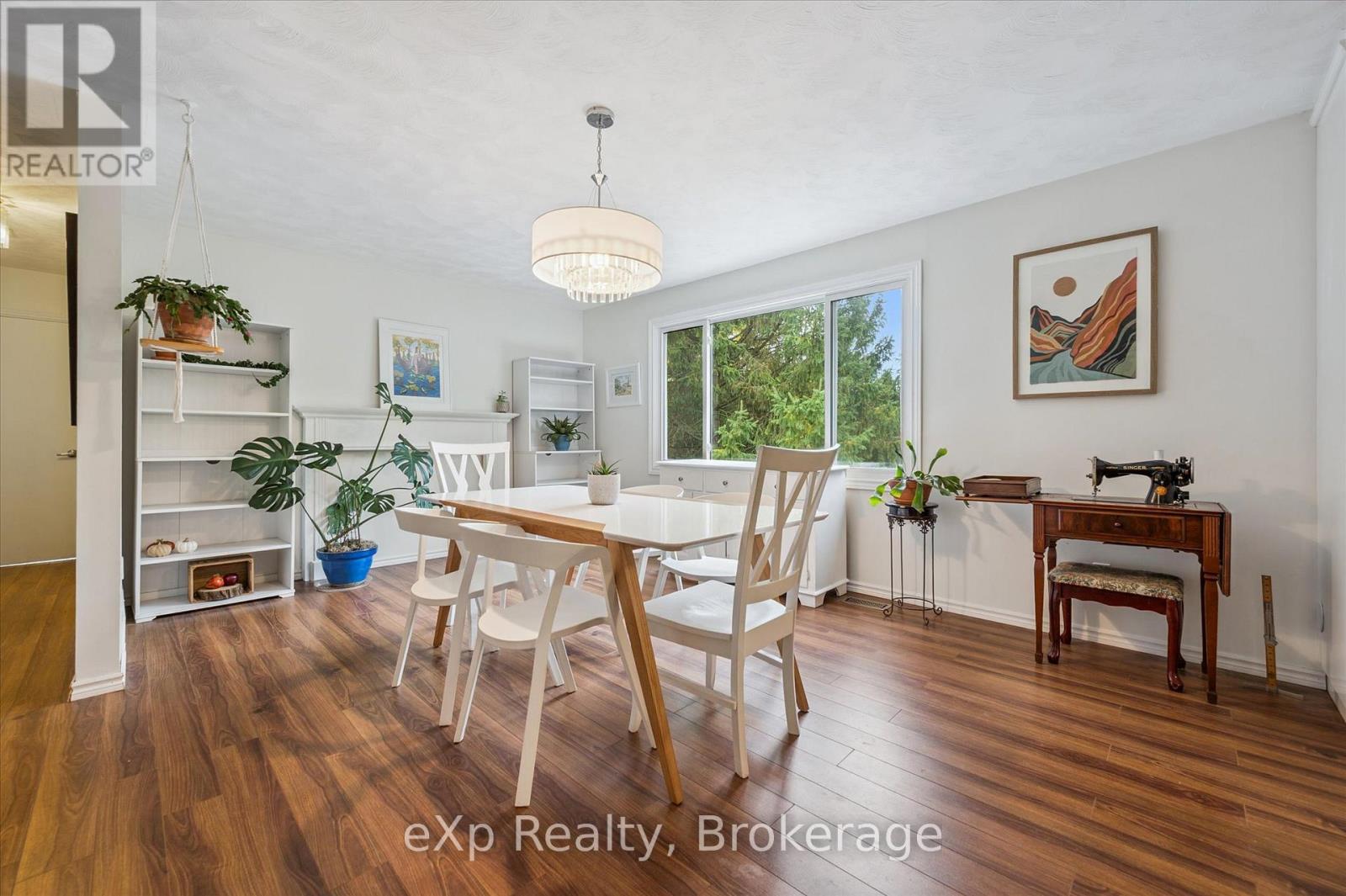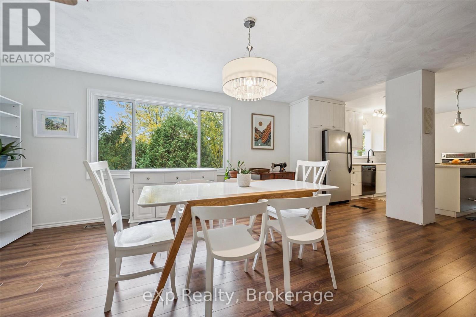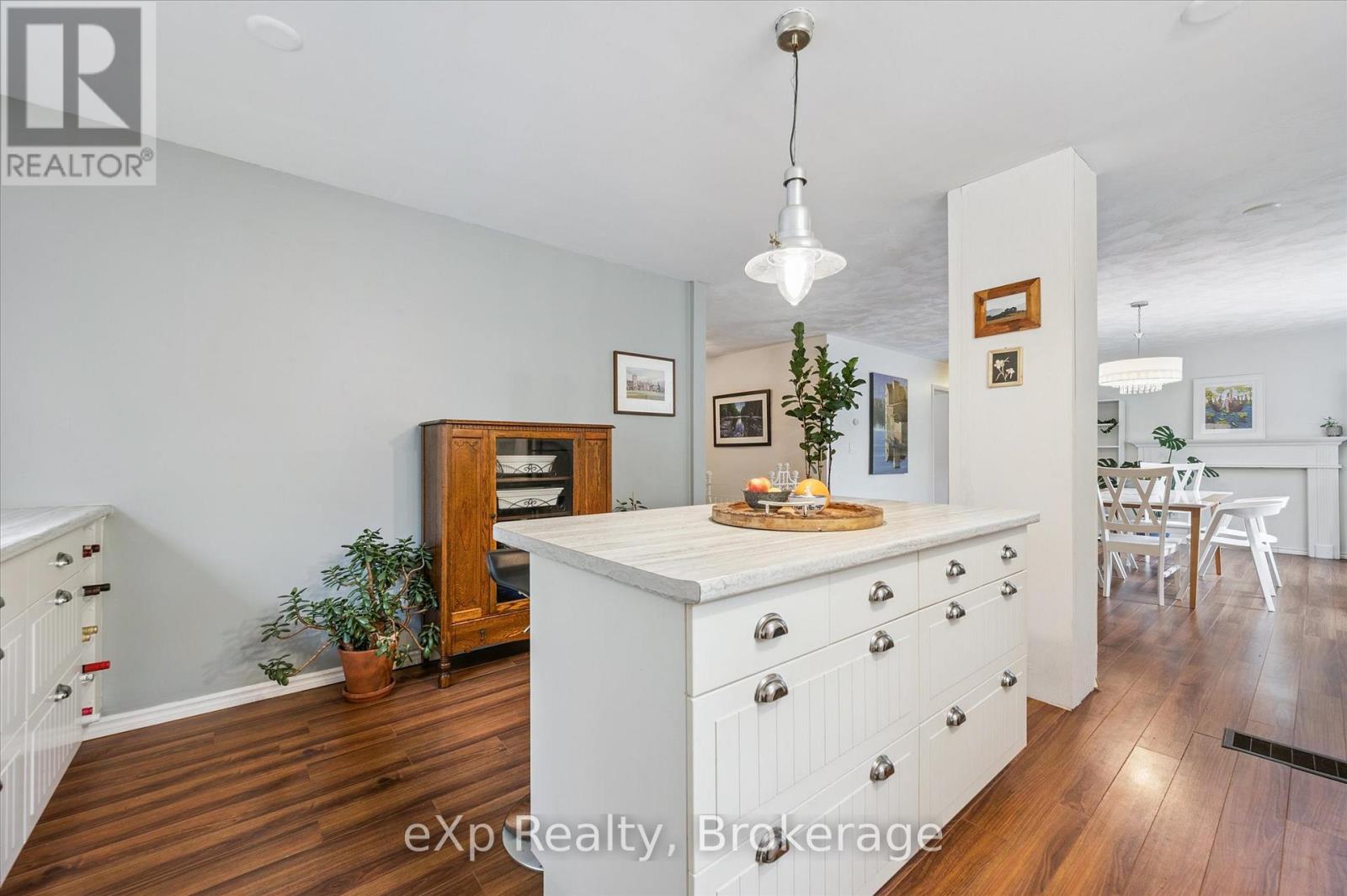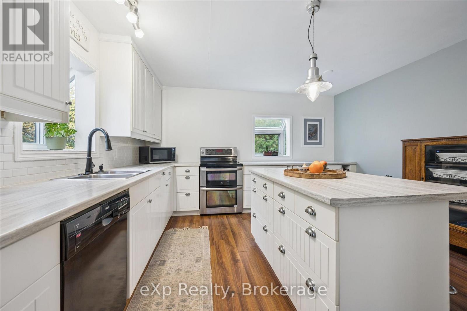 Welcome to 460 Geddes Street, Elora. Tucked along the Irvine River, this charming bungalow offers a warm, cottage-like feel just steps from the gorge and walking distance to Elora's downtown shops and restaurants. Featuring 3 spacious bedrooms up, 1 down, and 2 full baths, it's ideal for families or downsizers alike. The bright, open layout includes a large kitchen island, cozy wood-burning fireplace, and walkout to a terraced backyard overlooking the river valley. Updates include a new gas furnace and hot water tank, new garage door, and newer sliding doors. (id:51300)
