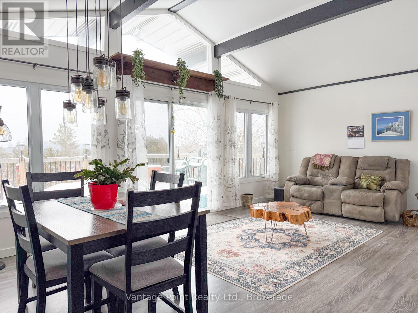 Set high on a gentle rise and surrounded by mature trees, this private retreat offers serene water views of Townsend Lake and a peaceful country atmosphere. Thoughtfully laid out, this move-in-ready 3-bedroom, 2-bath home is ideal as a full-time residence or a four-season getaway. The bright, open-concept main level is enhanced by vaulted ceilings and expansive windows that frame the lake beyond. A beautifully designed kitchen anchors the space, featuring stainless steel appliances, a spacious island, and a distinctive etched-glass pantry door. Step out to the private rear deck to enjoy quiet mornings overlooking the open land, or relax on the front deck while taking in the lake views, both ideal spaces for entertaining. The massive primary bedroom includes a walk-in closet and a 4-piece ensuite, while two additional bedrooms share a well-appointed main bath. The walk-out lower level provides direct access to the spacious garage and offers a generous family room, bonus room, laundry facilities, and ample storage. An asphalt driveway leads to the home, offering easy access and plenty of parking. With privacy created by surrounding trees and natural landscaping, this property delivers a true sense of seclusion while remaining close to recreation. Just a short walk to public access at Townsend Lake and a short drive to Bell's Lake, with nearby golf courses, ATV and snowmobile trails, and cross-country skiing, this is an exceptional opportunity to enjoy relaxed lakeside living year-round. (id:51300)