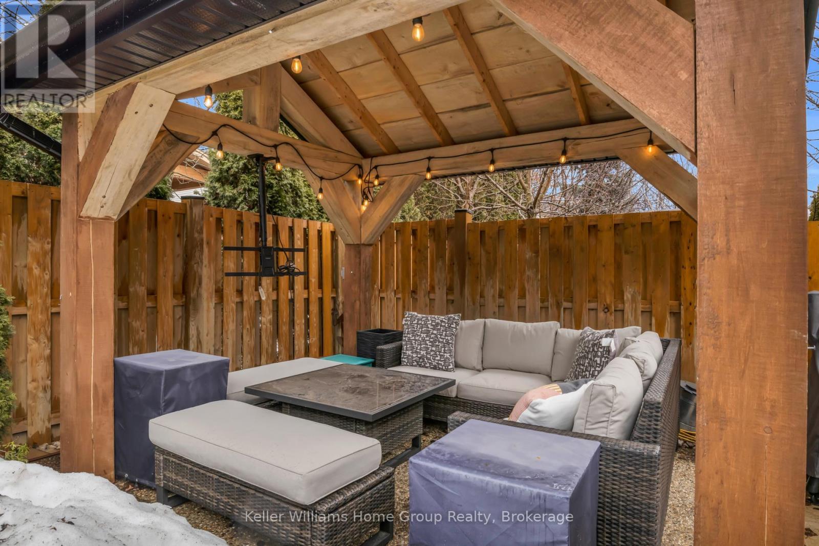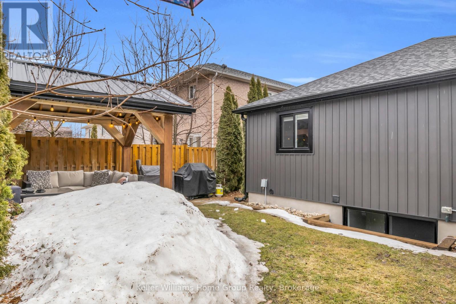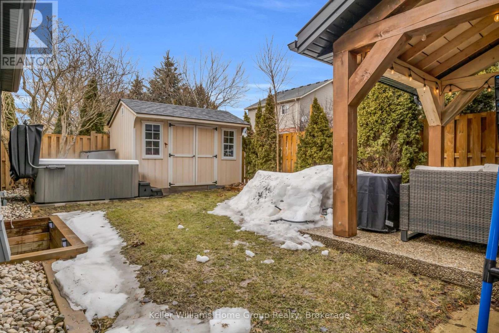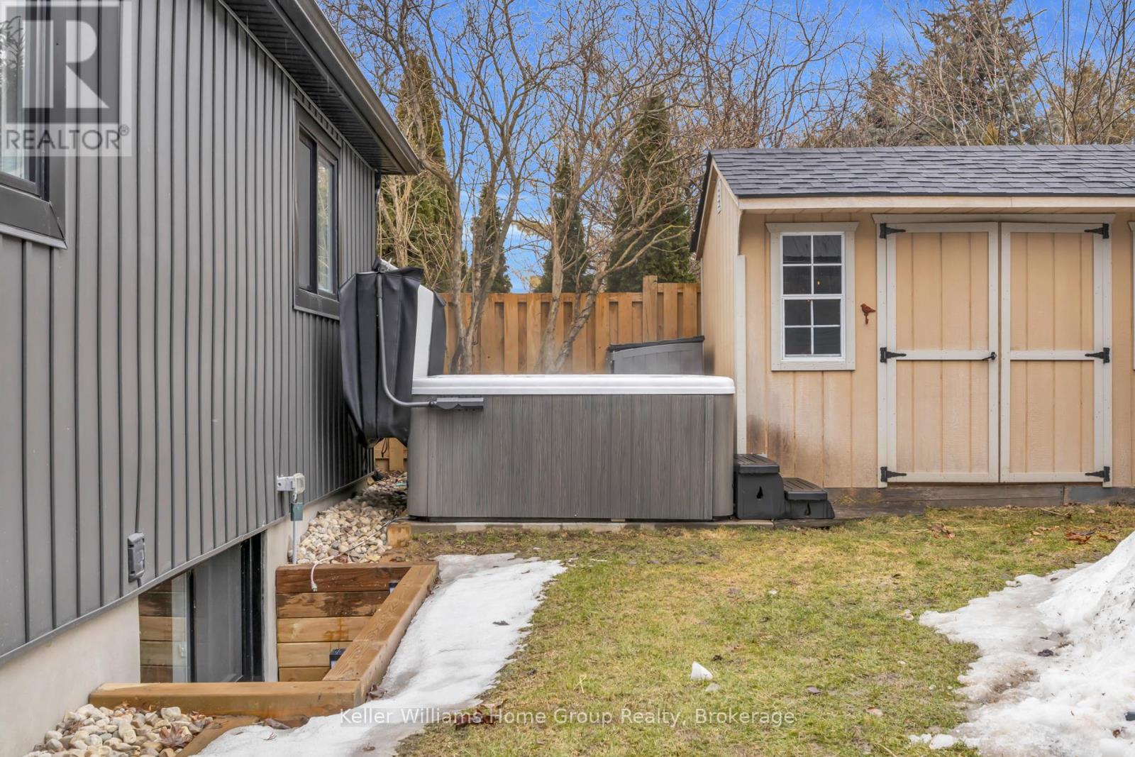 Move in ready bungalow on a quiet crescent in the heart of Fergus! This beautifully updated home features 3+1 bedrooms, 2 updated bathrooms, a fully finished basement with gas fireplace, and a private backyard retreat with composite deck leading to the timber frame gazebo. This well maintained and recently updated bungalow offers a comfortable and functional layout ideal for family living. Situated in a great family neighbourhood, this home is within walking distance to schools, shopping, and the Cataract Trail. The main floor features a bright living room, kitchen, and adjoining dining area with large windows providing plenty of natural light. There are 3 bedrooms on the main level and a 4th bedroom in the fully finished basement, along with two updated bathrooms (2024). The lower level includes a spacious recreation room with a gas fireplace, perfect for family movie nights, games, or entertaining. Just off the kitchen is a convenient mudroom with built-in storage, ideal for busy families and sports equipment. Step outside through the patio doors onto a new composite deck overlooking the private backyard. The outdoor space includes a timber gazebo with steel roof, eavestroughs, and hydro, a 10 x 12 shed with hydro, and a concrete hot tub pad. The fully fenced yard (Fall 2024) provides privacy and space for kids and pets to play. Recent updates include windows & doors (2025), garage door (2025), soffit & fascia(2025),siding (2025),and roof(2022). Enjoy this modern looking bungalow that is move in ready with major updates already completed. (id:51300)