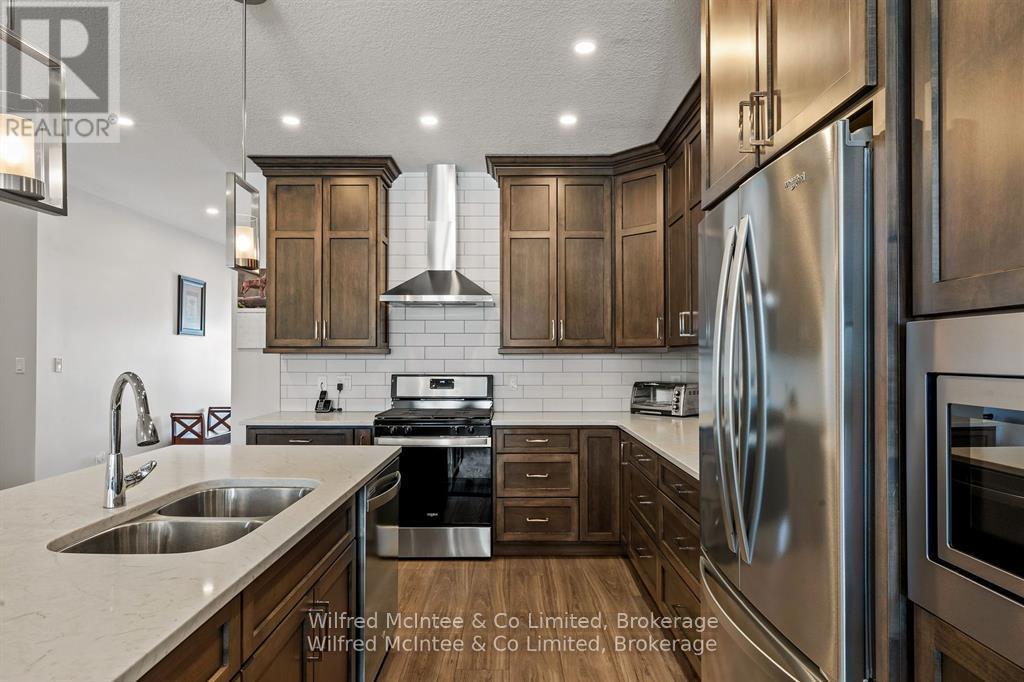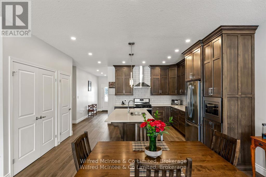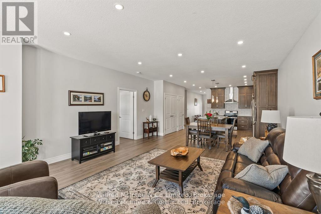 Welcome to 5 Palmer Marie Lane, a Life Lease Unit in an adult community! This beautifully crafted, accessible 1435 sq. ft. bungalow(4 plex) is a perfect blend of comfort, style, and functionality. Built in 2022, this home boasts exceptional quality and workmanship. On the main level, you'll find a chef-inspired kitchen featuring custom maple cabinets, an island/ breakfast bar, and quartz countertops. The open-concept dining and living area provide a warm, welcoming space for entertaining or relaxing. The primary bedroom is a spacious retreat with ensuite having a 4 ft. shower, soaker tub and 2 walk-in closets, while the second bedroom with walk in closet is perfect for guests or a home office. Laundry is conveniently located on the main level but could be relocated to the basement. With a STAIR LIFT to the lower level accessibility allows you to enjoy a large family room with a walk out to a private patio. A third bedroom and 3-piece bath provide additional living options, along with a huge storage room, utility room and cold room. Lower level is easily the perfect in law suite with a few renovations. In floor heat runs in the basement and can be connected with a heat source. Enjoy the outdoors from the front porch, upper deck, or lower patio. The attached garage is generous and lined in easy care Truscore. Concrete driveway for 2 vehicles. Monthly fees in 2024 were $381. Maintenance-free living is at its finest, with snow removal and lawn care taken care of for you. This well-maintained, worry-free home is perfect for those looking to downsize without sacrificing quality or style. (id:51300)