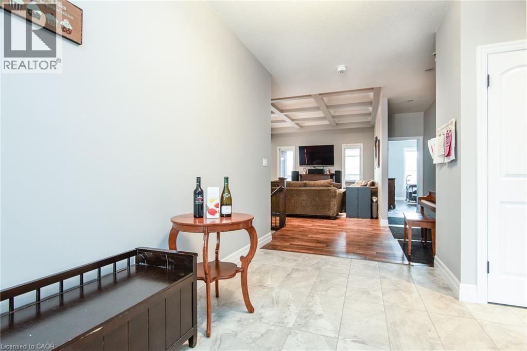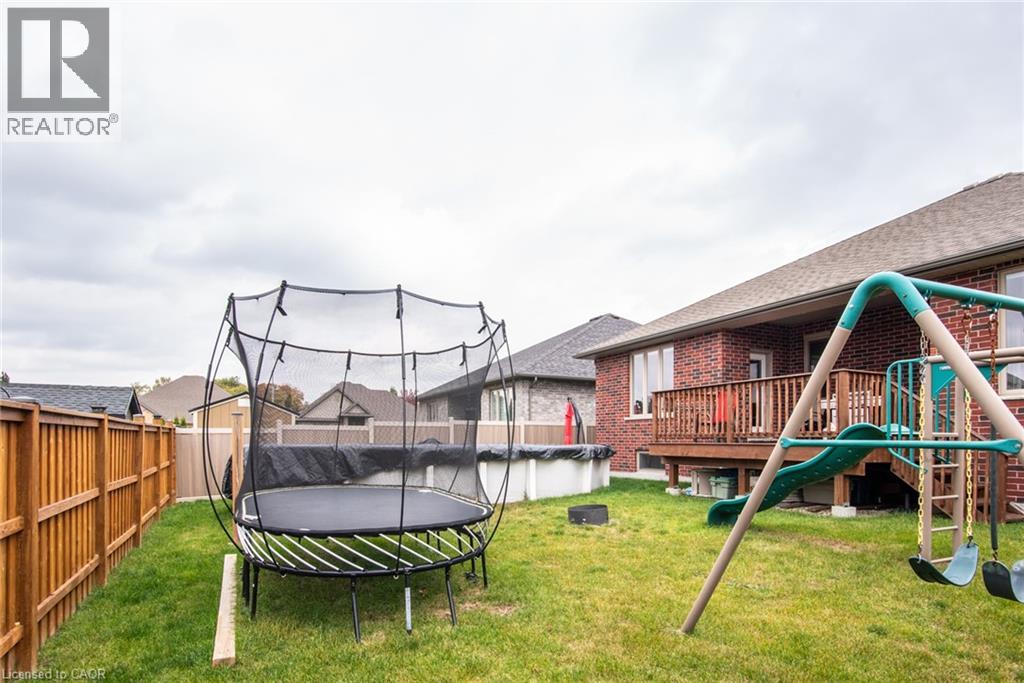 This stunning custom-built home combines quality craftsmanship, functional design, and modern comfort in the heart of Wellesley. The bright foyer opens to an inviting living area featuring hardwood floors, pot lights, and a beautiful coffered ceiling that adds architectural character. A cozy gas fireplace anchors the space, creating the perfect setting for relaxing or entertaining. The kitchen offers high-end stainless steel appliances, granite countertops, tall cabinets, a stylish backsplash, and a breakfast island. The adjoining dinette provides a walkout to the covered deck, creating a seamless indoor-outdoor flow. The main floor includes two spacious bedrooms and two full bathrooms. The private primary suite features a walk-in closet and a luxurious 5-piece ensuite with a glass shower, double sinks, and a deep soaker tub. A second walkout from the primary bedroom leads to the covered deck—an ideal spot to enjoy your morning coffee or unwind in the evening. The lower level offers two additional bedrooms, a full bathroom, and a large recreation room—perfect for family gatherings, hobbies, or guests. The fully fenced, pool-sized backyard provides plenty of space for kids, pets, or future outdoor projects. Located in the charming town of Wellesley, this home offers both peace and convenience. Nearby amenities include grocery stores, pharmacies, soccer fields, a community center, skating rinks, playgrounds, a water park, and tobogganing ponds—making it an ideal choice for families of all sizes. (id:51300)