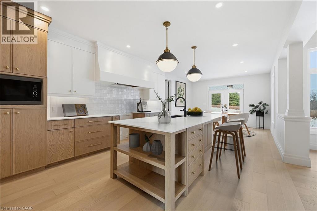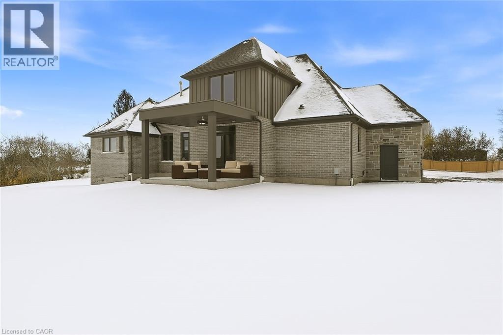 Brand-new custom build by Charleston Homes offers 3700sqft of living on 1.3-acres backing onto untouched greenspace, never to be developed! Designed W/exceptional craftsmanship & functionality this 3+den home offers main-floor primary suite, architectural detail & upscale finishes. Crafted by Charleston Homes, a name synonymous W/quality, elegance & timeless design. Stone & brick exterior, 3-car garage & covered entry welcomes you. Inside 2-storey great room W/soaring ceilings, windows & fireplace flanked by B/I shelving. Main level continues W/9ft ceilings, wide-plank oak hardwood & lighting design W/over 65 pot lights throughout. Chef-inspired Barzotti kitchen W/2-tone cabinetry, quartz counters, centre island W/bar-seating & pendant lighting. Prep-kitchen W/sink & storage. Eat-in area with garden doors that open to covered patio for seamless indoor-outdoor living. Dining room W/crown moulding & large windows. Front office W/custom B/Is offer ideal space for work from home or enjoying quiet library-style retreat. Main-floor primary suite offers oak floors, crown moulding, dual windows & W/I closet. Ensuite W/soaker tub, W/I shower, dual vanity & luxury finishes. Laundry & 2pc bath complete main level. Ascend the oak staircase to upper level loft area, ideal as teen hang-out, office or lounge. 2nd-floor primary suite offers ensuite W/quartz counters & frameless glass shower. Another large bdrm W/vaulted ceiling shares 5pc Jack & Jill bath W/adjacent den/hobby room. Unfinished bsmt W/oversized windows & 3pc R/I is ready for your future design! Outside enjoy covered patio & private lot backing onto greenspace, perfect for relaxing, BBQs or future pool. This exclusive estate sits within a peaceful rural hamlet known for beautiful properties, family-friendly atmosphere & strong sense of community. New school, Waterdown Bay Elementary & Beverly Community Centre are nearby. Mins from Hamilton & Burlington offering access to amenities. Cambridge & Guelph are 30-mins away! (id:51300)