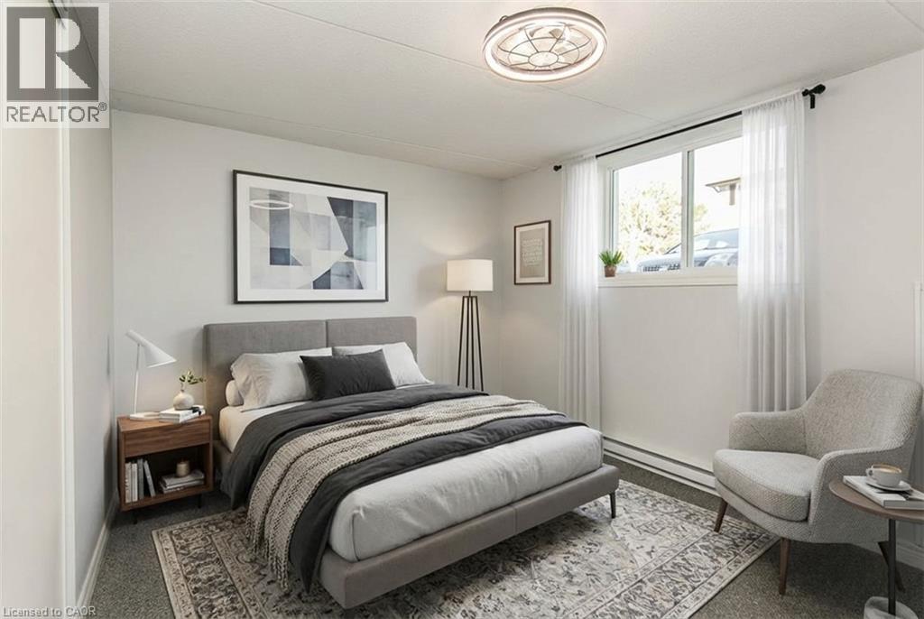 YOU WILL LOVE this bright and sunny two-bedroom condo tucked into a quiet Stratford neighbourhood. With minimal stairs and easy access throughout, it’s an ideal choice for downsizers ready to trade shoveling and exterior upkeep for relaxed, maintenance-free living. The unit offers two good sized bedrooms and the bathroom has a step-in tub with a grab bar for added comfort and peace of mind. Recent updates include triple-pane windows, cozy carpet in the bedrooms, range hood, updated light fixtures (with ceiling fans in the bedrooms), baseboard heaters and a portable air conditioning unit—making this home both efficient and comfortable year-round. Convenient storage room located off the Living Room in your unit. Enjoy the best of Stratford living near the market and arena and a 10-minute drive or a scenic 30-minute walk to the Theatre, charming shops, dining, and all the amenities this vibrant city has to offer. Photos of Bedrooms and Living Room virtually staged for furniture layout. (id:51300)