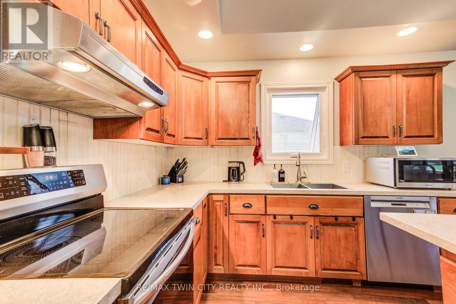 Backs Onto a Private Park - No Rear Neighbours! Welcome to this beautifully updated bungalow that combines comfort, quality, and a one-of-a-kind setting. Perfectly positioned backing onto a private park, this home offers peace, privacy, and scenic views with no rear neighbours! Step inside to a bright open-concept main floor featuring a spacious living and dining area that flows effortlessly into a modern kitchen with maple cabinetry, a large island, and a convenient pantry-ideal for family meals and entertaining. The main level offers three comfortable bedrooms and a fully renovated five-piece bathroom (2023) designed for today's busy family. The fully finished lower level expands your living space with two additional bedrooms, a beautifully updated three-piece bathroom (2023) with in-suite laundry, and a warm, inviting recreation room featuring a cozy gas fireplace-perfect for movie nights or relaxing with friends. This home is truly move-in ready, with major updates already completed: Roof (2021), Windows (2021), Furnace and A/C (2019), Water Softener (2018), Tankless On-Demand Hot Water Heater (2023), Garage Door (2022), Bathrooms (2023), and Front Landscaping (2024). Step outside to enjoy your newer deck (2020) overlooking your private backyard oasis-a serene space for barbecues, morning coffee, or simply unwinding in nature. Located close to shopping, grocery stores, restaurants, walking trails, and top-rated schools, this property offers both convenience and tranquility. With its impressive list of updates, desirable layout, and unbeatable park setting, this park-backing bungalow is the perfect place to call home. (id:51300)