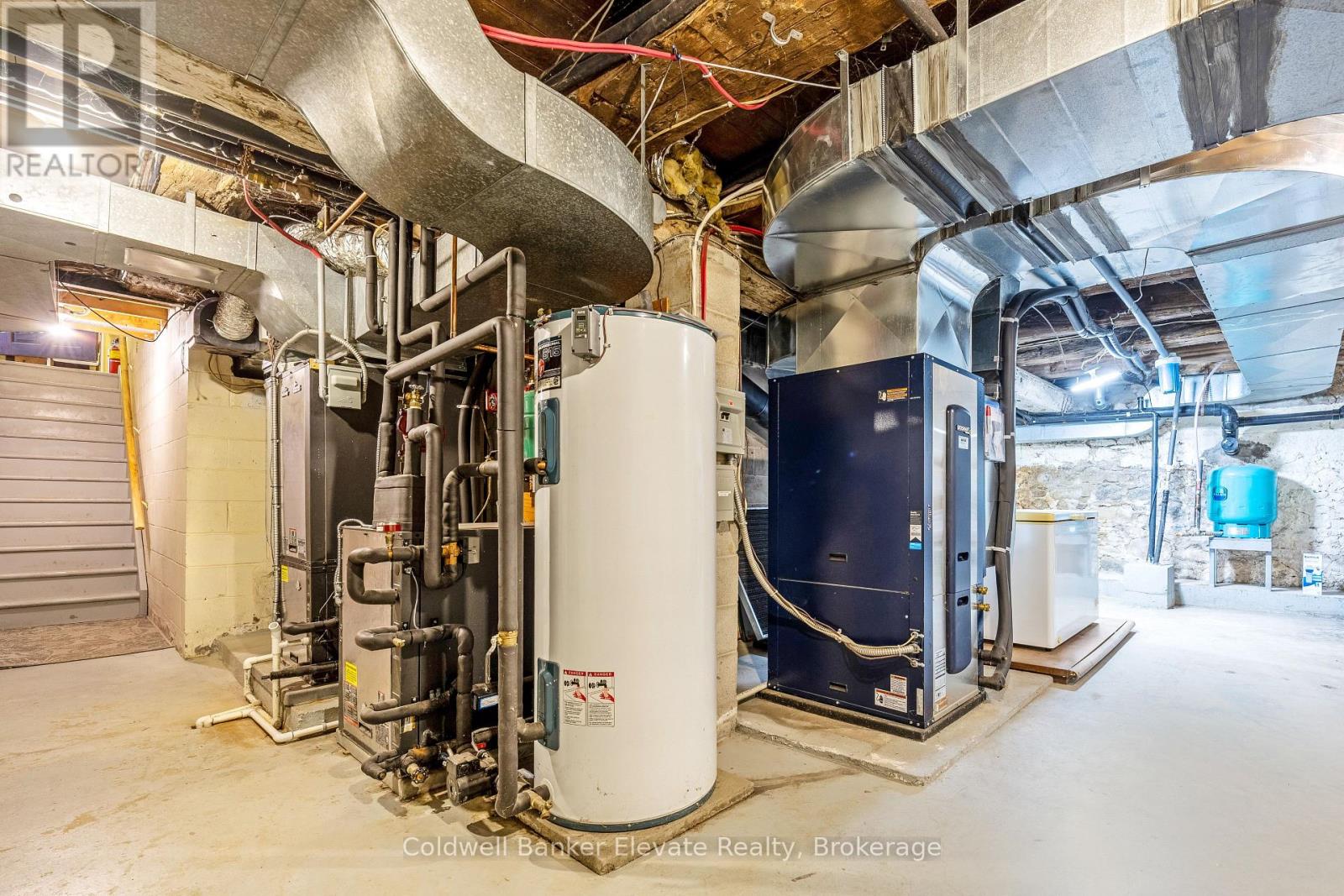This circa 1875 fieldstone farmhouse has been thoughtfully redesigned by architect Grant A. Whatmough and is set on approximately 99 acres behind a gated entry. Maintaining classic charm and modern convenience, this property is ready for a new family to carry on the tradition. The main floor welcomes you with a double door entry leading into a spacious open concept kitchen and large living area highlighted by a stone fireplace and deep windowsills. The kitchen features Corian counters, stainless steel appliances, a center island, and walkout access to a covered stone patio and in ground pool. Enjoy cozy breakfasts by the wood burning fireplace or host larger gatherings in the formal dining room. A rare main floor primary suite offers hardwood floors and a walkout through double French doors to a sunroom with heated floors overlooking the perennial filled backyard and pool. The spa style ensuite includes heated tile floors, a double glass shower, and a soaker tub. Upstairs, you will find four bright and spacious bedrooms, each with closets and windows overlooking the private property. Along with the added ceiling height, this level features two updated baths, upper level laundry, and generous closet space. Outdoor living is highlighted by a 20 x 40 geothermal heated marbelite pool with diving board, a flagstone patio, and a covered entertainment area complete with a pizza oven and cooking space. A heritage post and beam barn with hayloft, a secondary garage or shed, and a silo enhance the property's charm. Mechanically, the home offers dual geothermal systems for the house and pool, radiant in floor heating, two drilled wells, and an active lease on approximately 52 workable acres. Trails and a 21 acre woodlot provide endless opportunities for exploration. This one of a kind rural retreat is just minutes from town amenities and ready for its next family to enjoy. (id:51300)