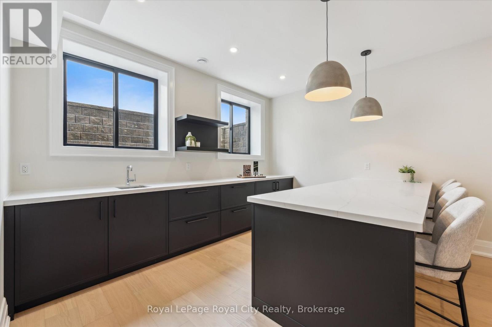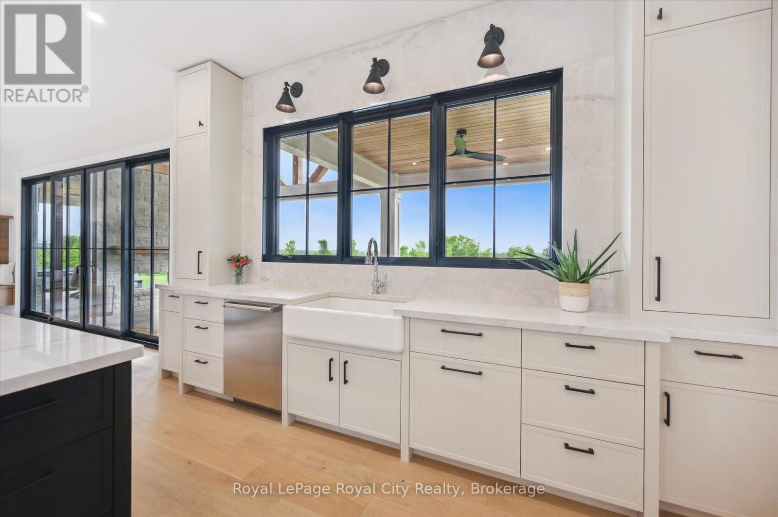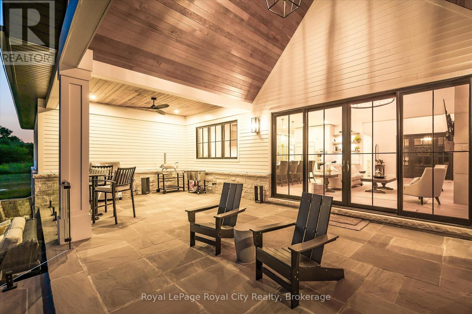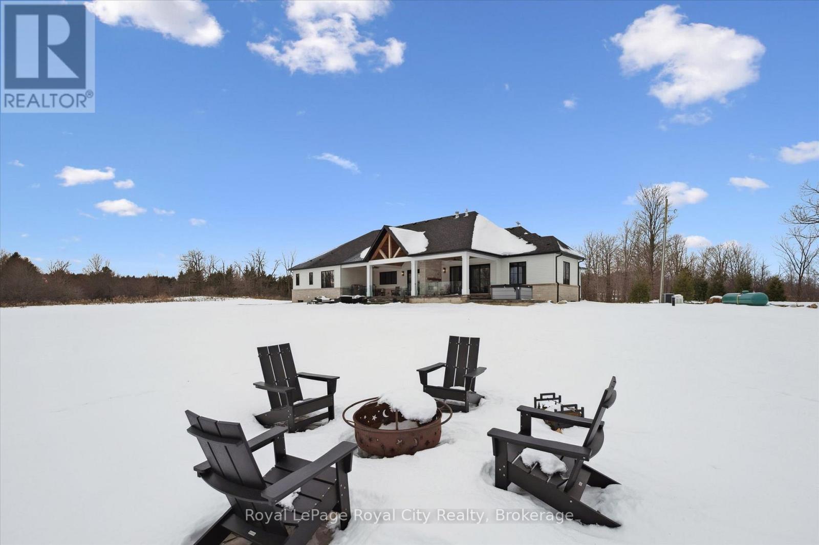 Custom-Built Luxury Bungalow on 2.4 Private Acres with Escarpment Views. Welcome to this one-of-a-kind custom-built bungalow offering 3,400 sq. ft. of refined main floor living space, perfectly nestled on 2.4 acres of serene countryside. With panoramic views of the escarpment and set well back from the road, this residence offers exceptional privacy while being just 20 minutes from the 401. Designed with luxury and functionality in mind, the home boasts soaring ceilings and oversized windows, creating an expansive, airy ambiance throughout allowing the natural landscape in and flooding the home with light. The main level features a seamless open-concept layout anchored by a great room and primary bedroom with oversized sliding doors opening to an extended outdoor living space with a two sided fire place, hot tub, and an abundance of entertaining space. The heart of the home is a chefs dream kitchen outfitted with top-tier Wolf, SubZero, and Cove appliances, complemented by a stylish servery just off the formal dining room. Retreat to the spacious primary suite, a true sanctuary offering an oversized spa-inspired ensuite complete with heated floors, a large walk-in shower, water closet, luxurious soaker tub, dual sinks with an extended vanity, and a generously sized walk-in closet. Two additional bedrooms on the main floor each enjoy their own private ensuites. Downstairs, the wow factor continues. The 10-foot ceilings and expansive windows make the finished basement feel anything but below grade. Designed for versatility, the lower level includes a full gym, sauna, and a private entry from the oversized 3-car garage making it perfect for an in-law suite. This separate living space features a bedroom, full bath, and kitchenette with a fridge, sink, and microwave. Every detail has been thoughtfully considered. Truly, this is a rare opportunity to own a stunning estate home where luxury, privacy, and convenience converge. (id:51300)