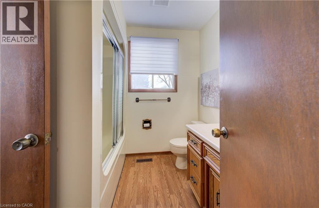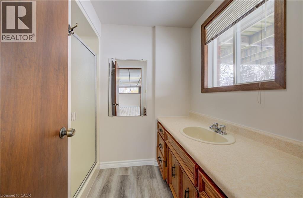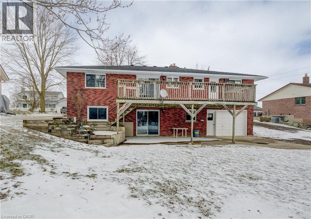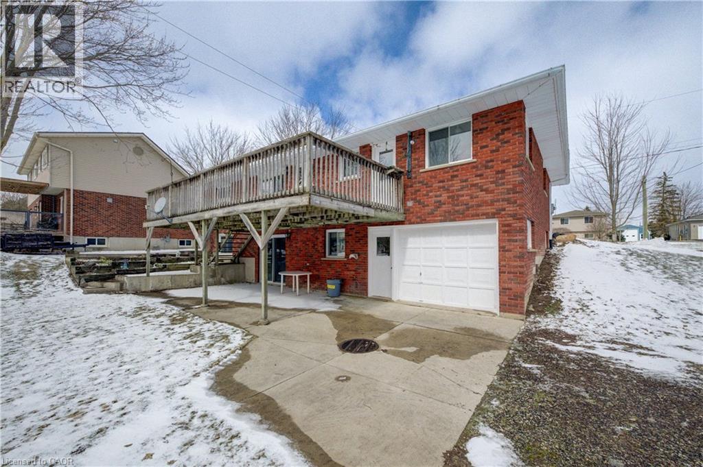 Solid brick bungalow with walkout basement in the quiet community of Linwood. Set on a nearly a 1/2 acre lot offering space, flexibility and an excellent in-law potential. This home features 2+1 bedrooms and 3 bathrooms including a convenient cheater ensuite. There is a large living room and a spacious open concept kitchen/dining area with patio doors leading to an upper deck overlooking the expansive private backyard. The finished walkout basement includes luxury vinyl plank flooring, a bedroom, 3-piece bath, and rough-in for a kitchenette. This makes for it ideal for multigenerational families with access to a covered concrete patio, perfect for relaxing or entertaining. Additional highlights include main floor laundry, only carpet on the stairs leading to the basement, concrete driveway, roof approximately 5 years old, an attached garage plus a 2nd garage under the home with rear access from its own driveway, providing plenty of parking. A great opportunity to enjoy small-town living with an abundance of room inside and out. (id:51300)